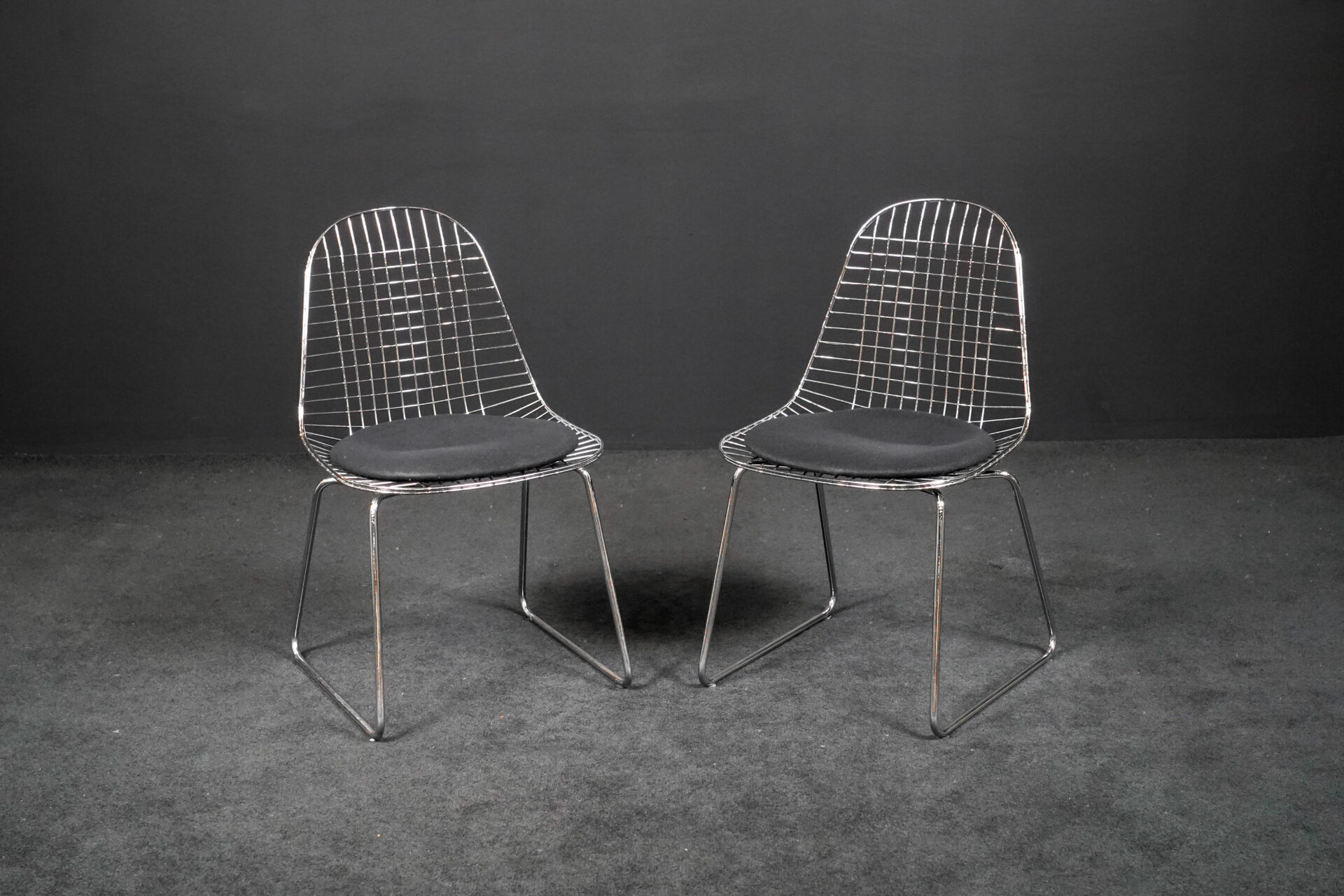 2er Set Besucherstühle aus Stahldraht mit Sitzpolster