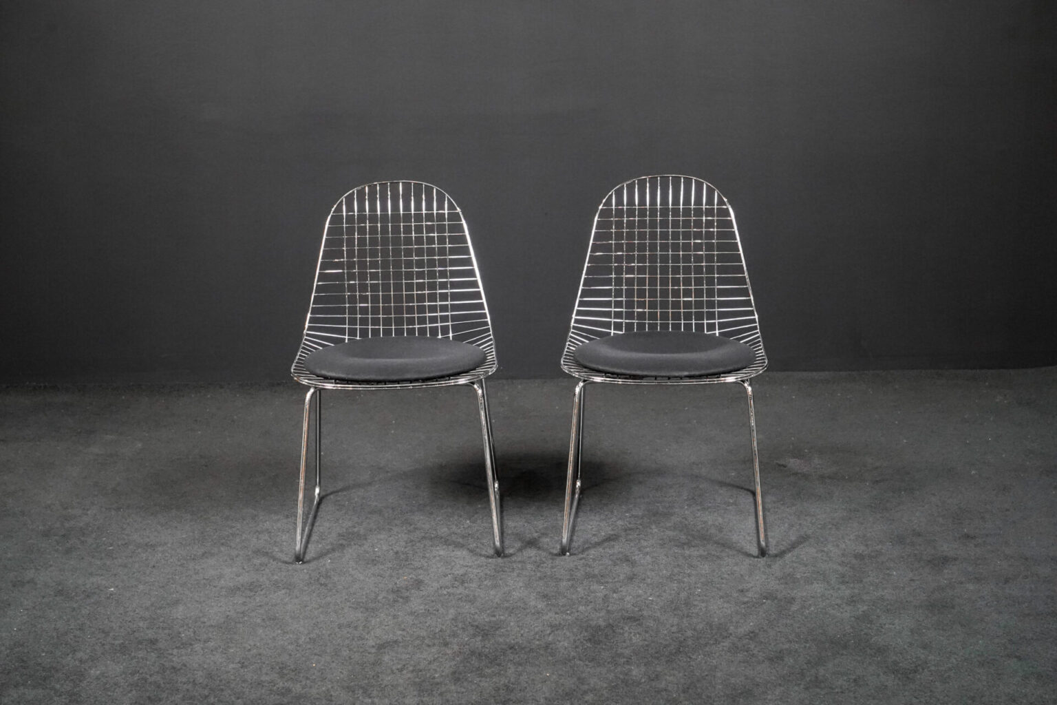 2er Set Besucherstühle aus Stahldraht mit Sitzpolster