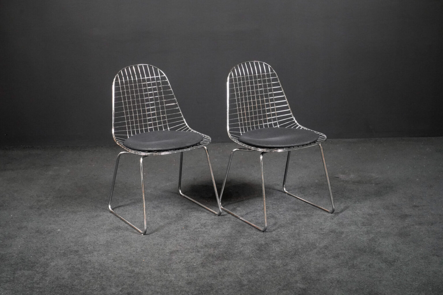 2er Set Besucherstühle aus Stahldraht mit Sitzpolster