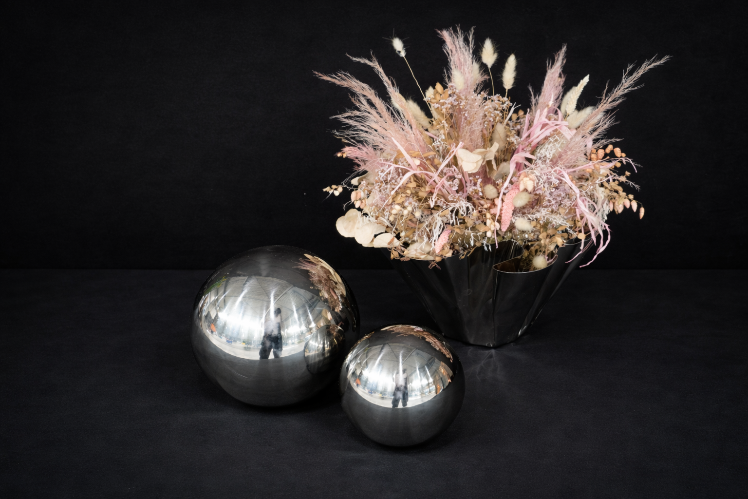 Deko-Set mit Kunstblume & silbernen Dekokugeln