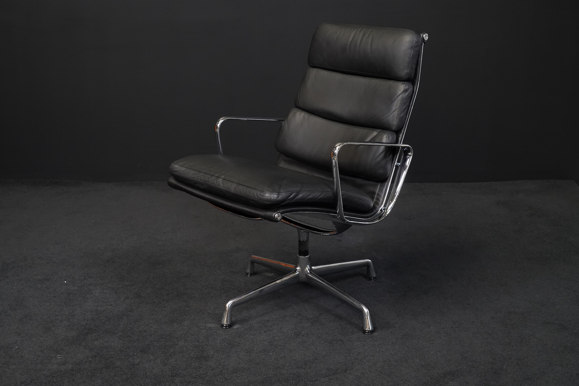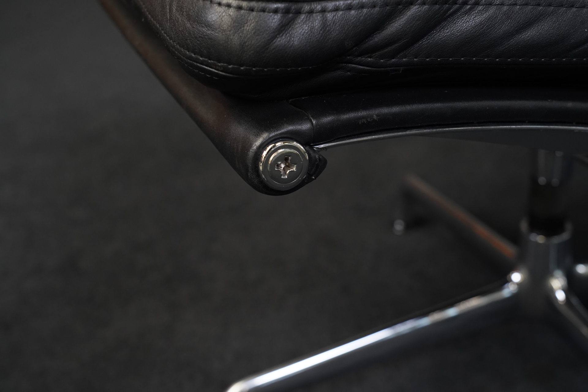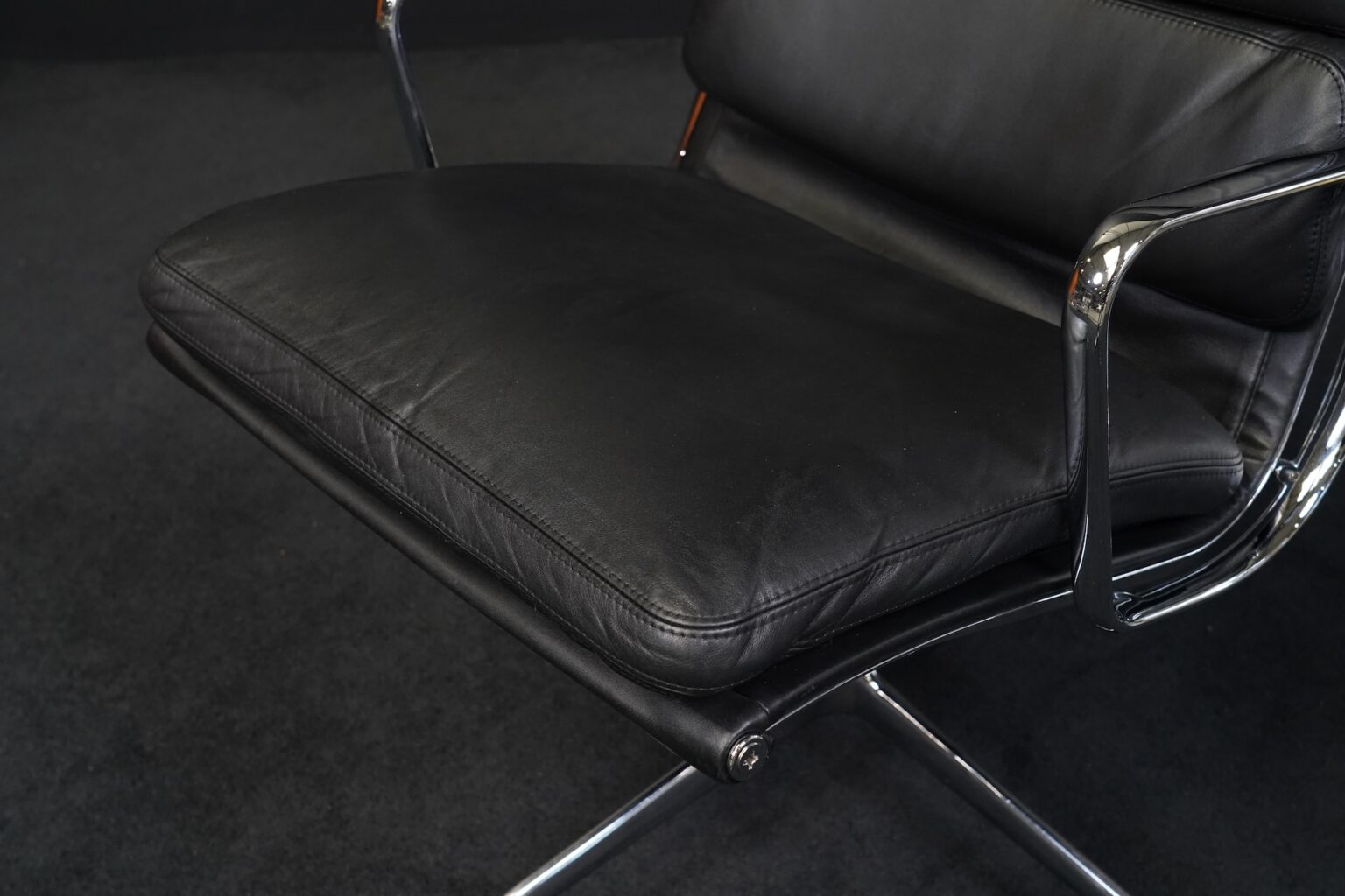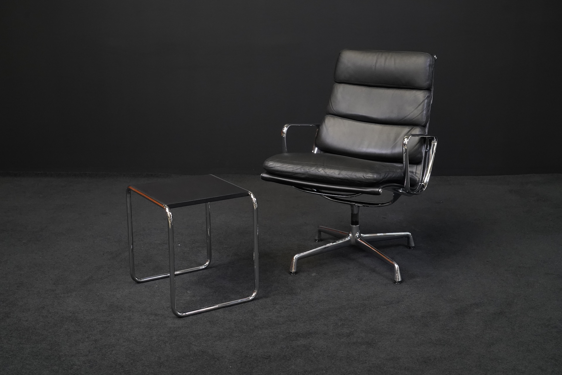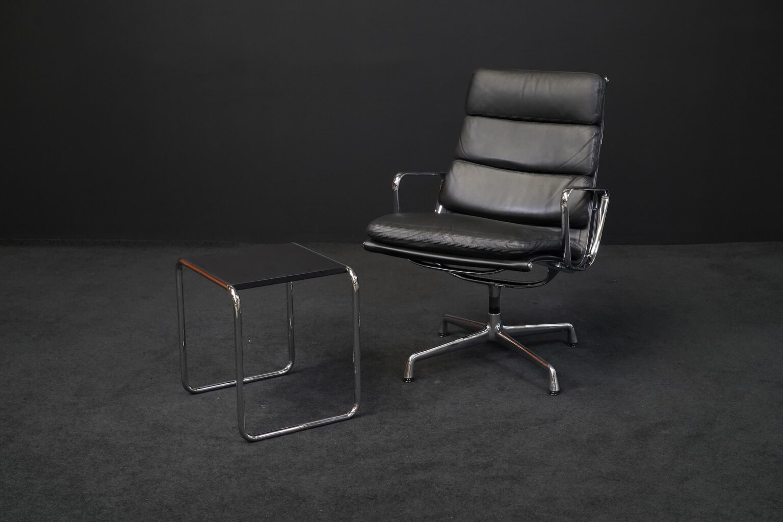 2er Set aus Vitra Sessel EA 216 Leder Schwarz & und Thonet Beistelltisch Holz Schwarz