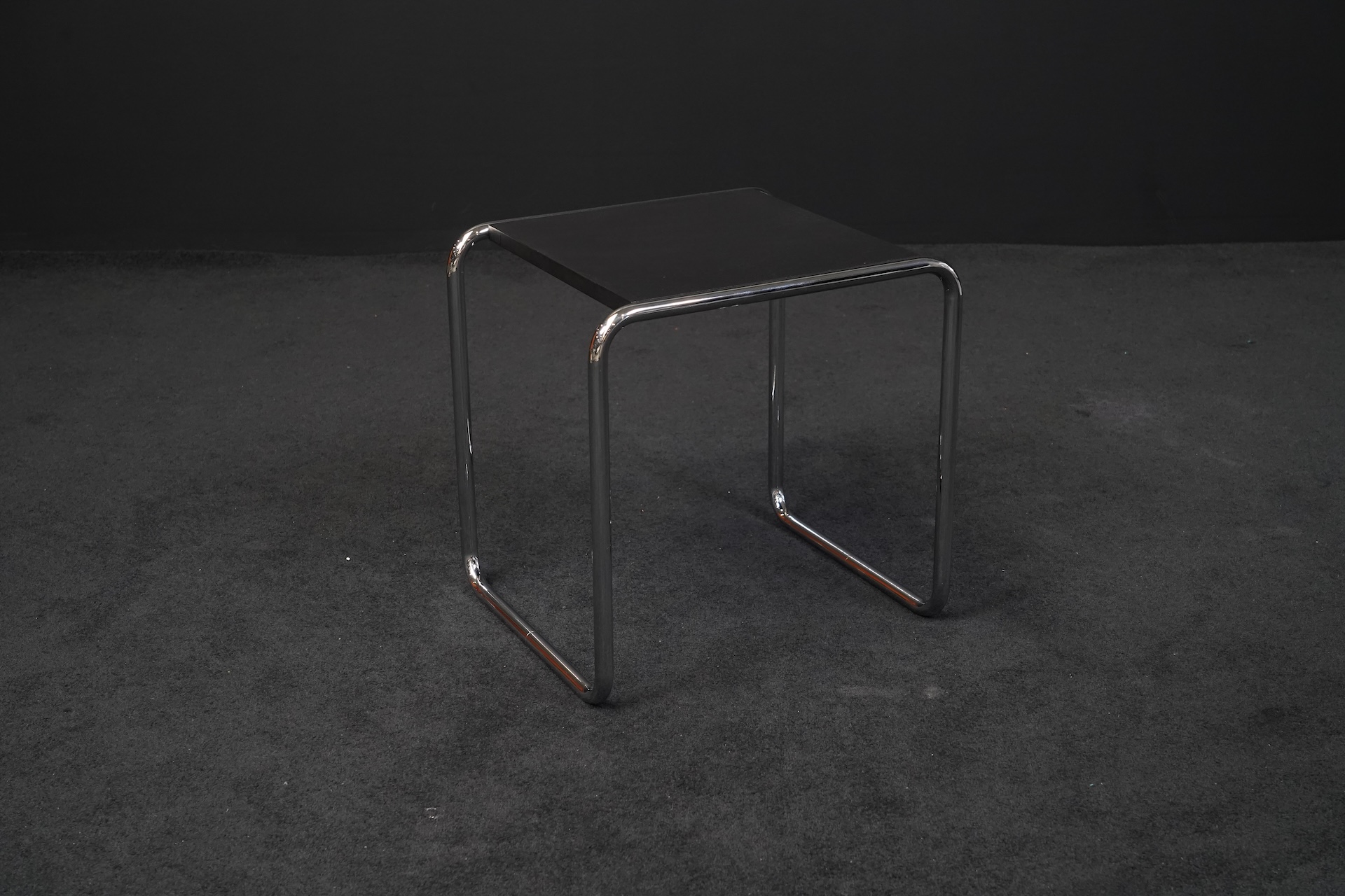 Beistelltisch: Holz | Schwarz | Gestell verchromt | H: 45cm | B: 45cm | T: 38cm