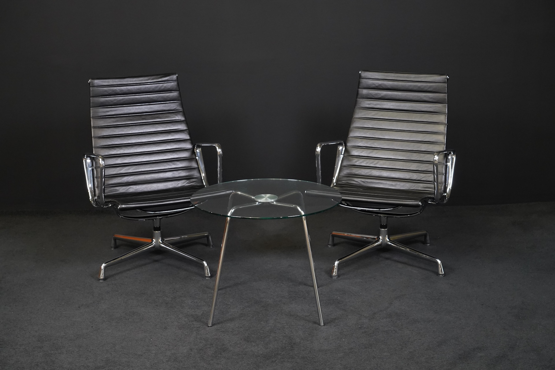 3er Set aus 2x Vitra Sessel EA 119 Leder Schwarz & und Walter Knoll Beistelltisch Klarglas