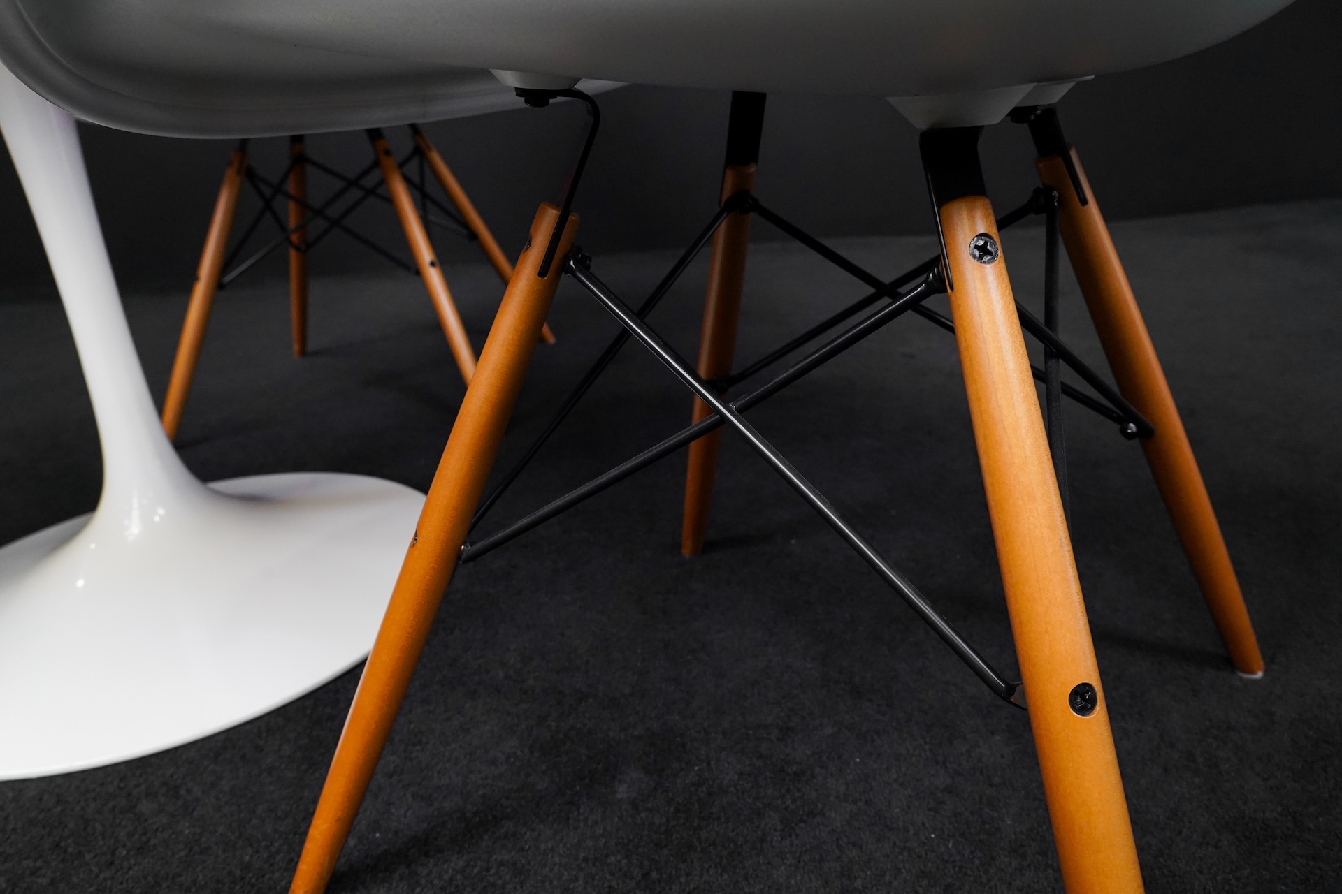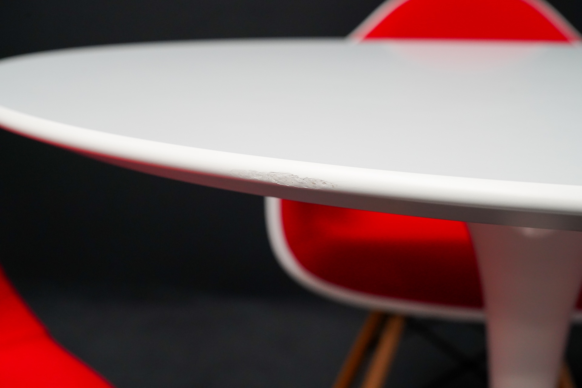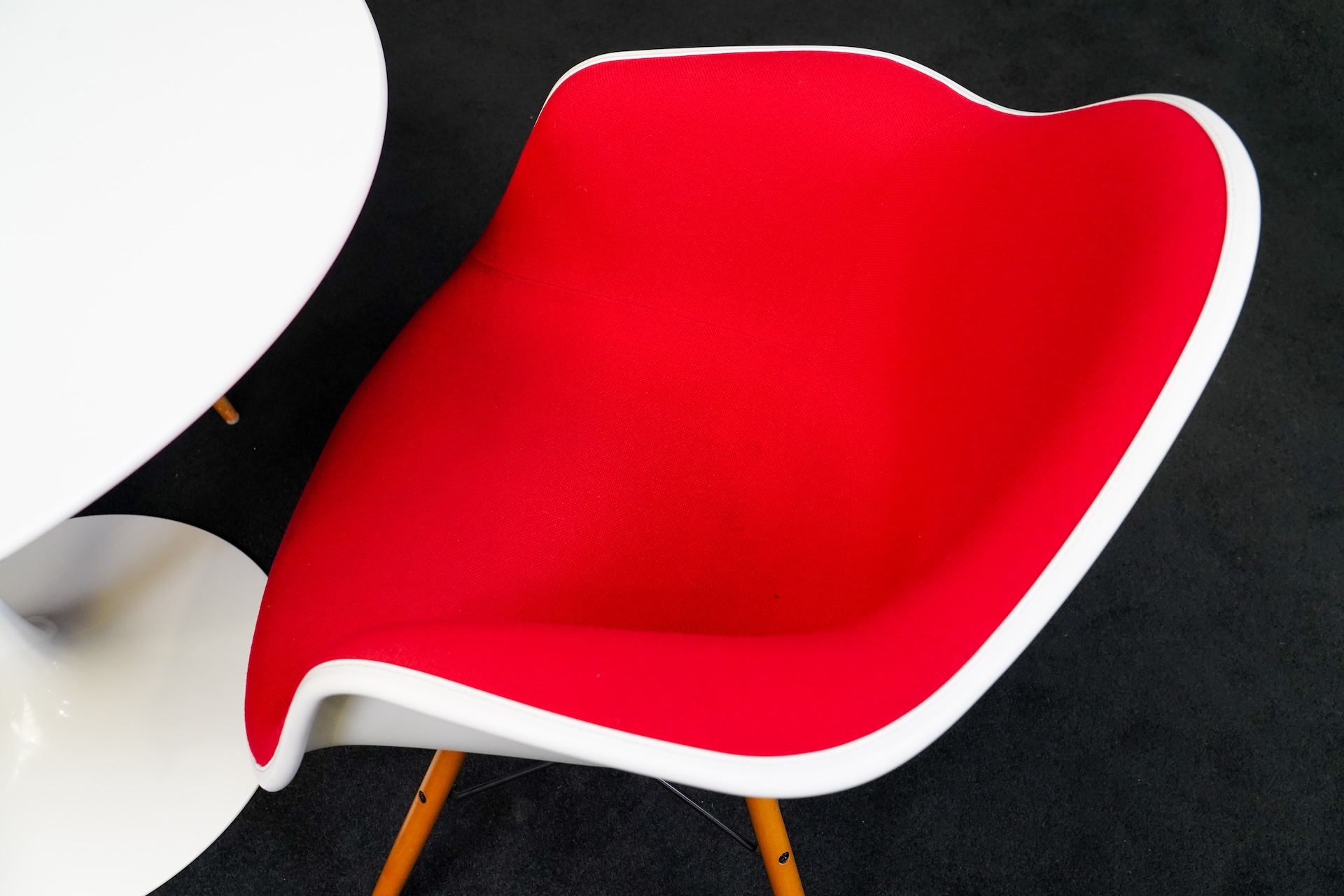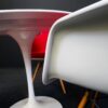 Knoll International Tisch Tulip Kunstharz Weiss + 3x Vitra Eames Plastic Armchair DAW Kunststoff Weiß