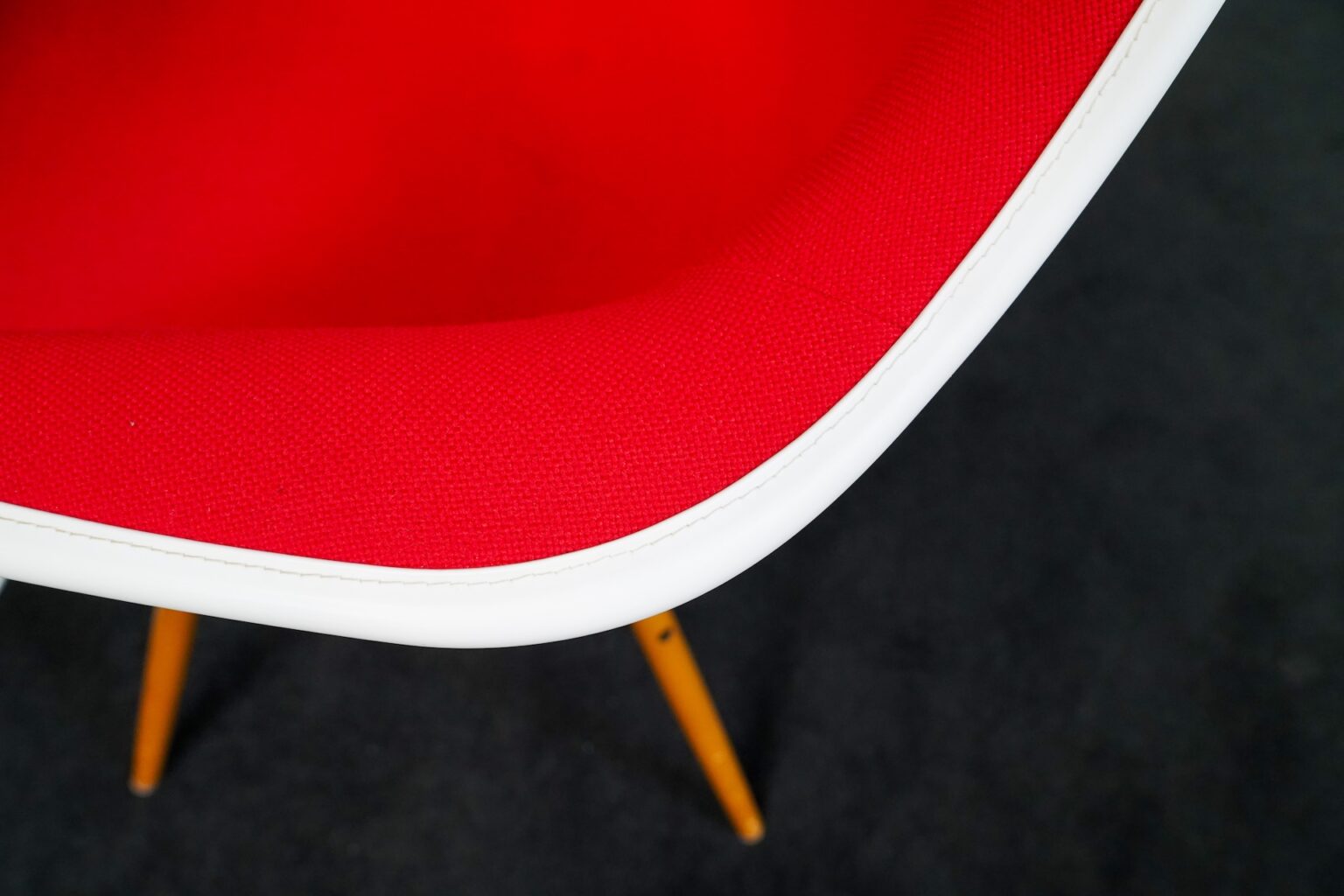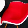 Stühle: Kunstoff | Weiss | Bezug Hosak Rot | Gestell Holz | H: 81cm | SH: 47cm | B: 61cm | T: 61cm