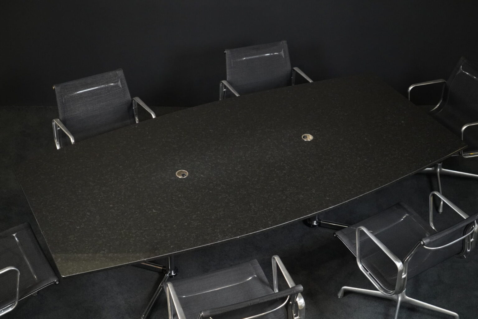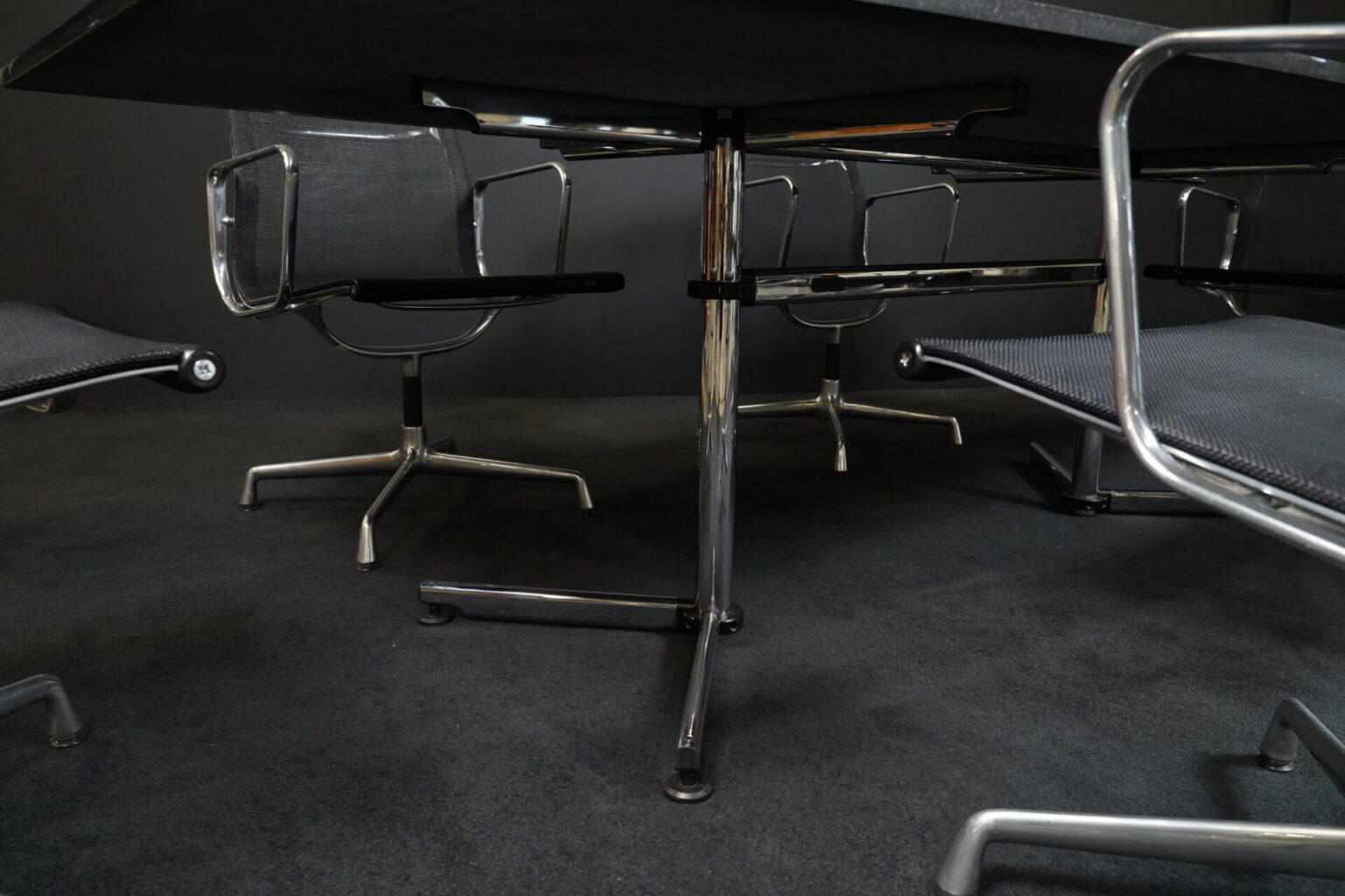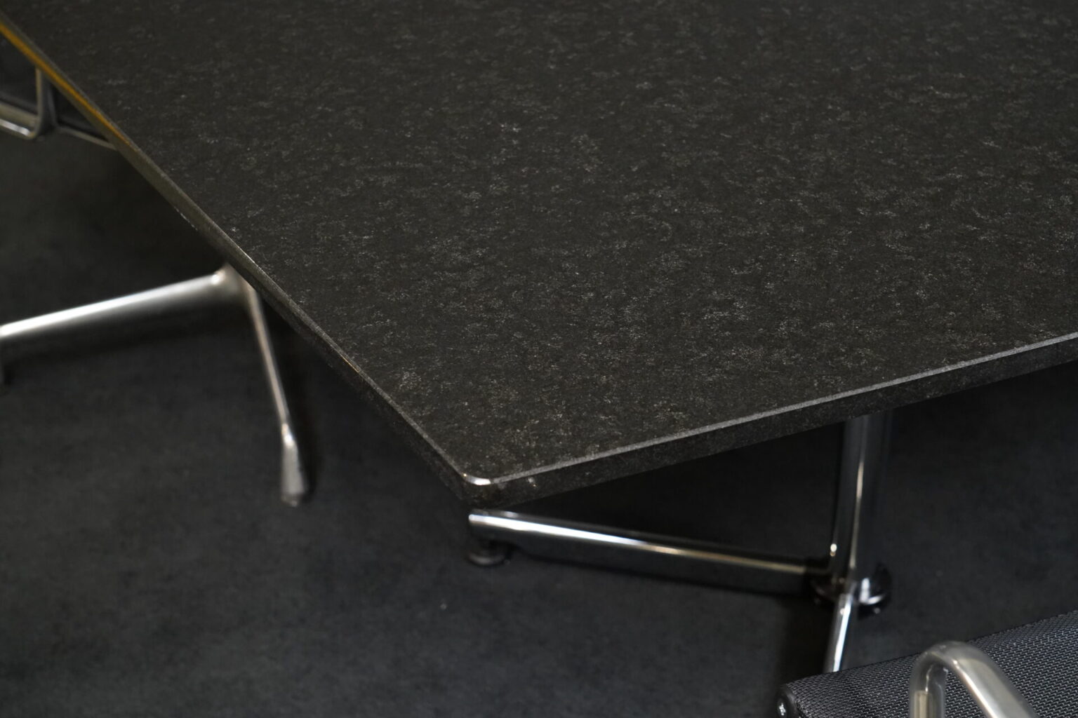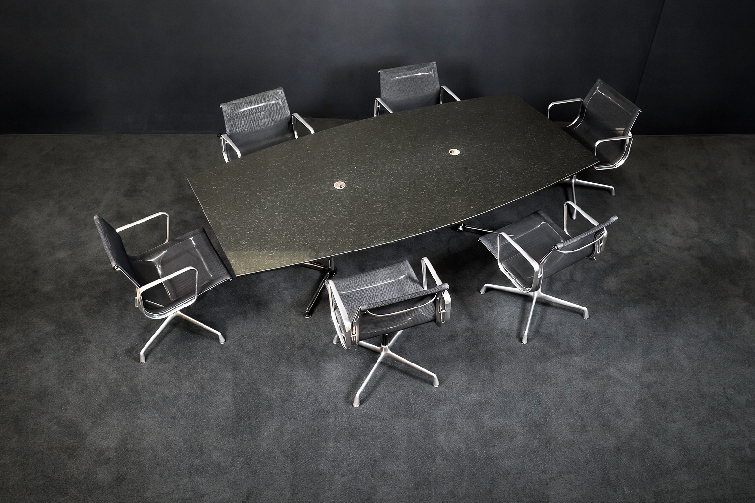 USM Kitos Granit Konferenztisch + 6x Vitra EA 108 Netz Schwarz