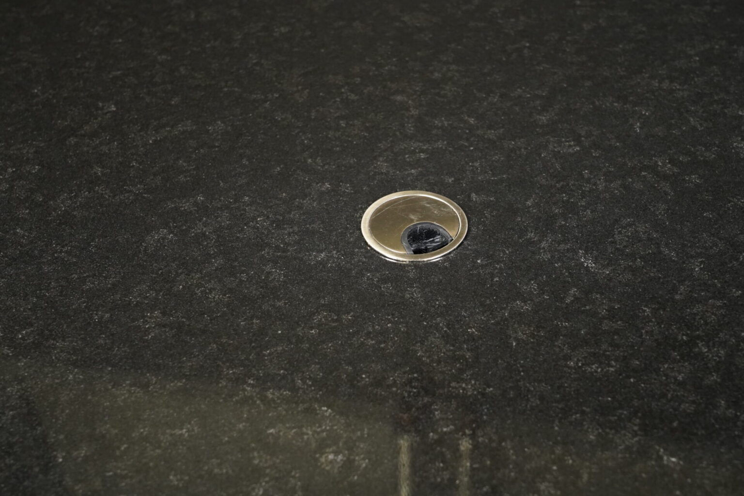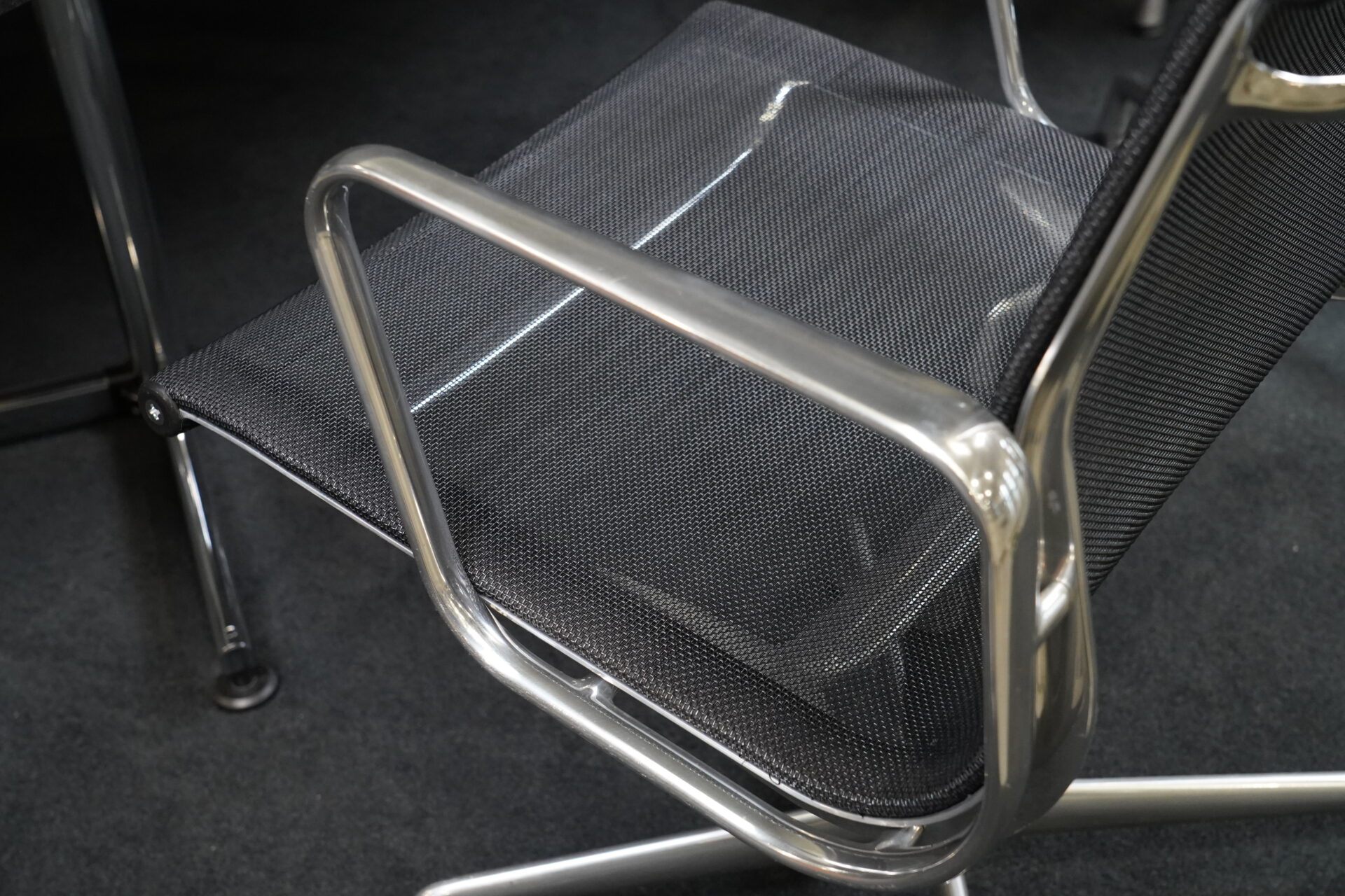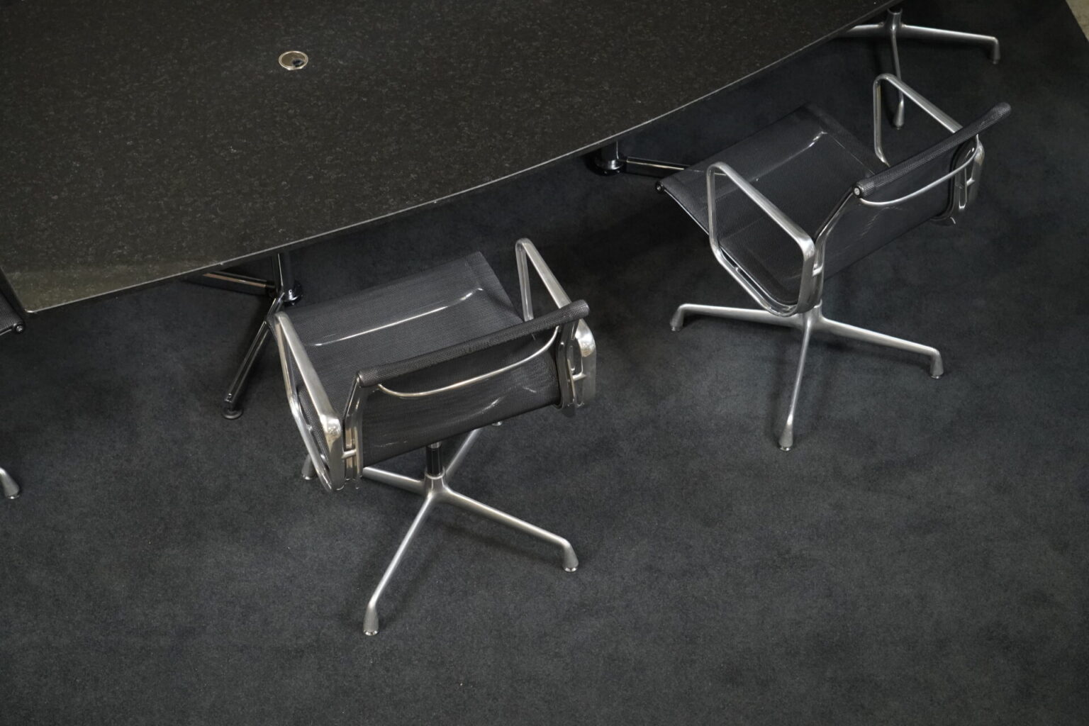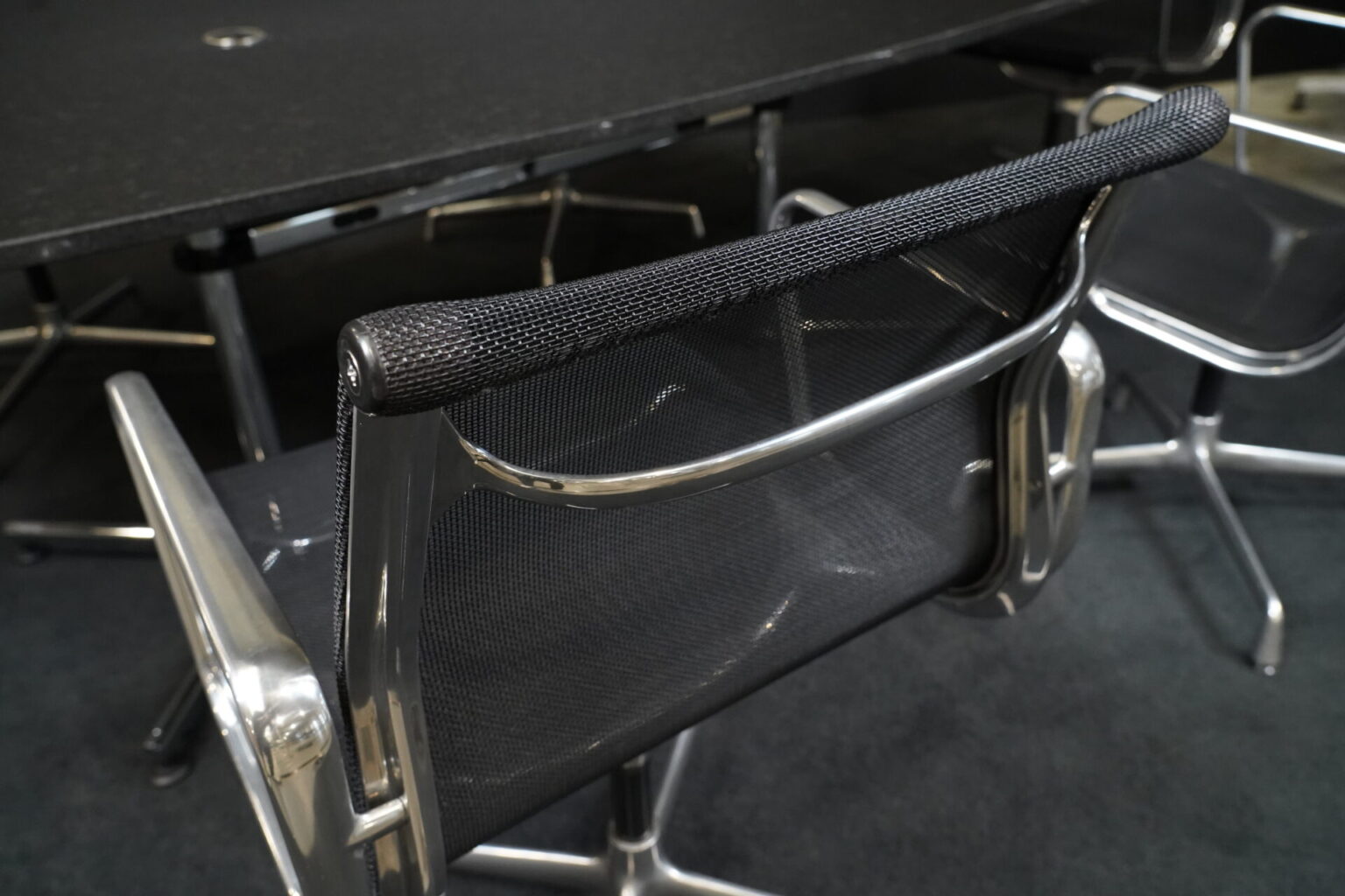 USM Kitos Granit Konferenztisch + 6x Vitra EA 108 Netz Schwarz