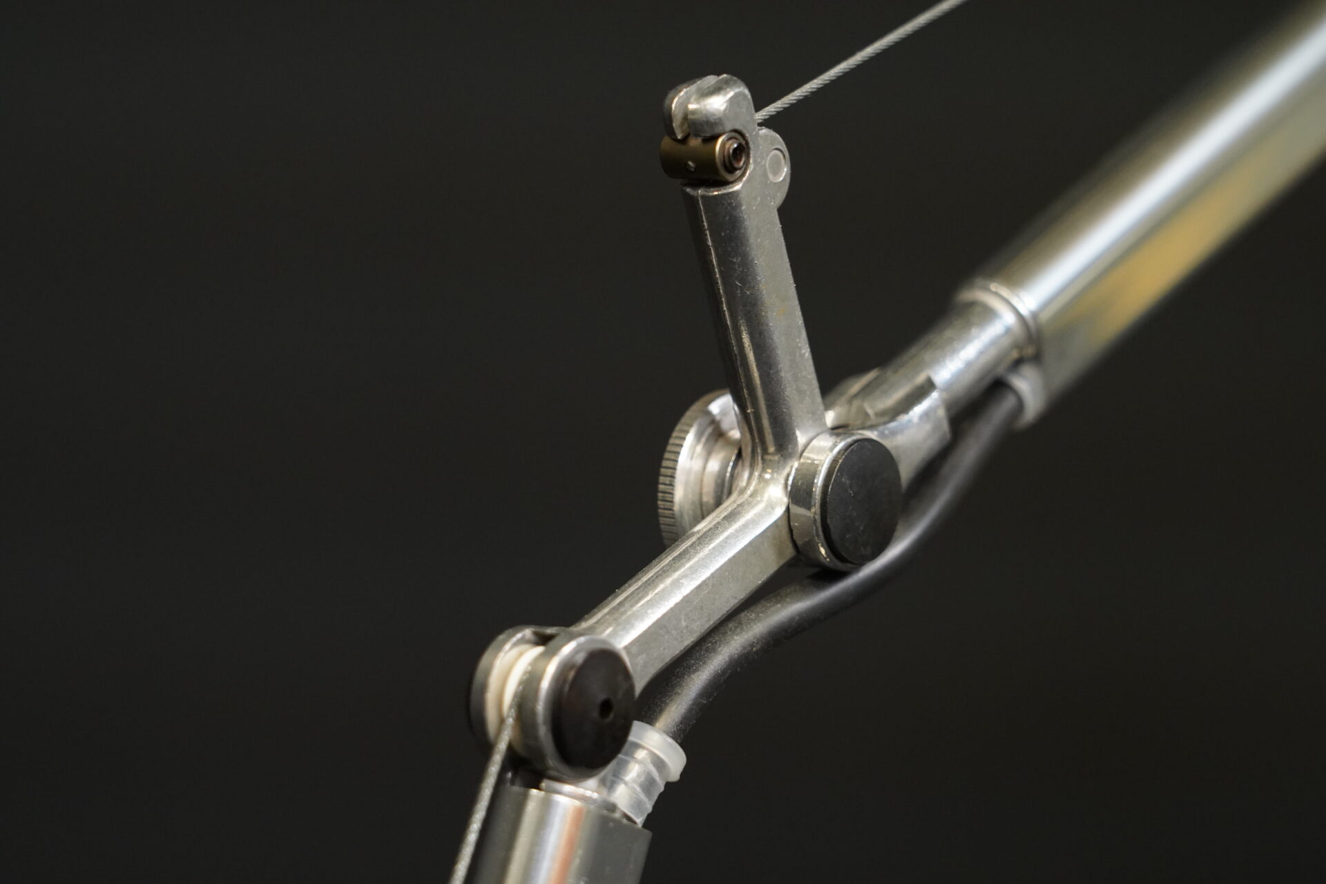 Gestell aus Aluminium mit zwei Gelenken | Lampenkopf justierbar| 1 Leuchtmittel | Druckknopfschalter mit 2 Stufen | EU-Stecker | H.64-129cm | Ø Fuß: 23cm | Ø Schirm: 15cm