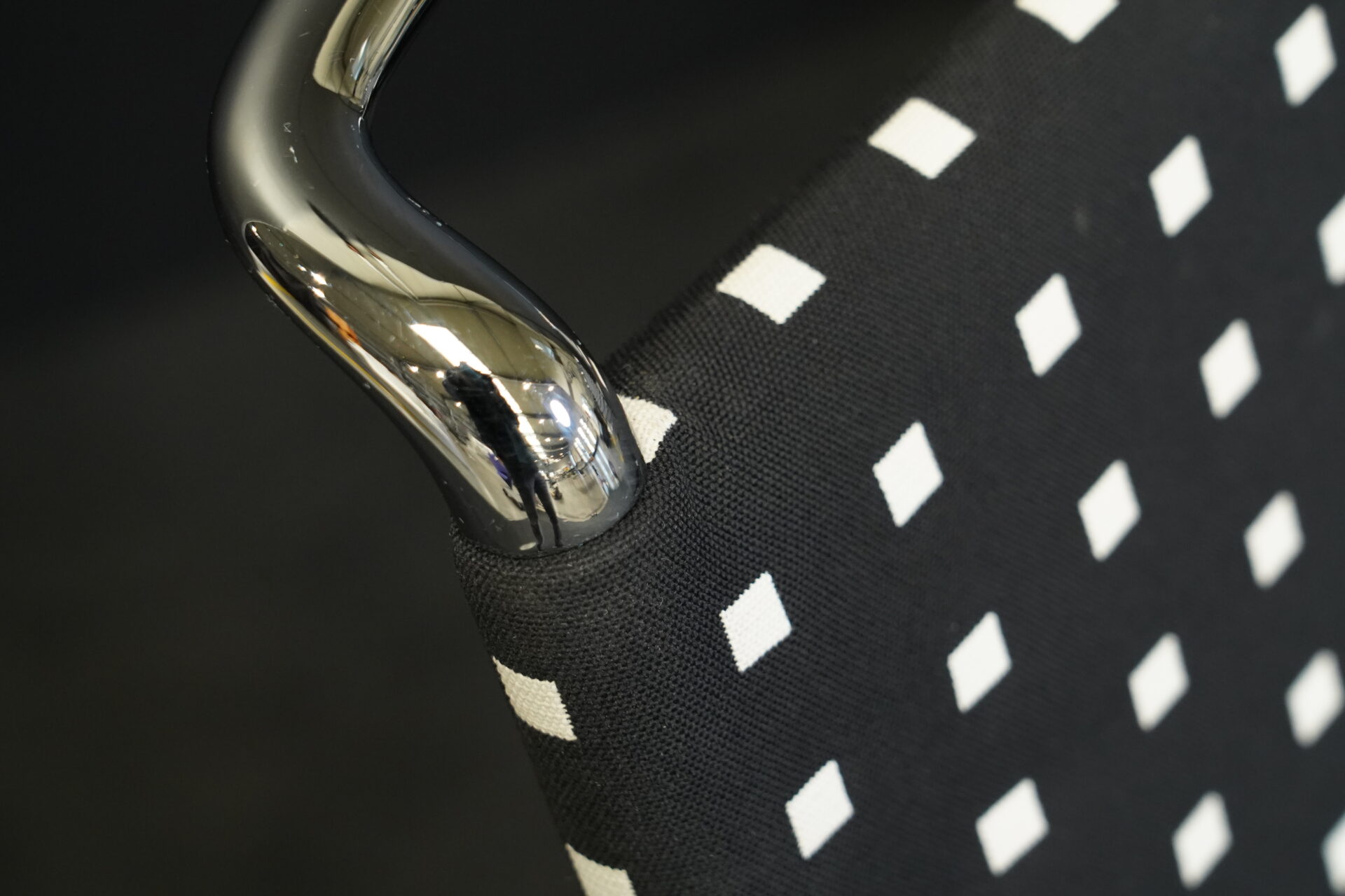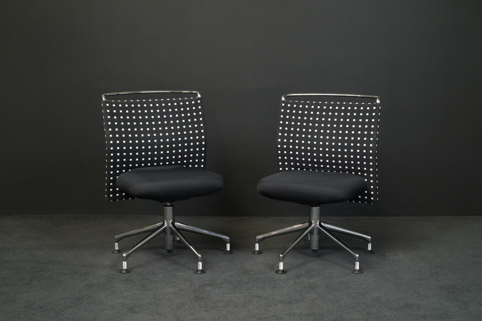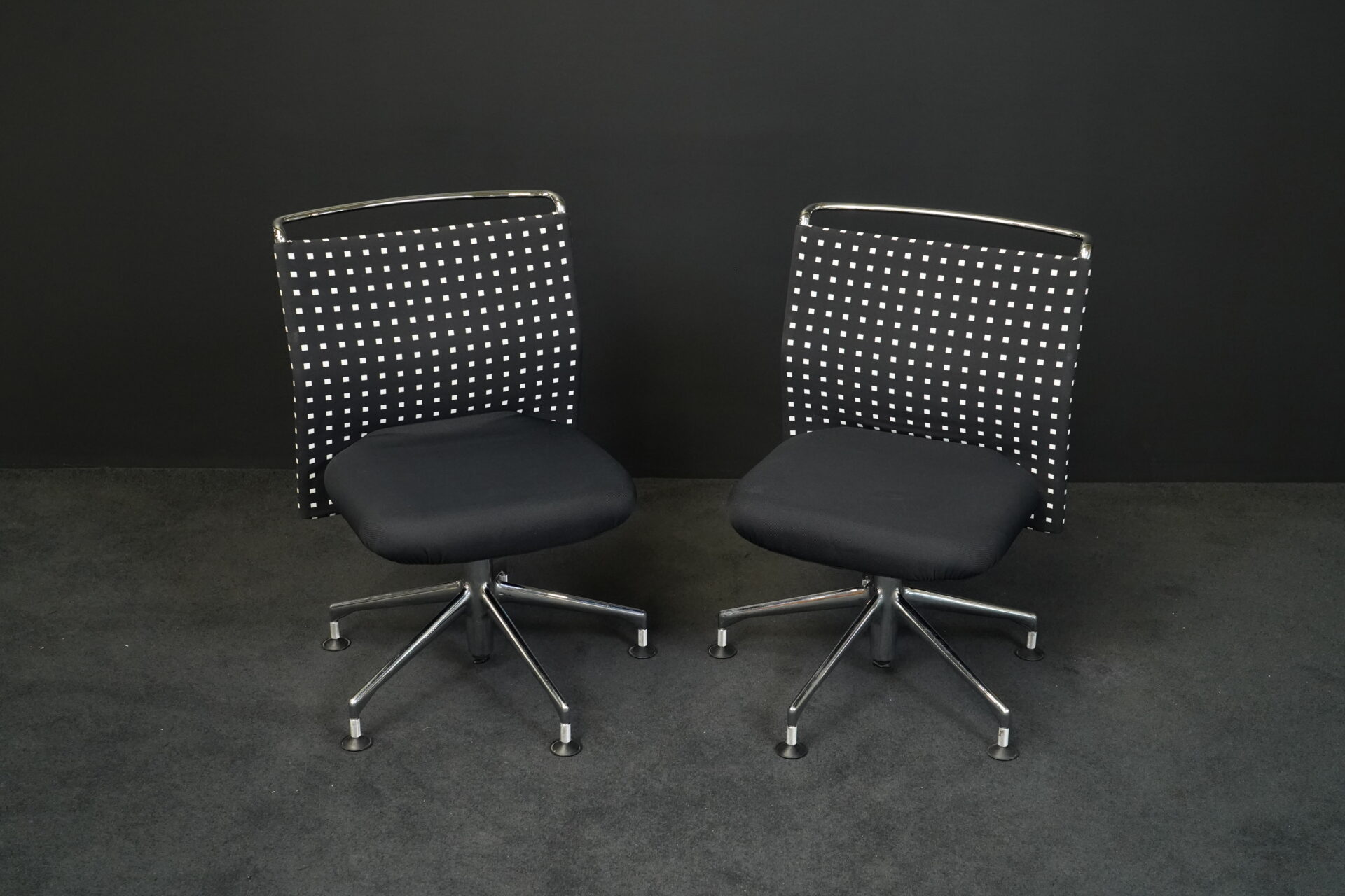 Stoff | Schwarz / Weiß | Gestell verchromt | drehbar | H: 88/90cm | SH: 46/48cm | B: 58cm | T: 52cm