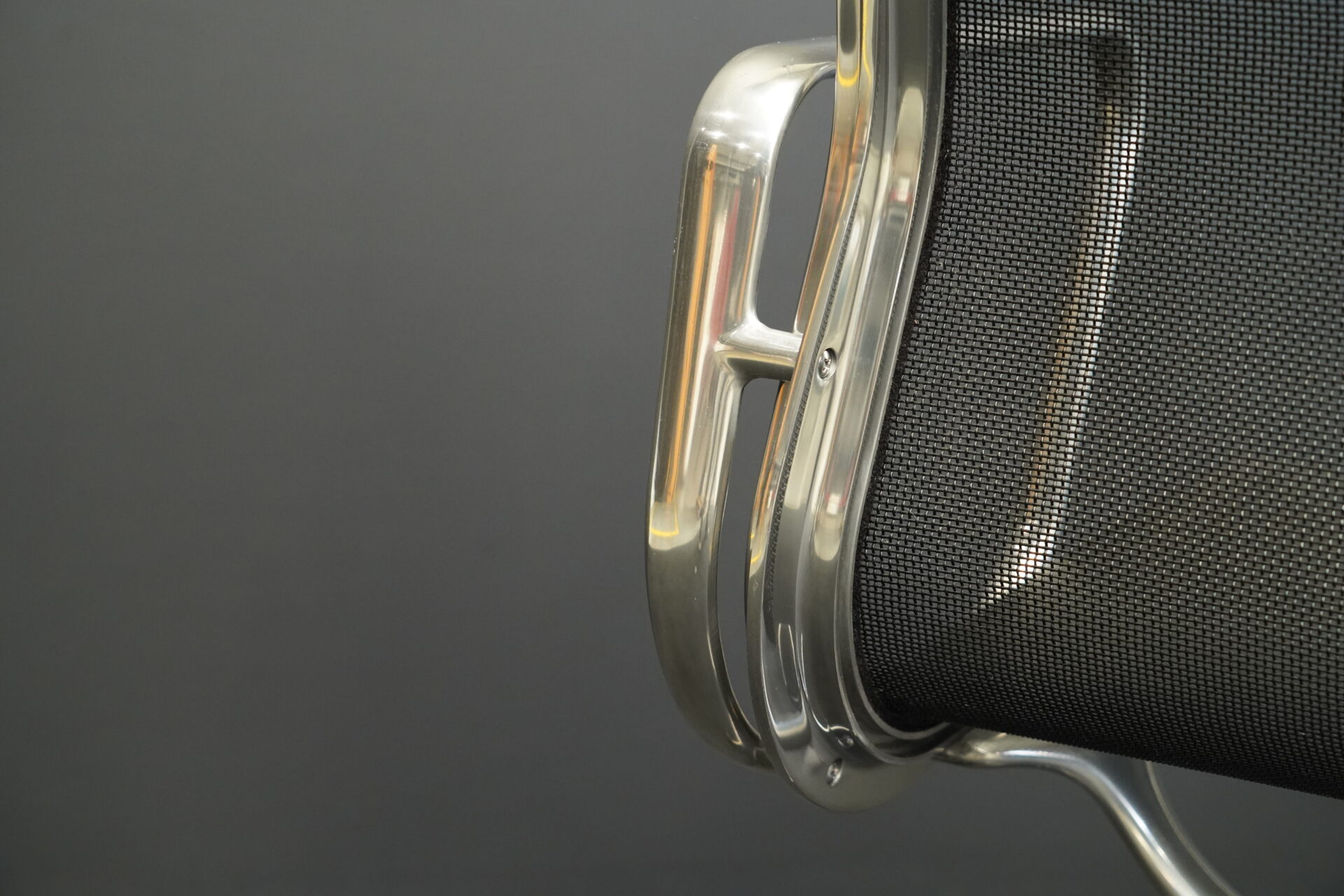 Netz | Schwarz | Gestell Alu poliert | drehbar | H: 83cm | SH: 47cm | B: 57cm | T: 55cm