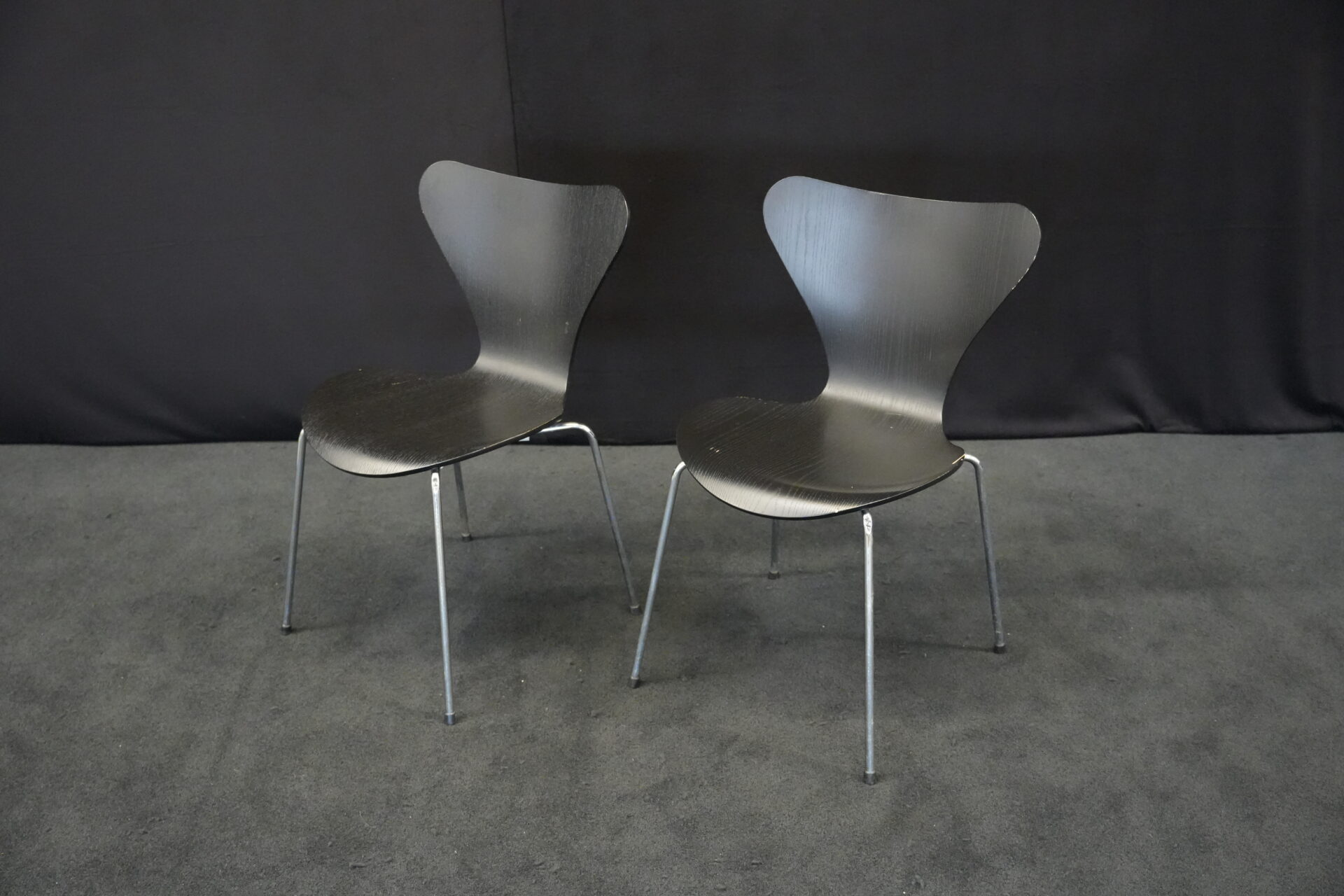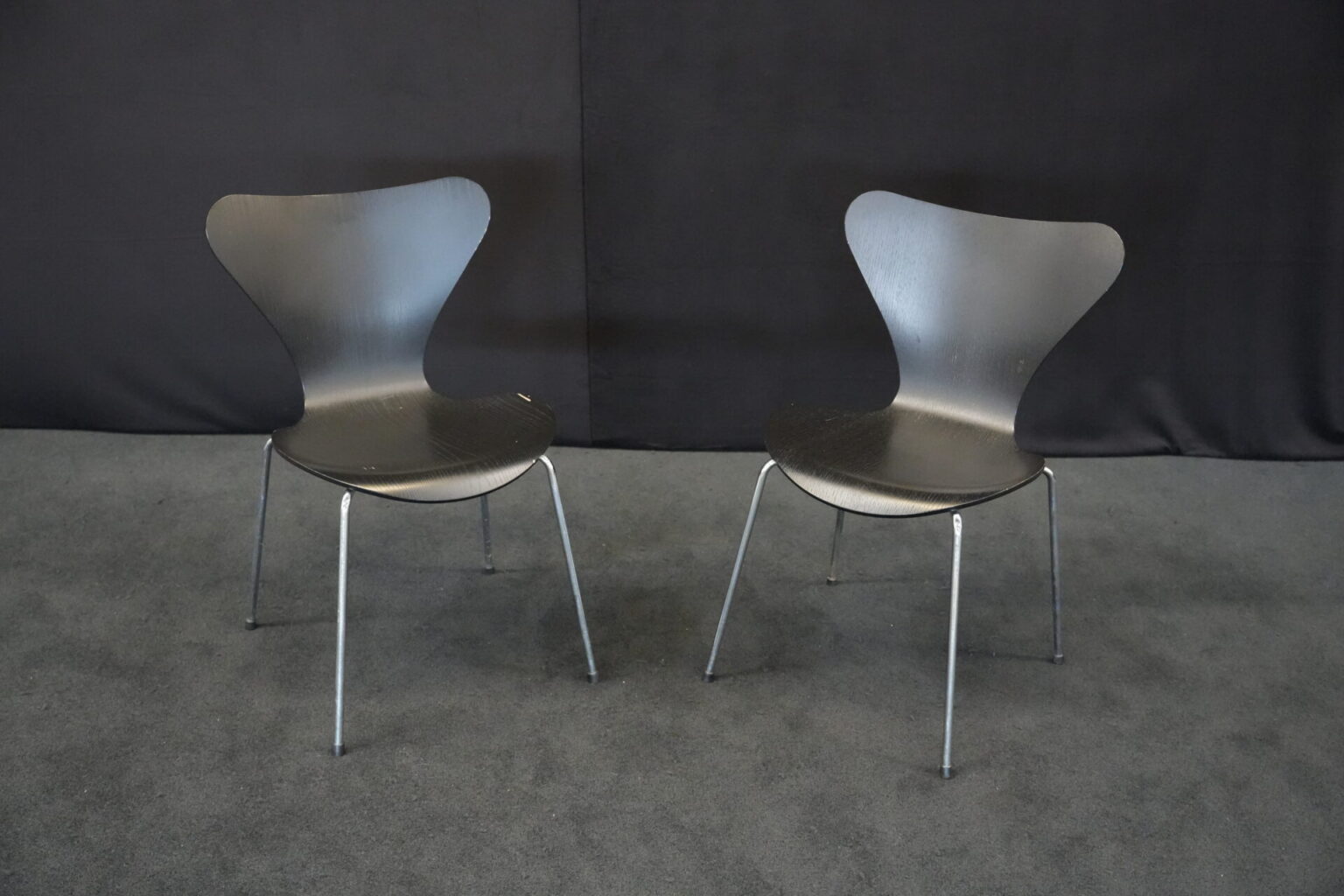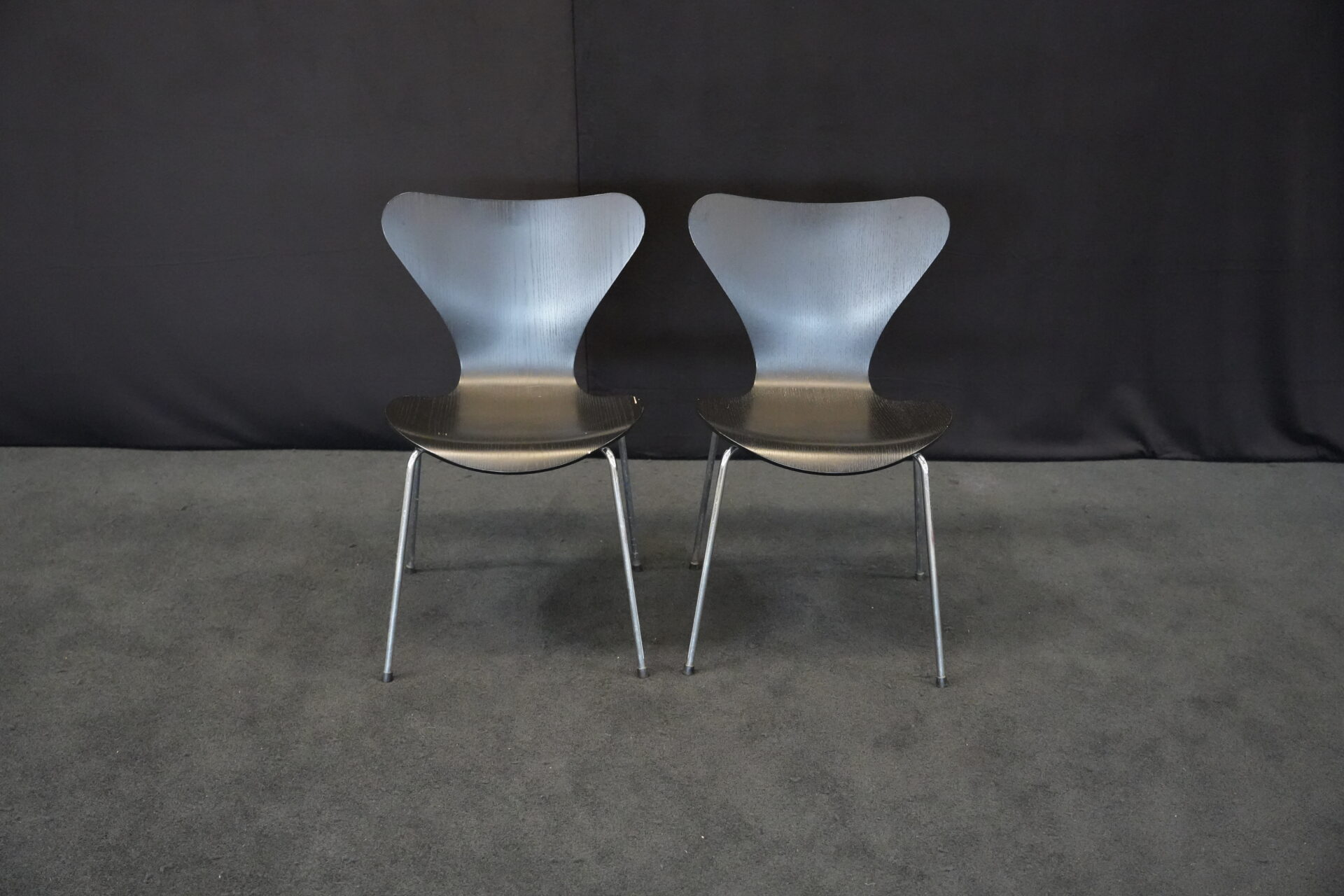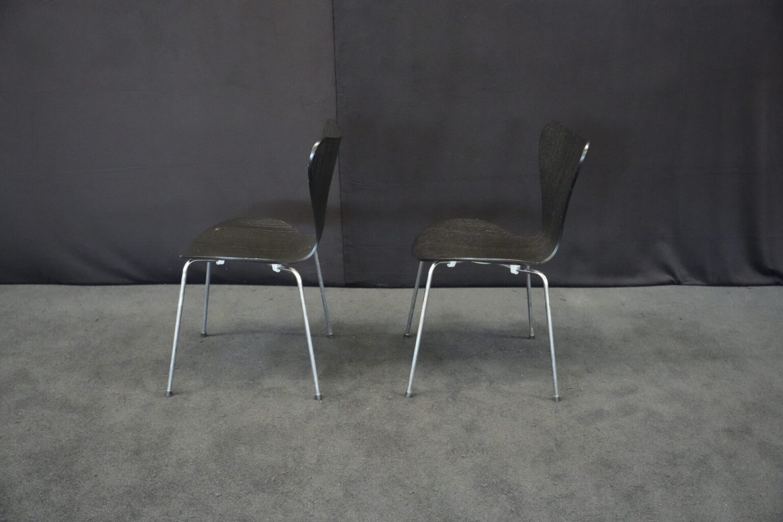 2x Fritz Hansen Serie 7 Stuhl Arne Jacobsen | Marke: Fritz Hansen | Material: Holz | Farbe: Schwarz | Abmessungen: H 80cm | SH: 46cm | T: 40cm | B: 44cm