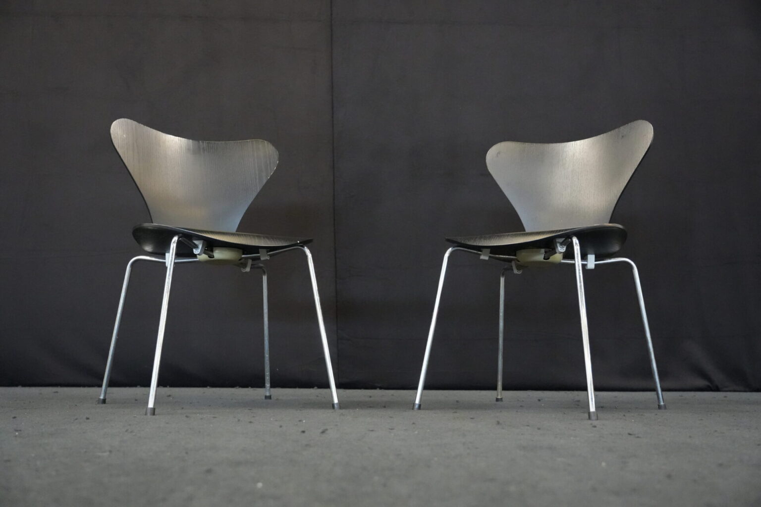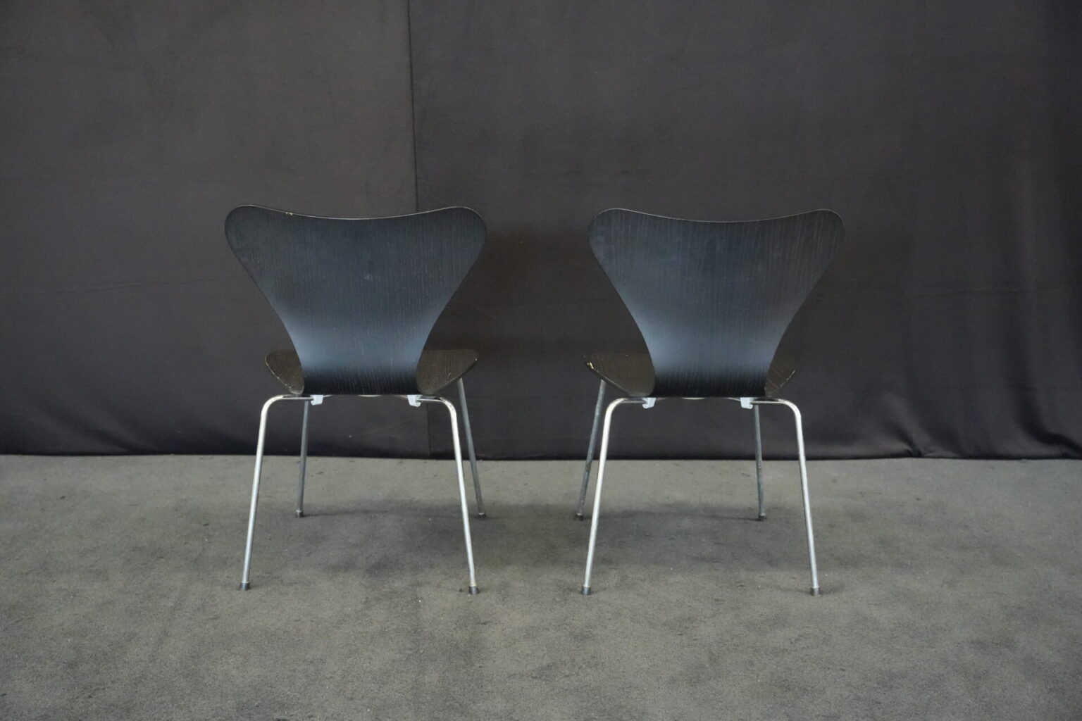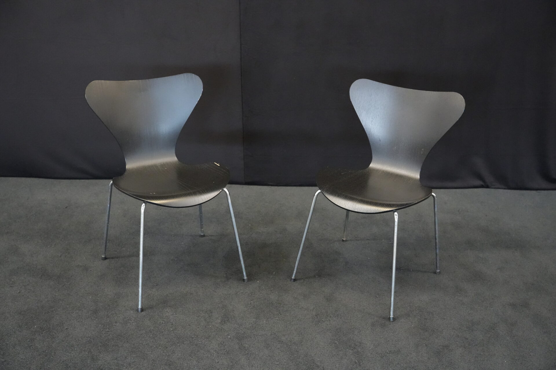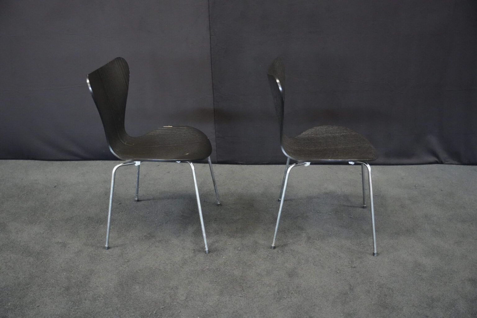 2x Fritz Hansen Serie 7 Stuhl Arne Jacobsen | Marke: Fritz Hansen | Material: Holz | Farbe: Schwarz | Abmessungen: H 80cm | SH: 46cm | T: 40cm | B: 44cm