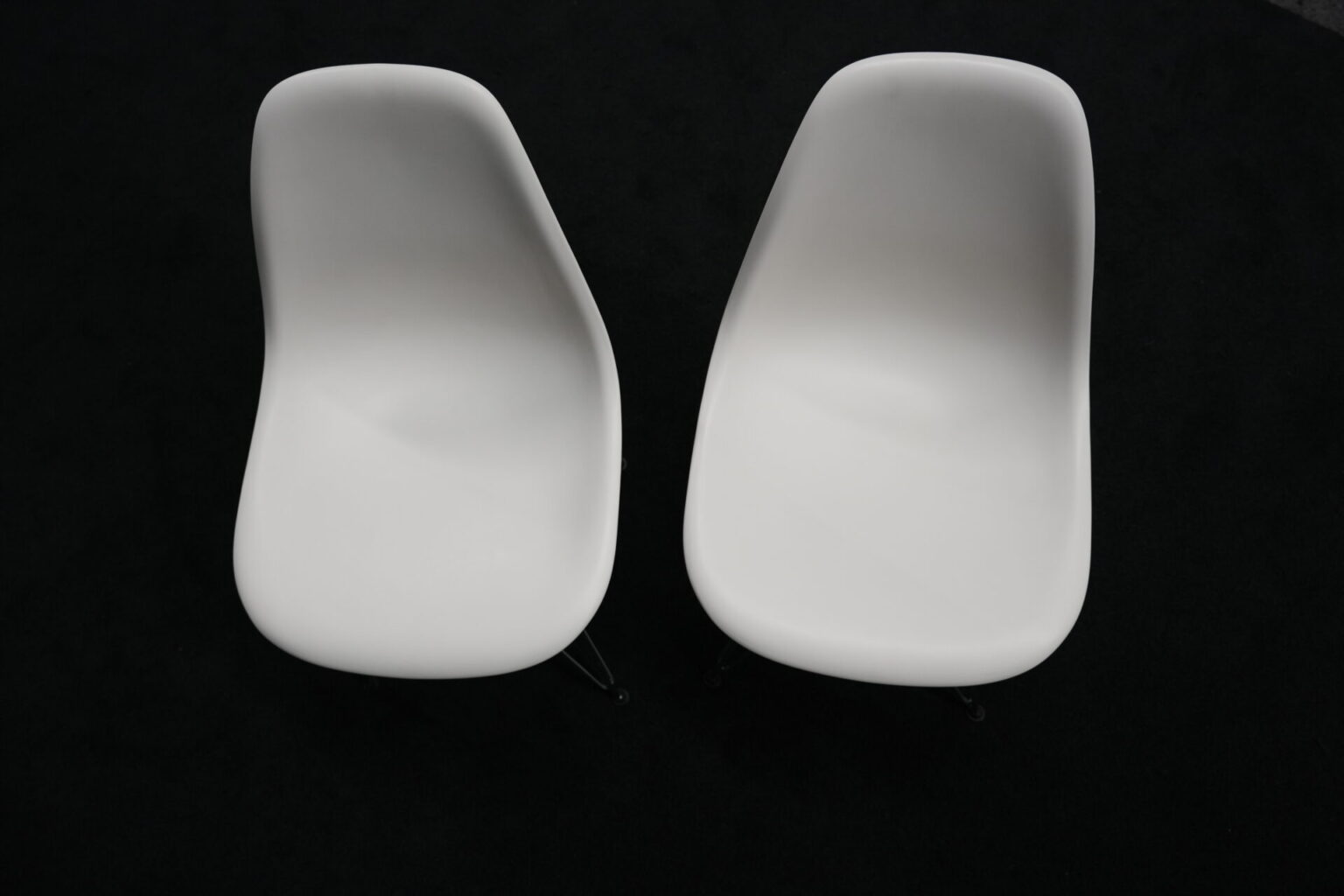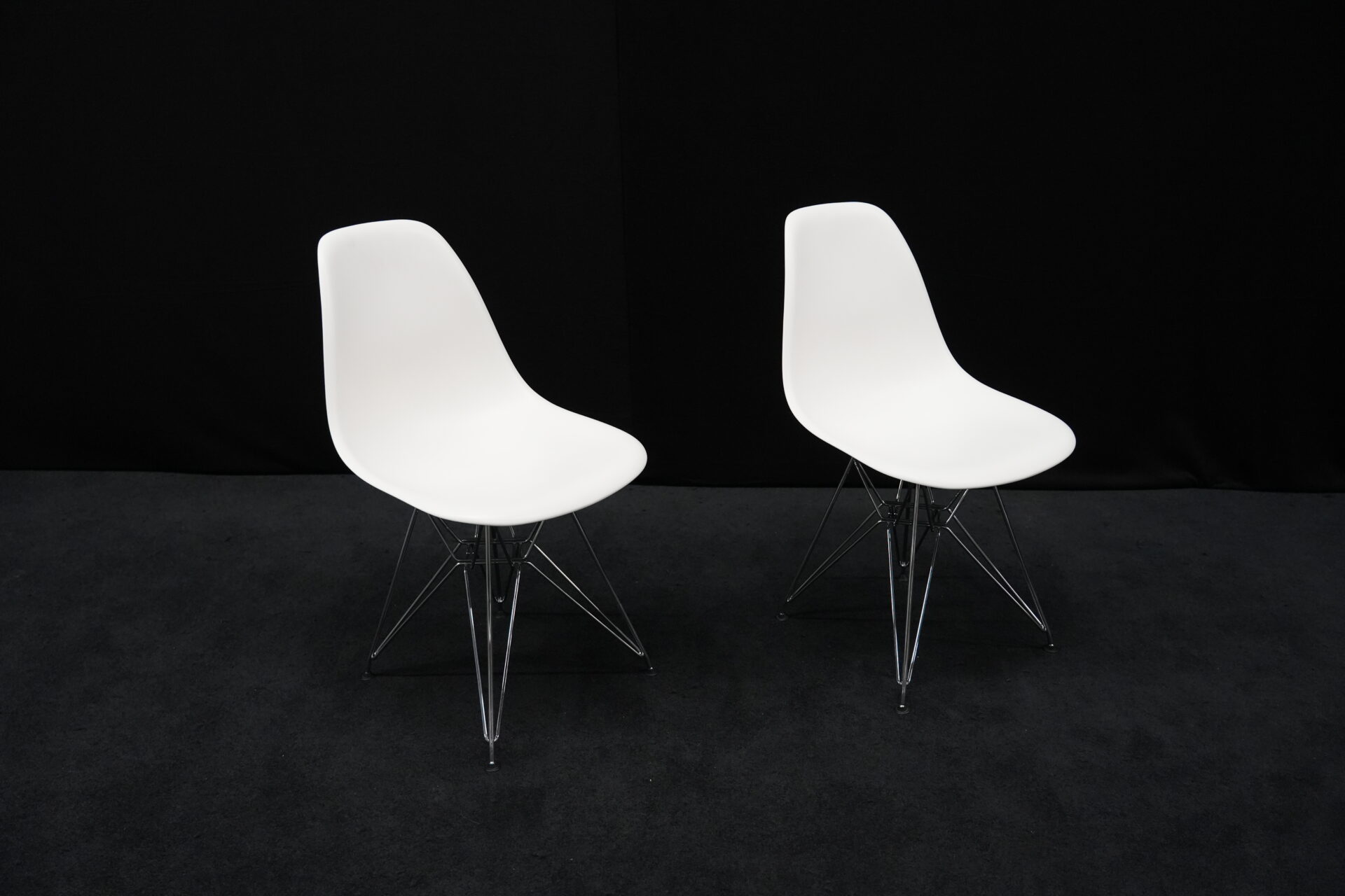 2x Vitra Plastic Side Chair RE DSR | Marke: Vitra | Farbe: Weiß | Abmessungen: H 80cm | SH: 46cm | T: 44cm | B: 46cm