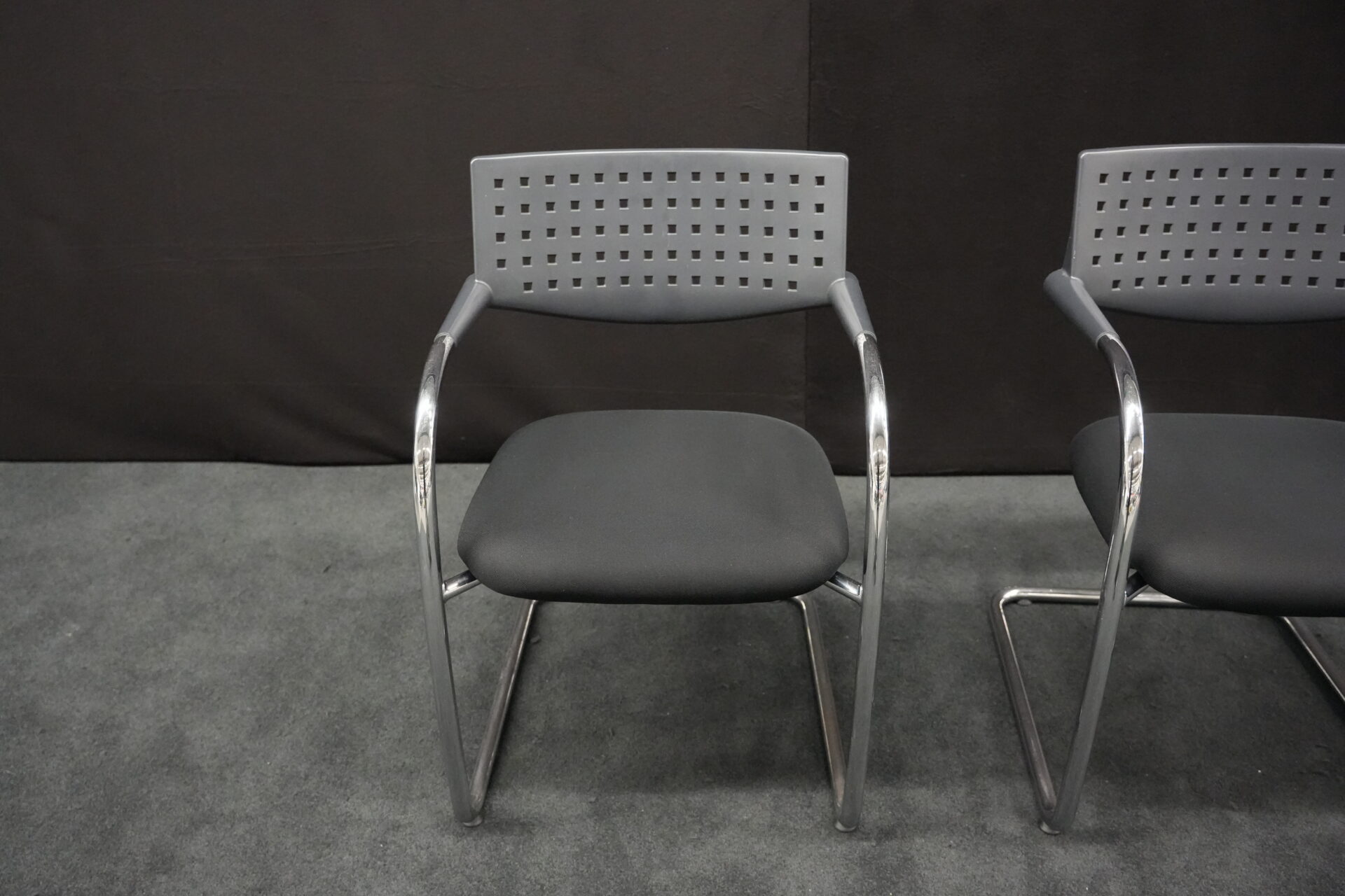 2x Vitra VisaVis Freischwinger Stoff / Schwarz | Marke: Vitra | Farbe: Schwarz | Bezug: Stoff | Abmessungen:| H: 80cm | SH:41cm | B:55cm | T:58cm