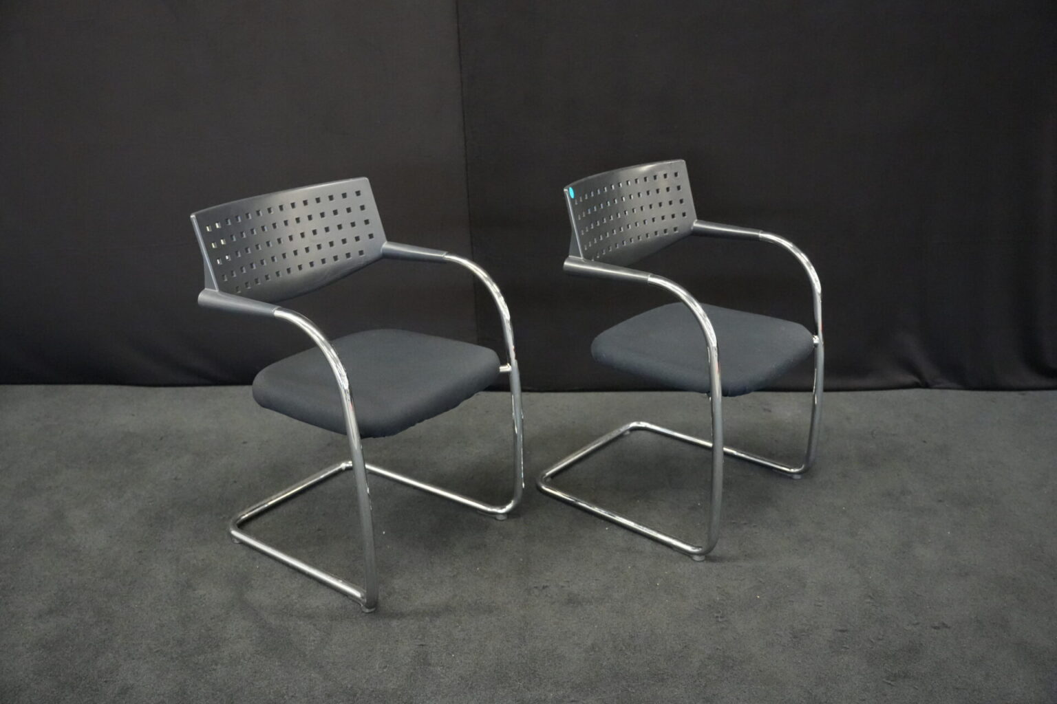 2x Vitra VisaVis Freischwinger Stoff / Schwarz | Marke: Vitra | Farbe: Schwarz | Bezug: Stoff | Abmessungen:| H: 80cm | SH:41cm | B:55cm | T:58cm