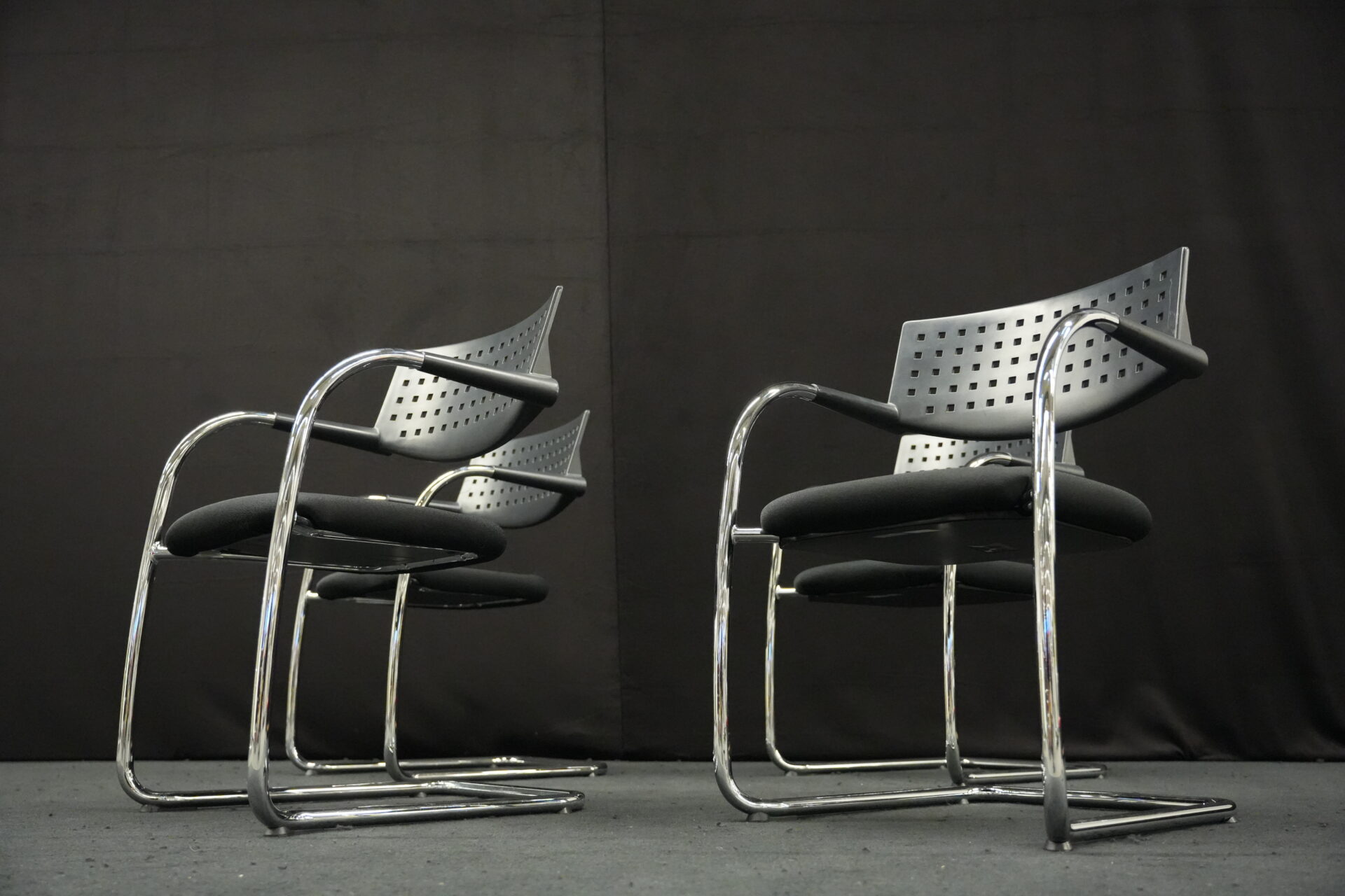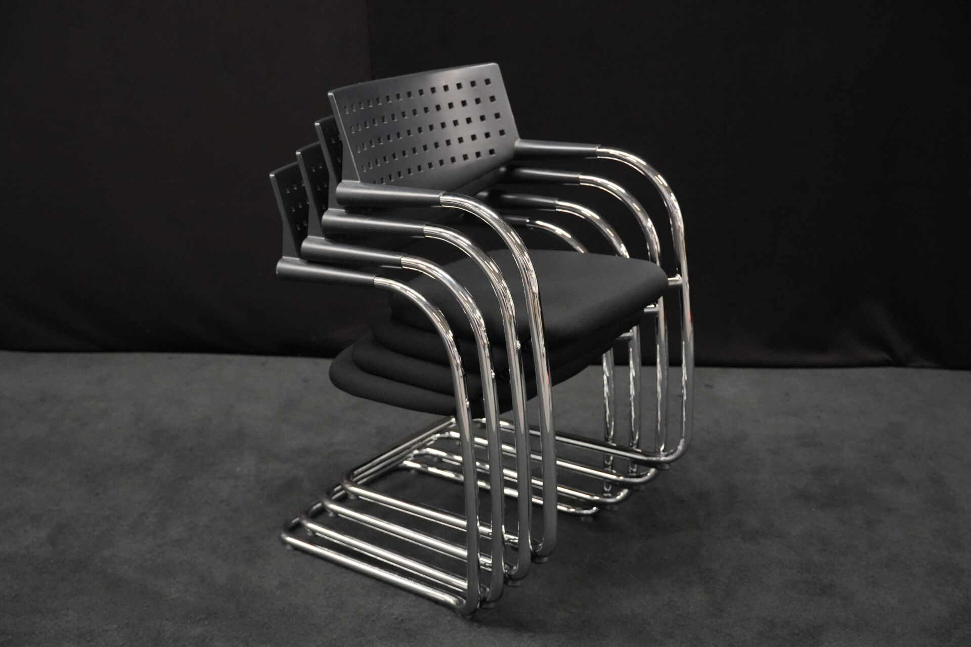 4x Vitra VisaVis Freischwinger Stoff / Schwarz