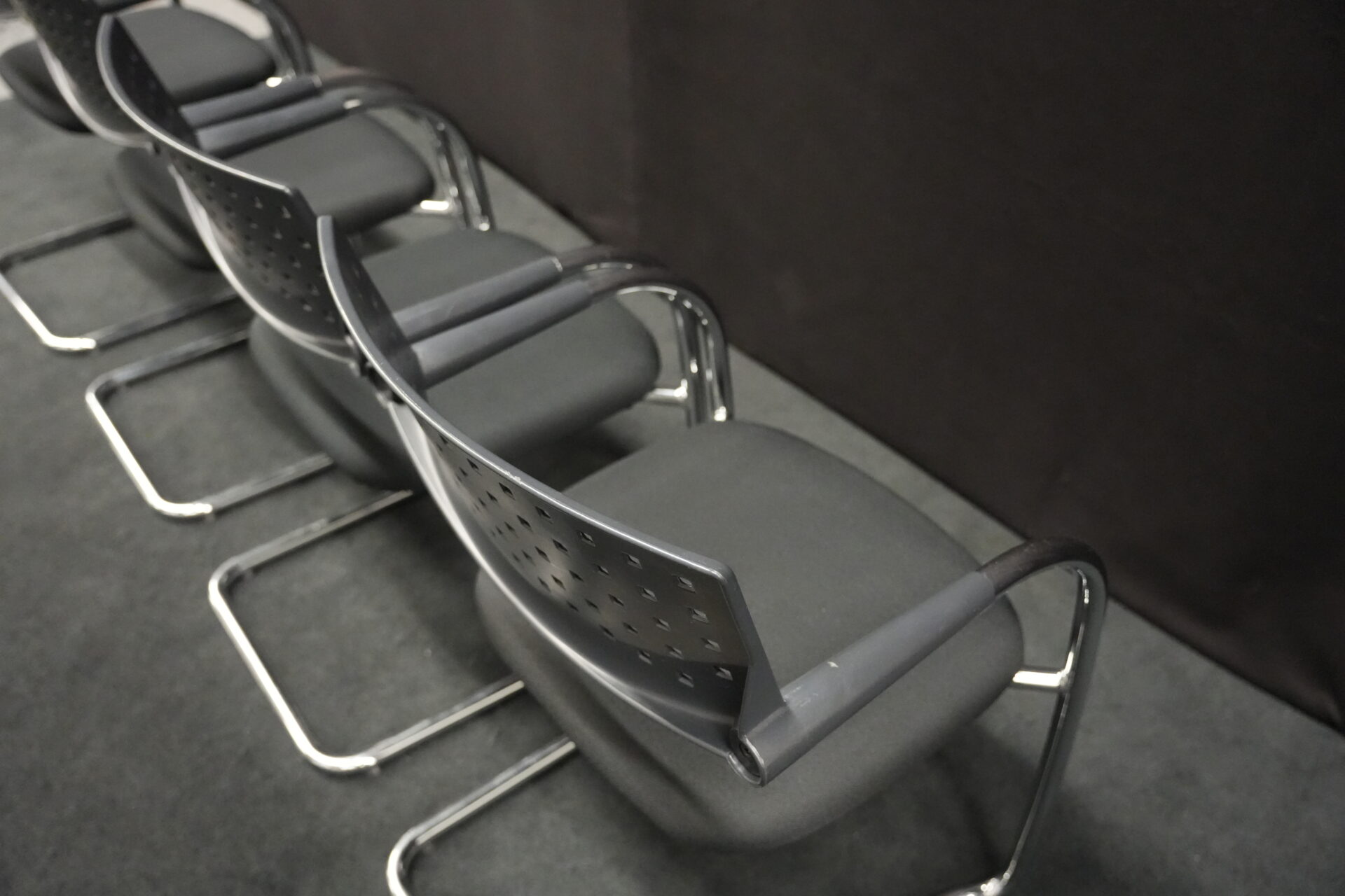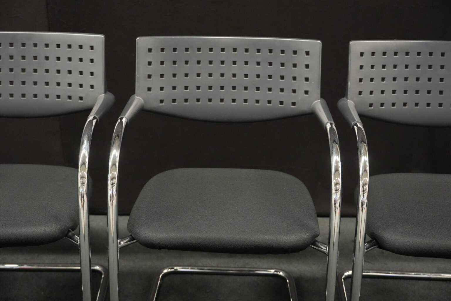 4x Vitra VisaVis Freischwinger Stoff / Schwarz | Marke: Vitra | Funktion: stapelbar | Farbe: Schwarz | Bezug: Stoff | Abmessungen:| H: 80cm | SH:41cm | B:55cm | T:58cm