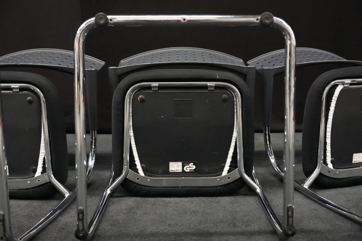 4x Vitra VisaVis Freischwinger Stoff / Schwarz | Marke: Vitra | Farbe: Schwarz | Bezug: Stoff | Abmessungen:| H: 80cm | SH:41cm | B:55cm | T:58cm