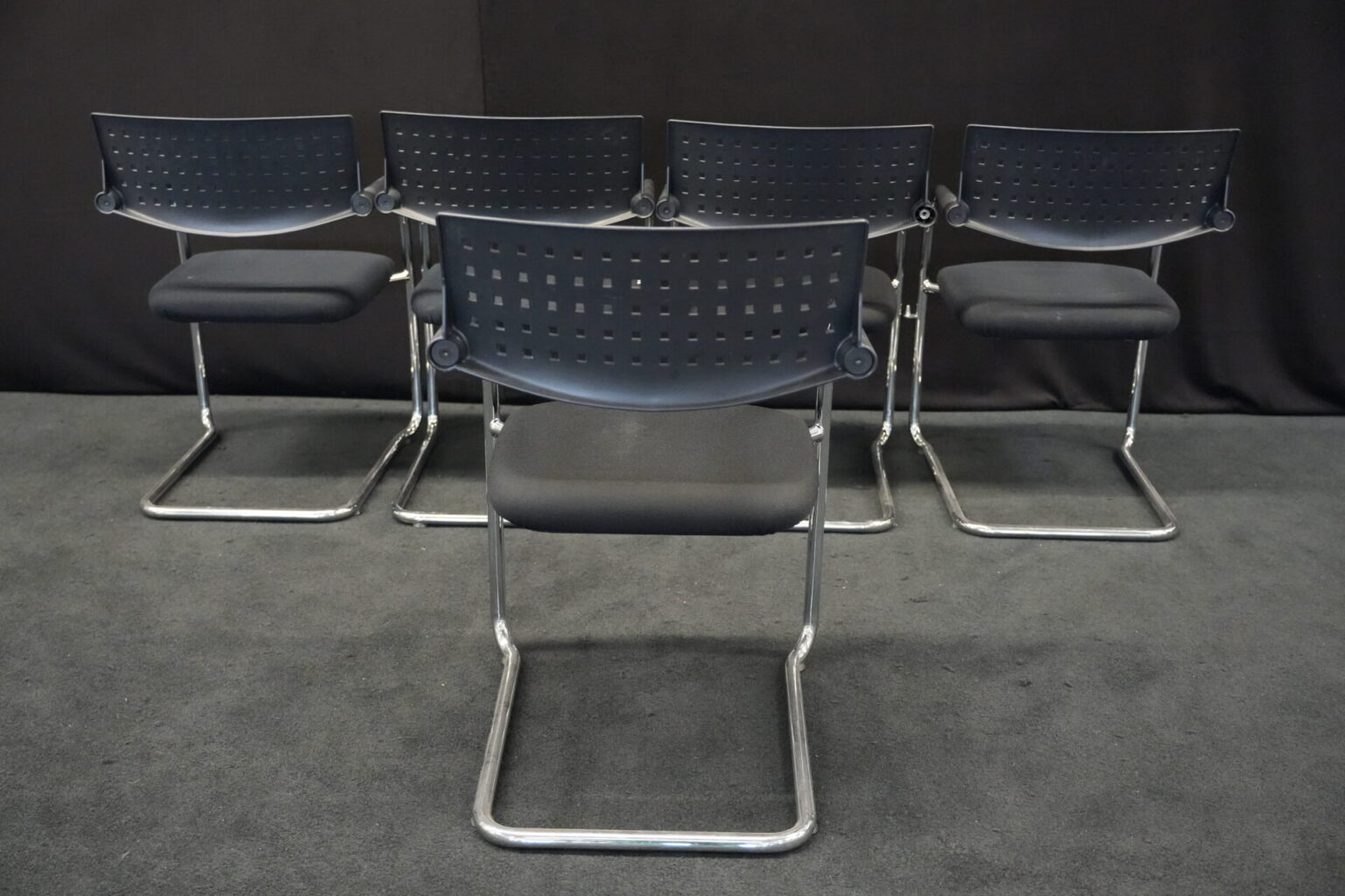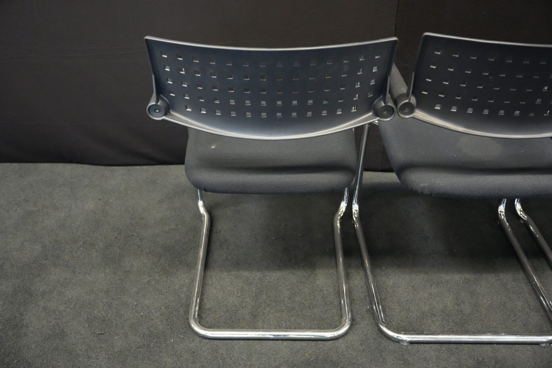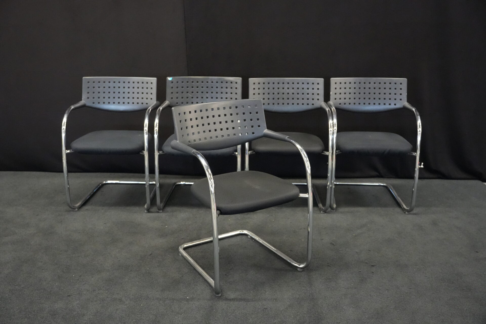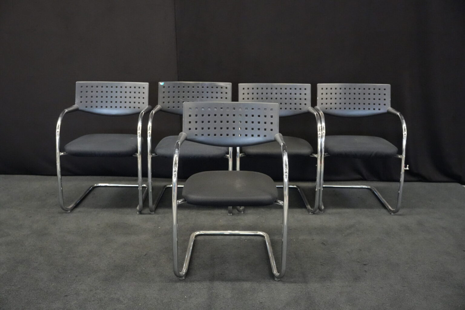 5x Vitra VisaVis Freischwinger Stoff / Schwarz | Marke: Vitra | Farbe: Schwarz | Bezug: Stoff | Abmessungen:| H: 80cm | SH:41cm | B:55cm | T:58cm