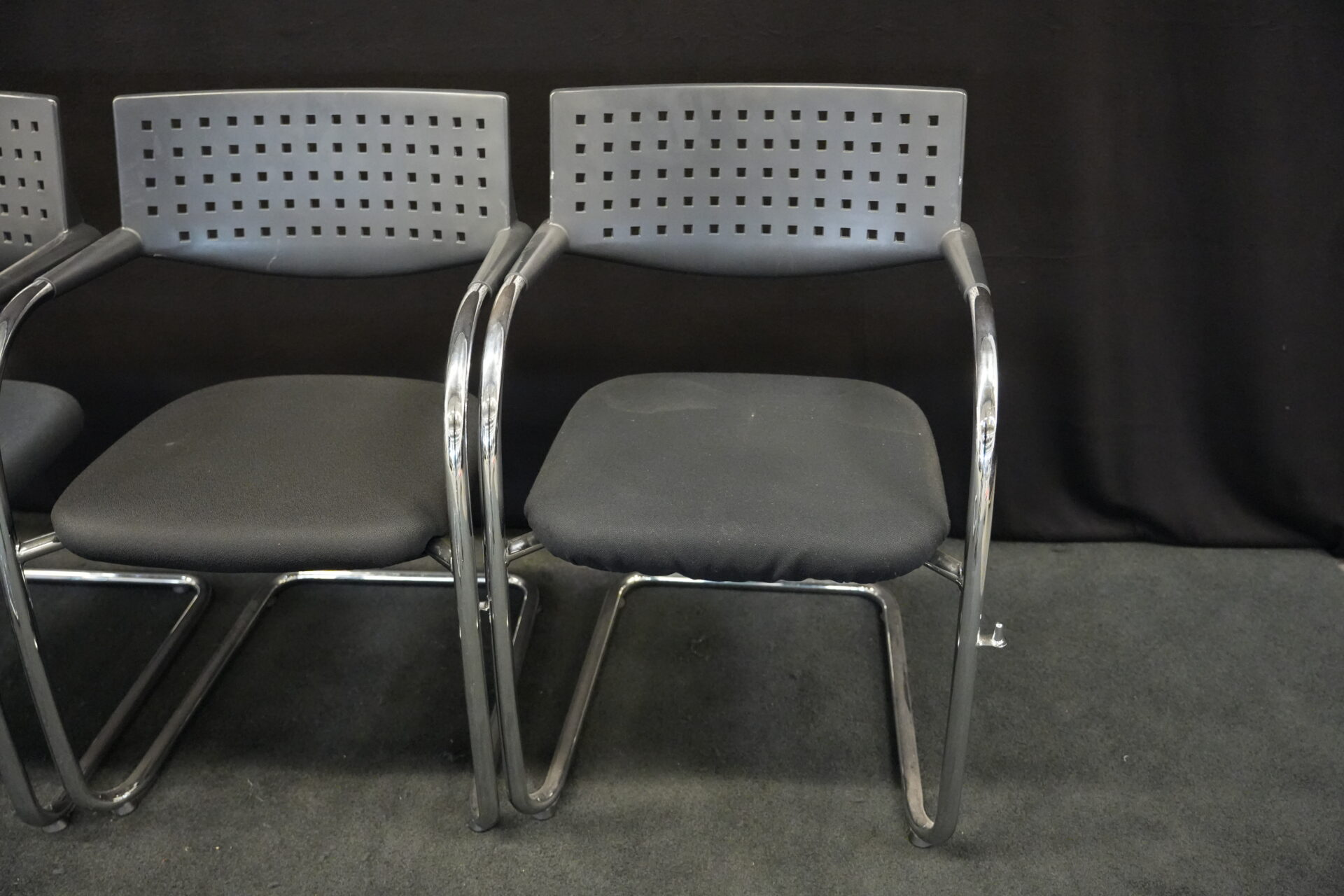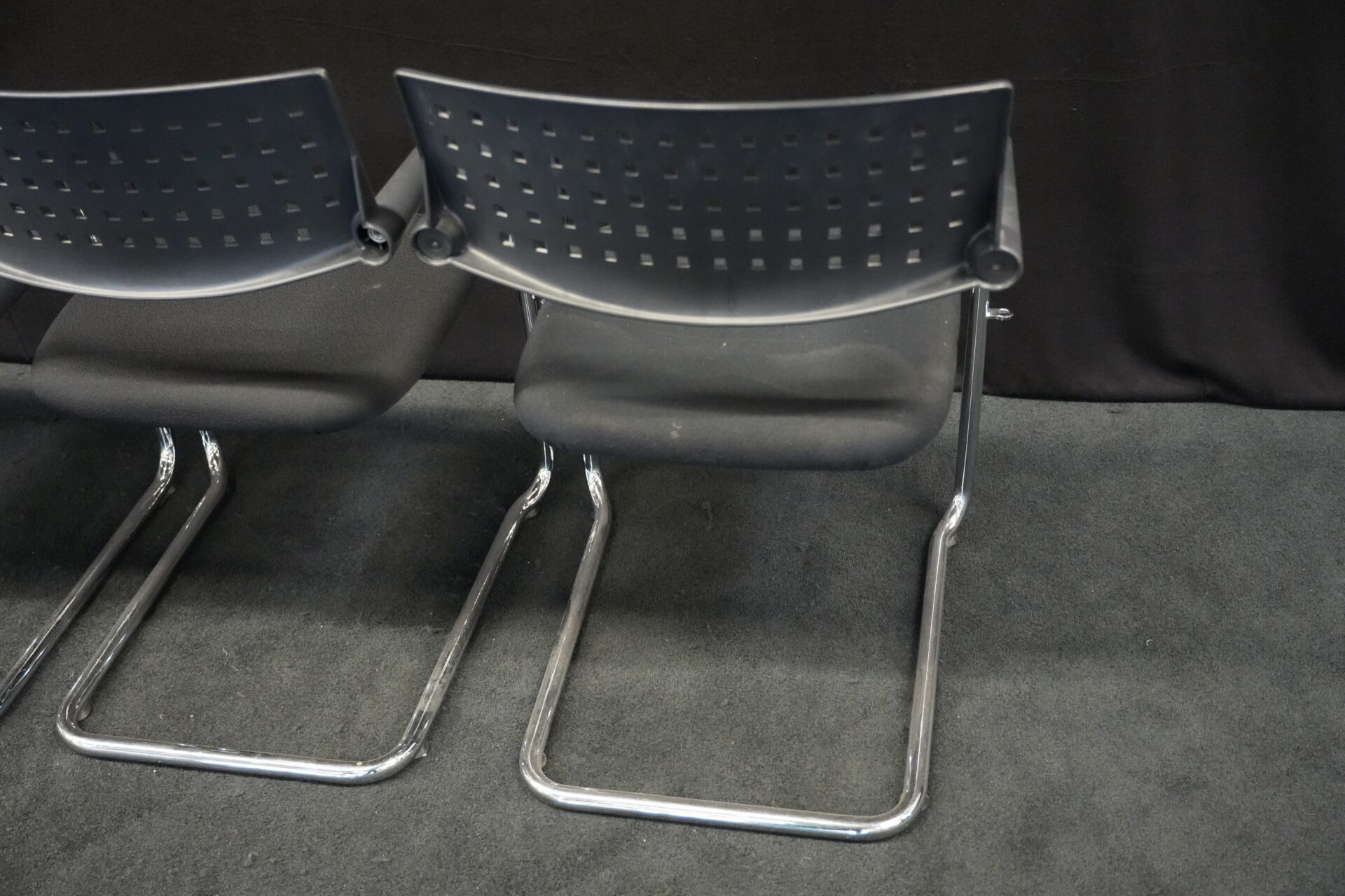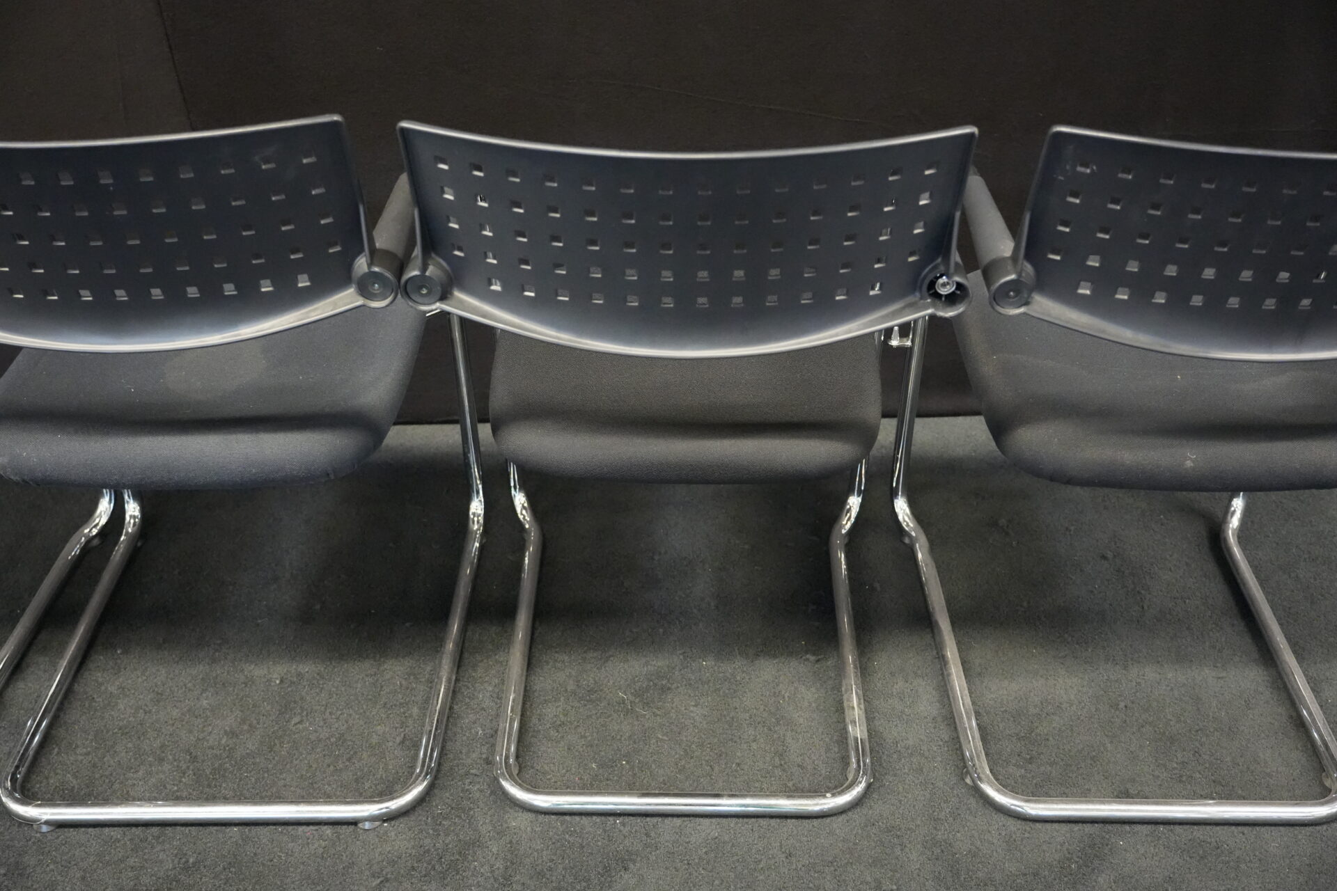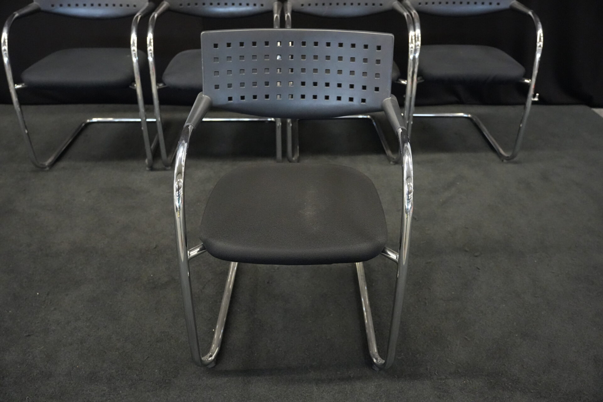 5x Vitra VisaVis Freischwinger Stoff / Schwarz | Marke: Vitra | Farbe: Schwarz | Bezug: Stoff | Abmessungen:| H: 80cm | SH:41cm | B:55cm | T:58cm