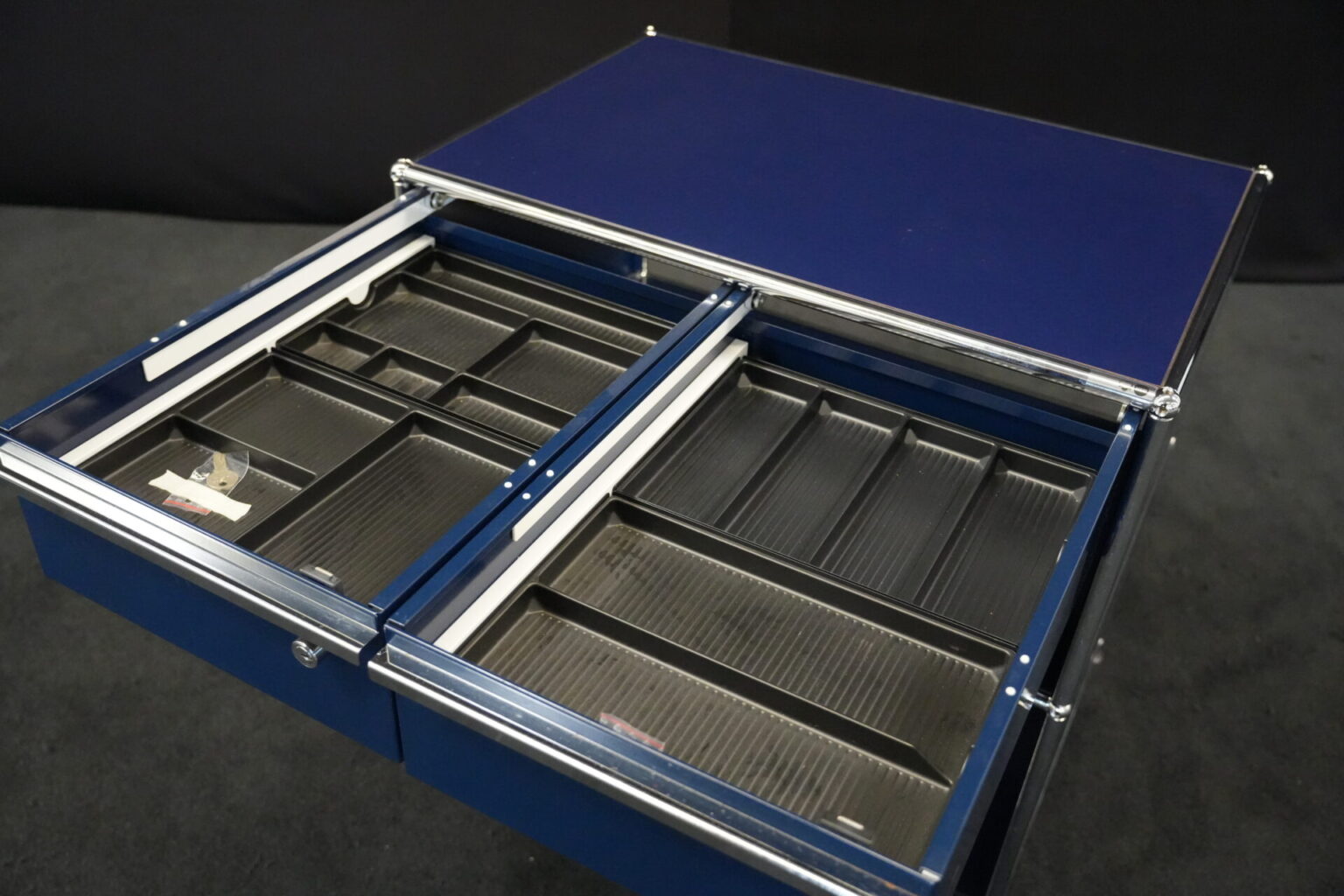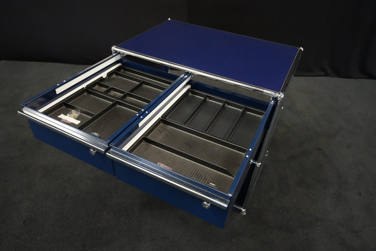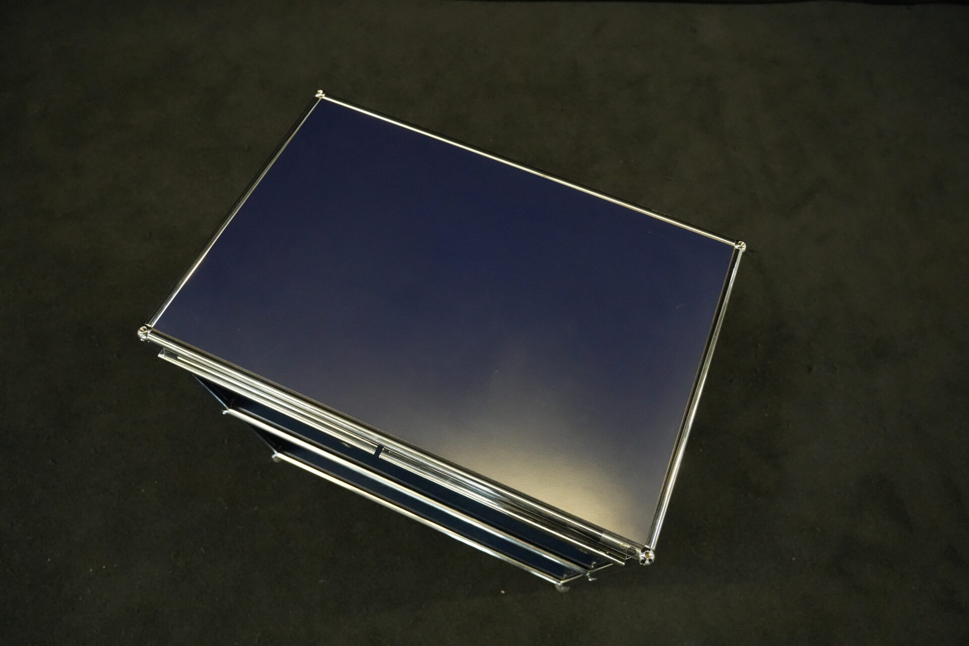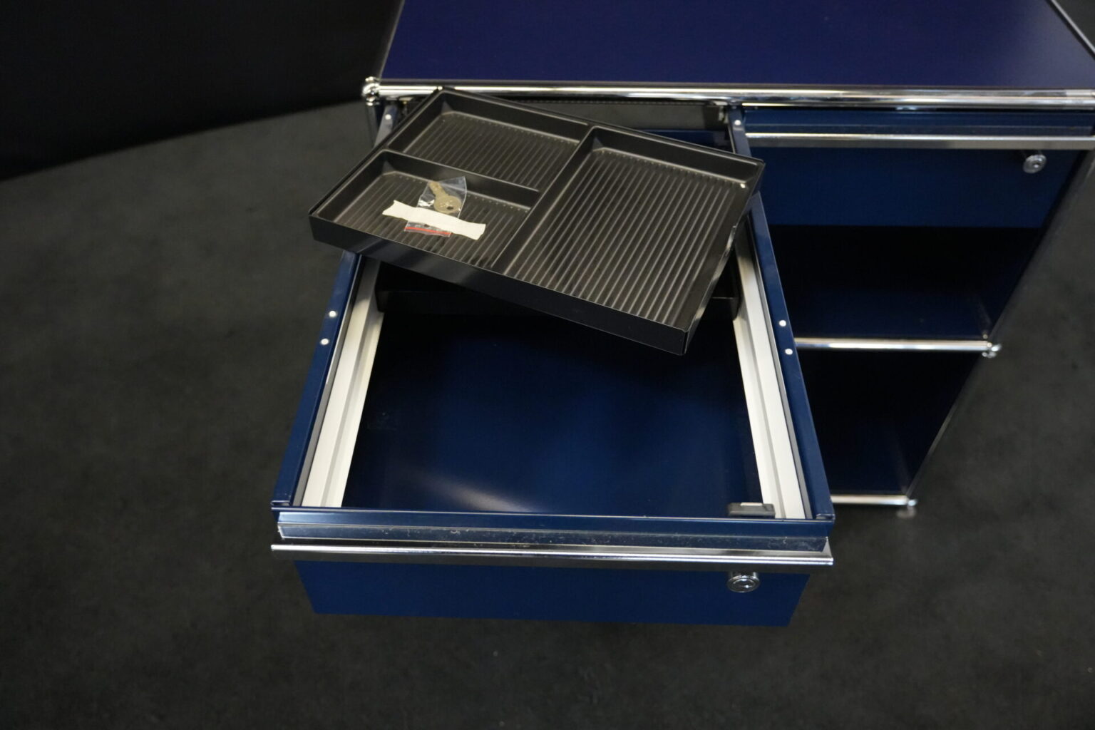 USM Haller Regal | Marke: USM Haller | Farbe: Stahlblau RAL 5011 | Höhe: 75cm | Länge: 51cm | Breite: 75cm