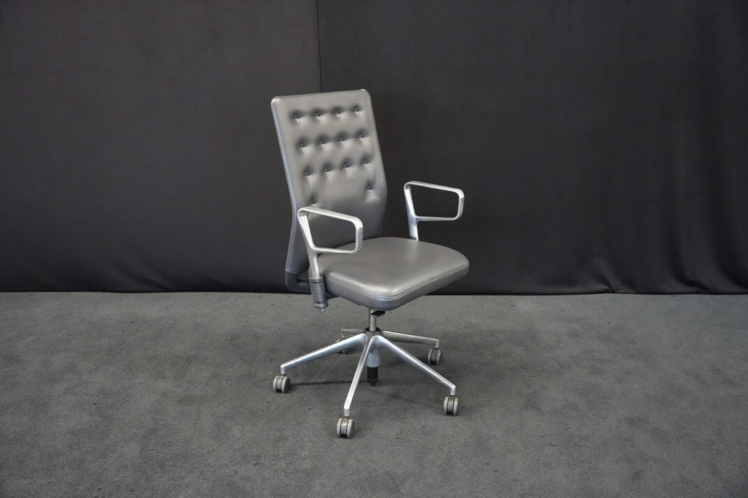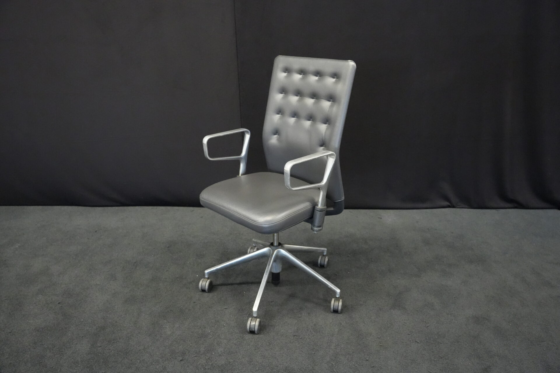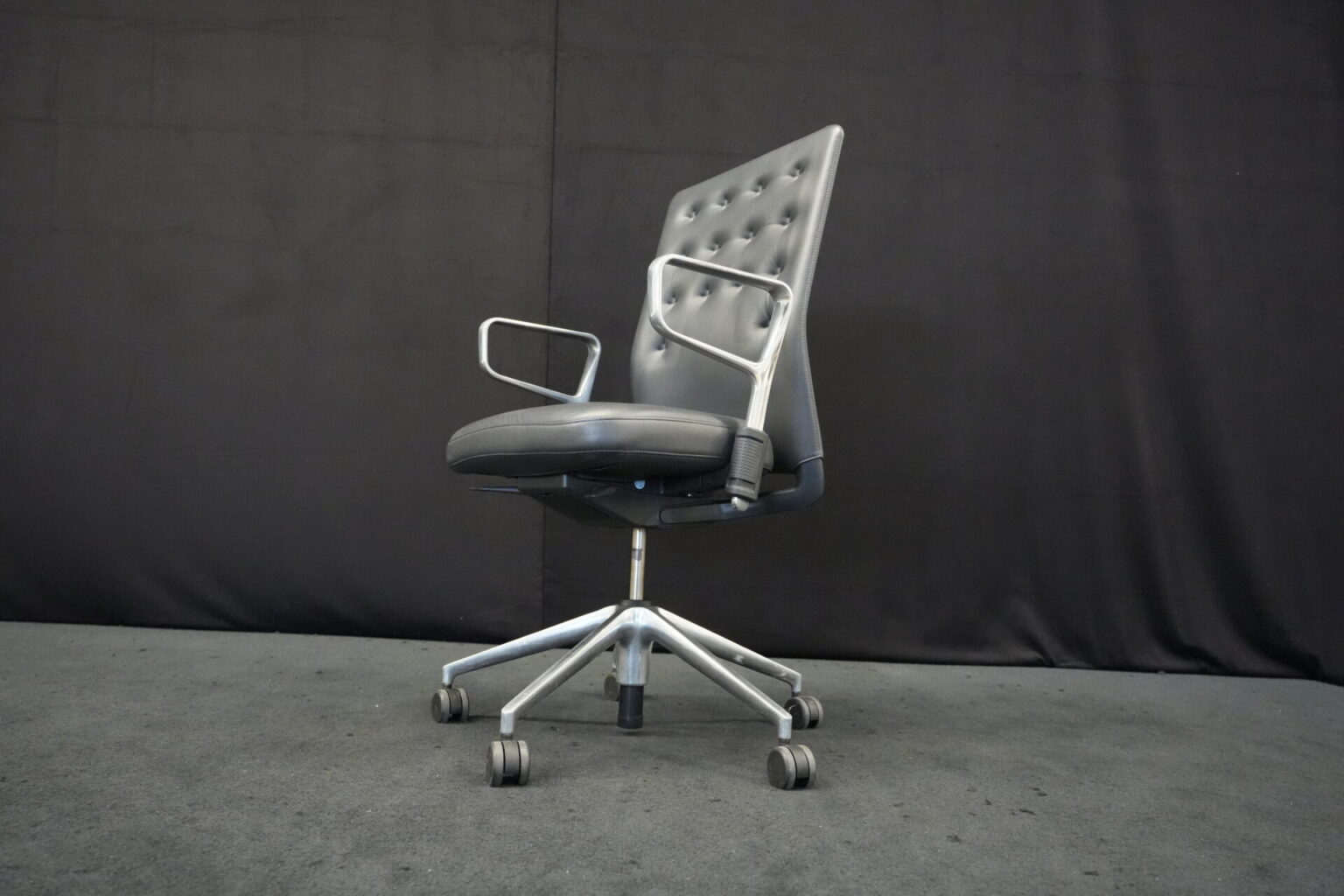Vitra Bürostuhl ID Trim | Marke: Vitra | Farbe: Schwarz | Bezug: Leder | Abmessungen: H: 99-112 cm | SH: 43-55 cm | W: 57 cm | T: 47 cm