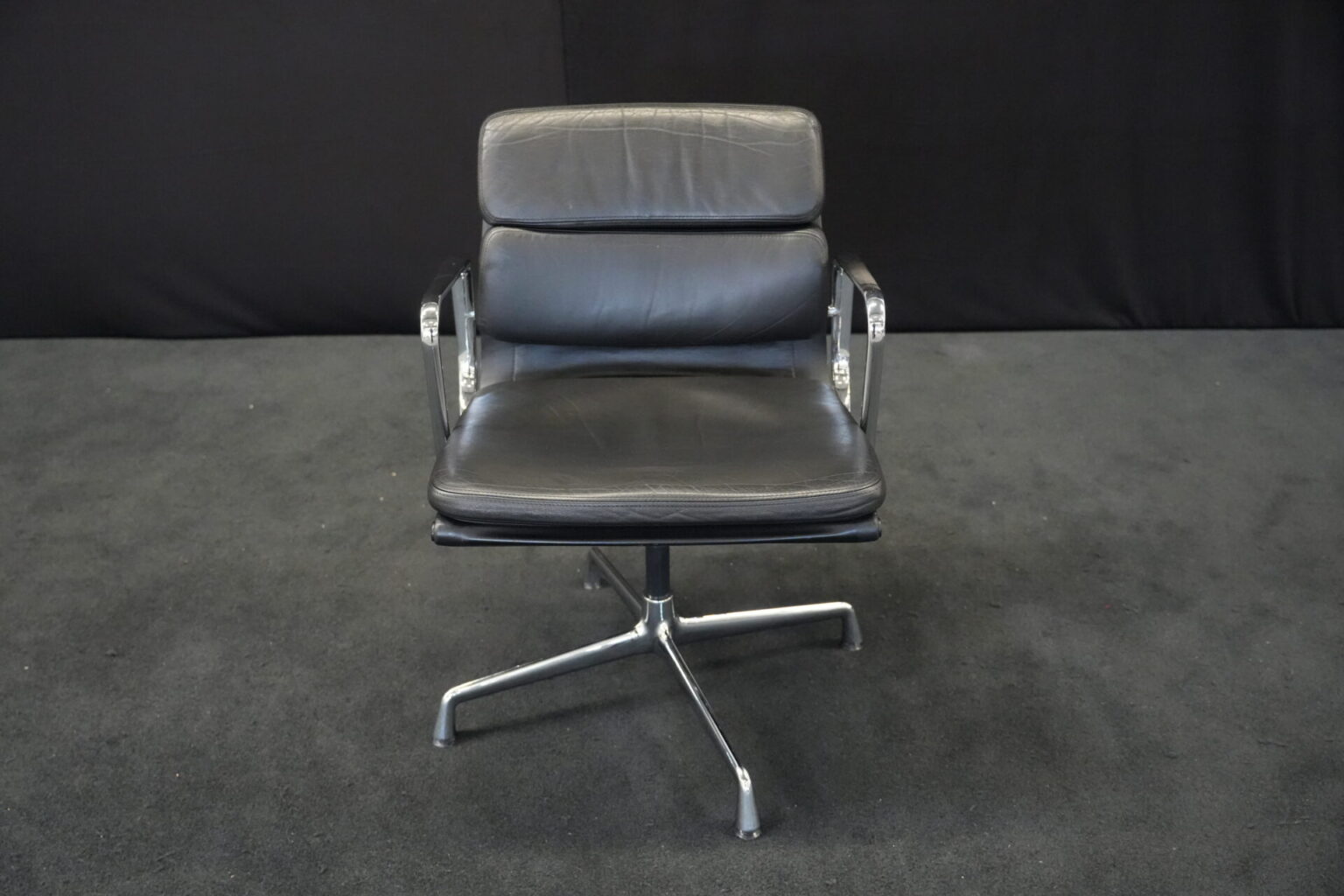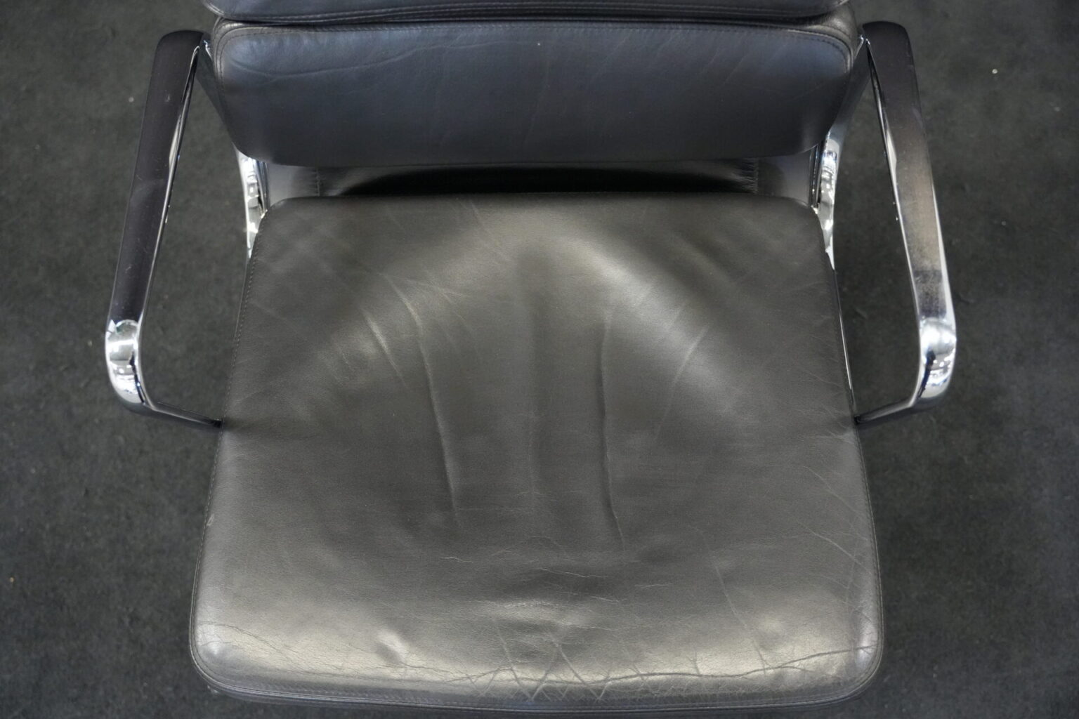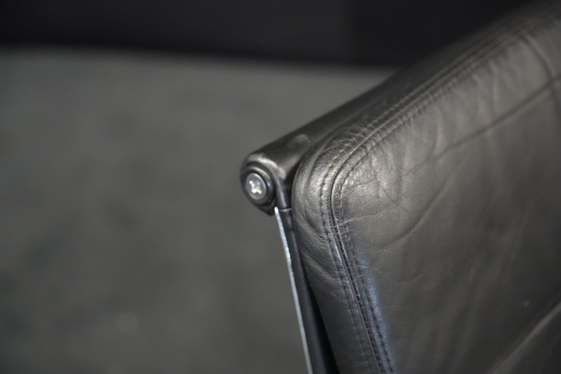 Herman Miller für Vitra EA 208 Leder / Schwarz | Marke: Herman Miller / Vitra | Bezug: Soft Pad in Leder | Funktion: drehbar | Farbe: schwarz| Abmessungen: H: 83cm | SH: 50 cm | B: 51cm | T: 48cm