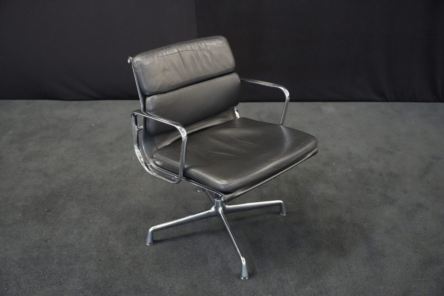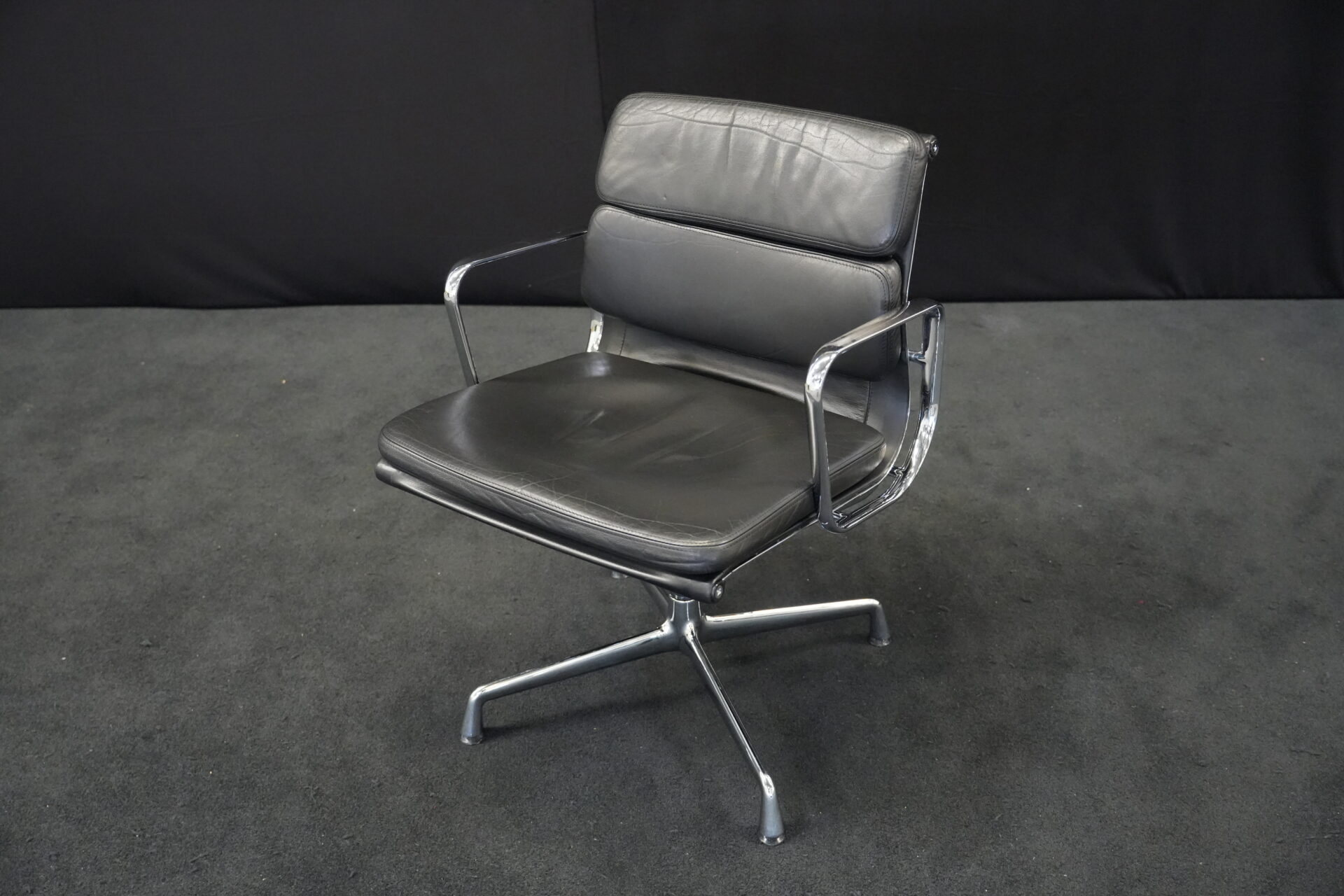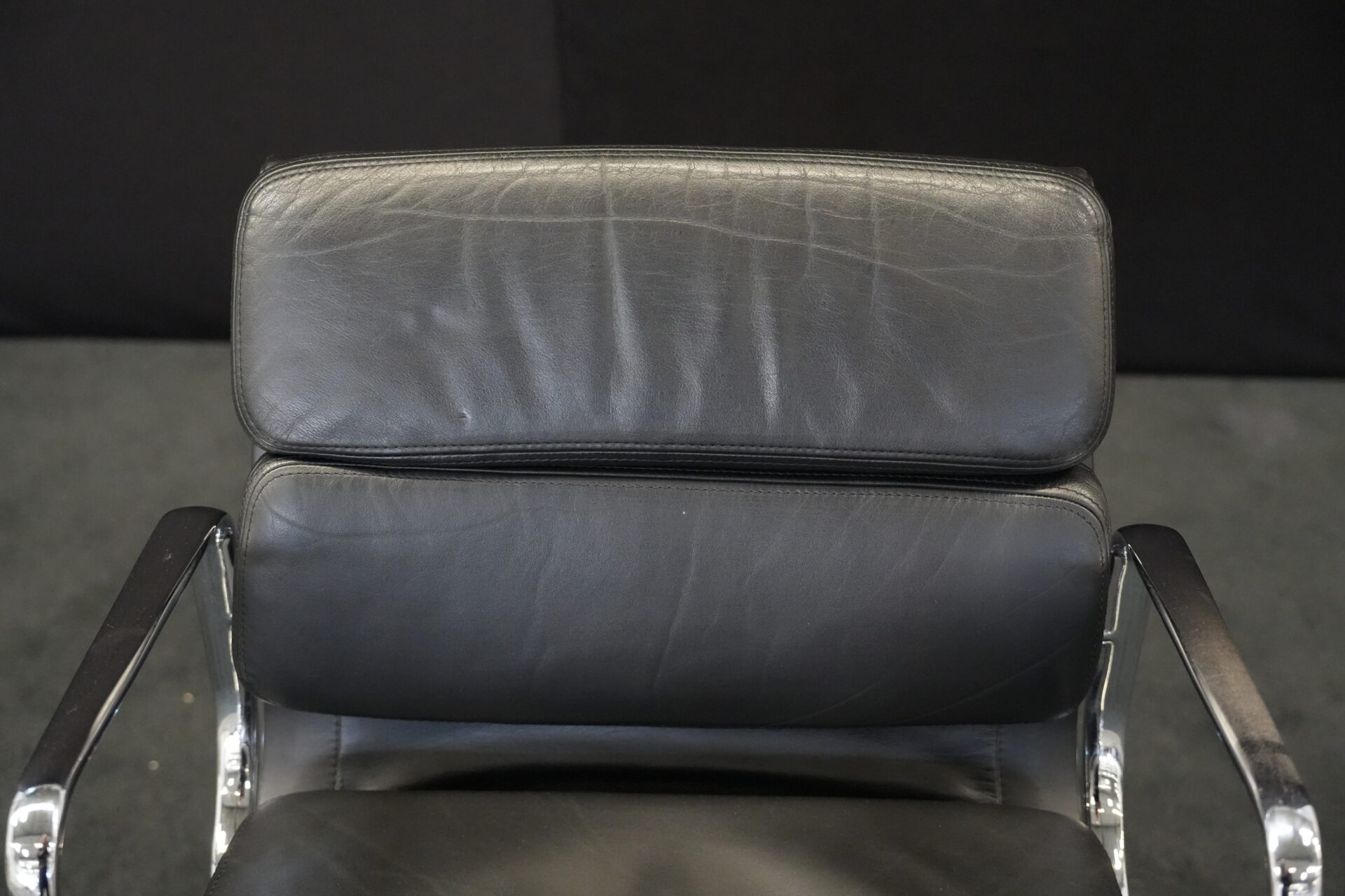 Herman Miller für Vitra EA 208 Leder / Schwarz | Marke: Herman Miller / Vitra | Bezug: Soft Pad in Leder | Funktion: drehbar | Farbe: schwarz| Abmessungen: H: 83cm | SH: 50 cm | B: 51cm | T: 48cm