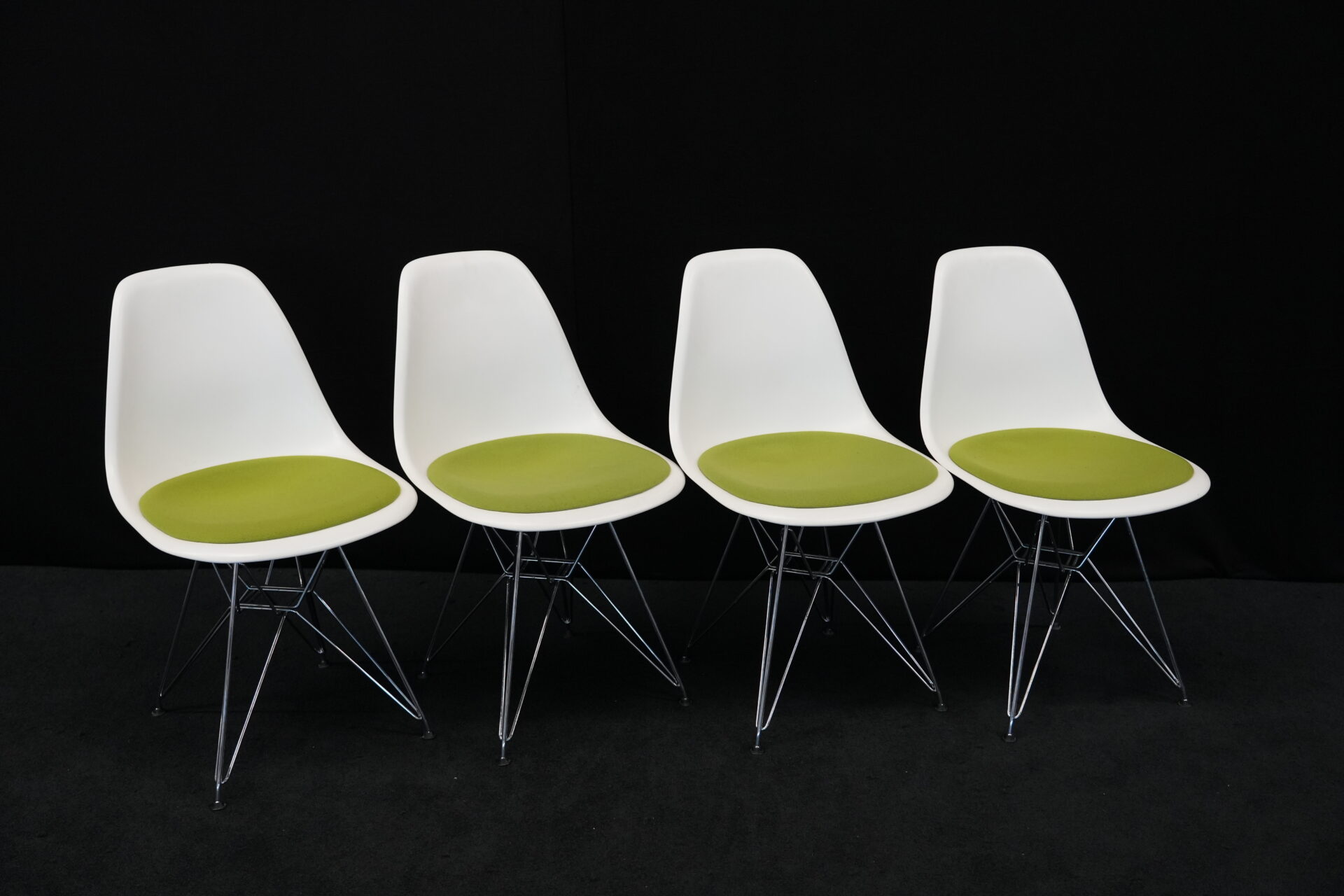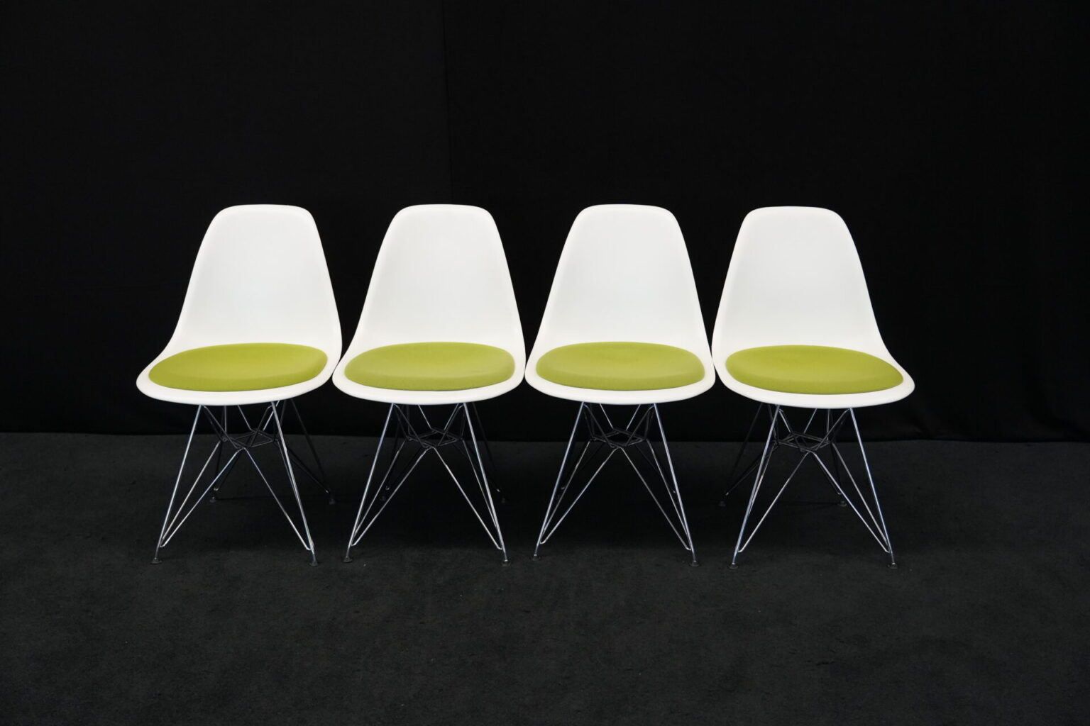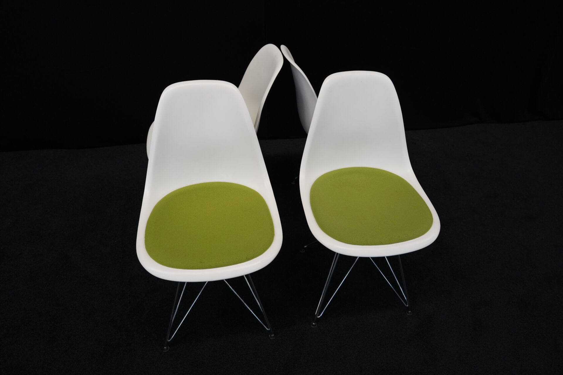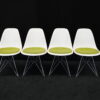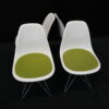 4x Vitra Plastic Side Chair RE DSR | Marke: Vitra | Farbe: Weiß | Bezug: Stoff / Grün | Abmessungen: H 80cm | SH: 46cm | T: 44cm | B: 46cm