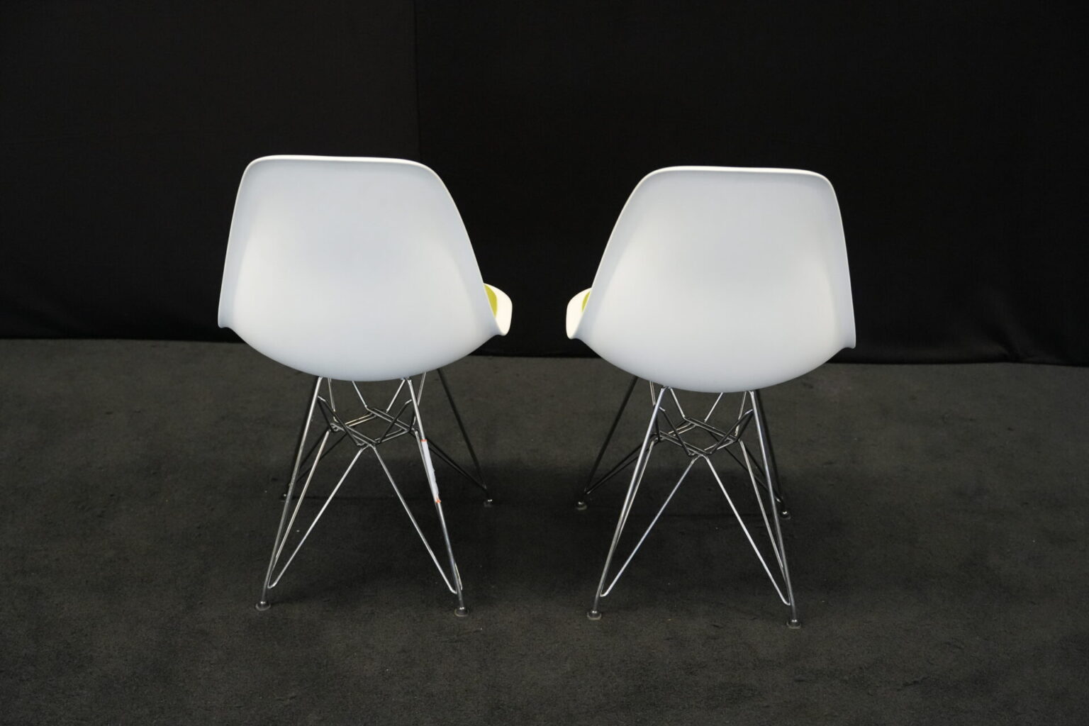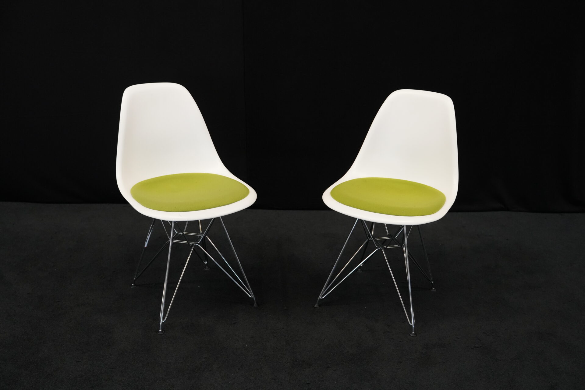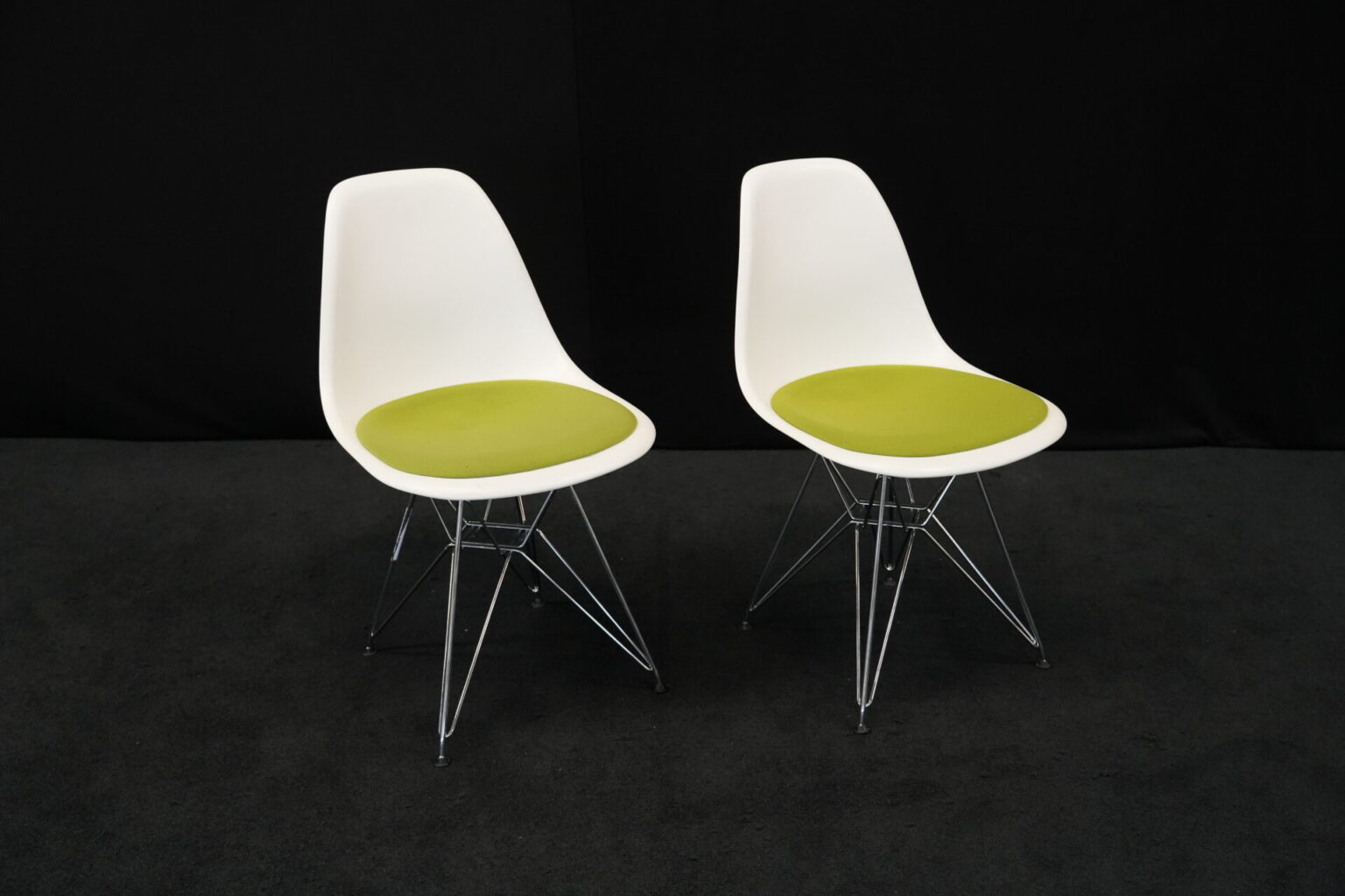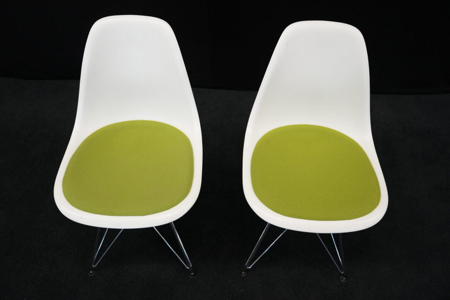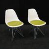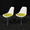 2x Vitra Plastic Side Chair RE DSR | Marke: Vitra | Farbe: Weiß | Bezug: Stoff / Grün | Abmessungen: H 80cm | SH: 46cm | T: 44cm | B: 46cm
