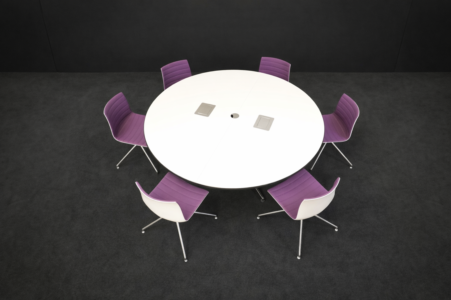 USM Kitos Konferenztisch + Arper Catifa 46 Besucherstühle Hopsak Lila
