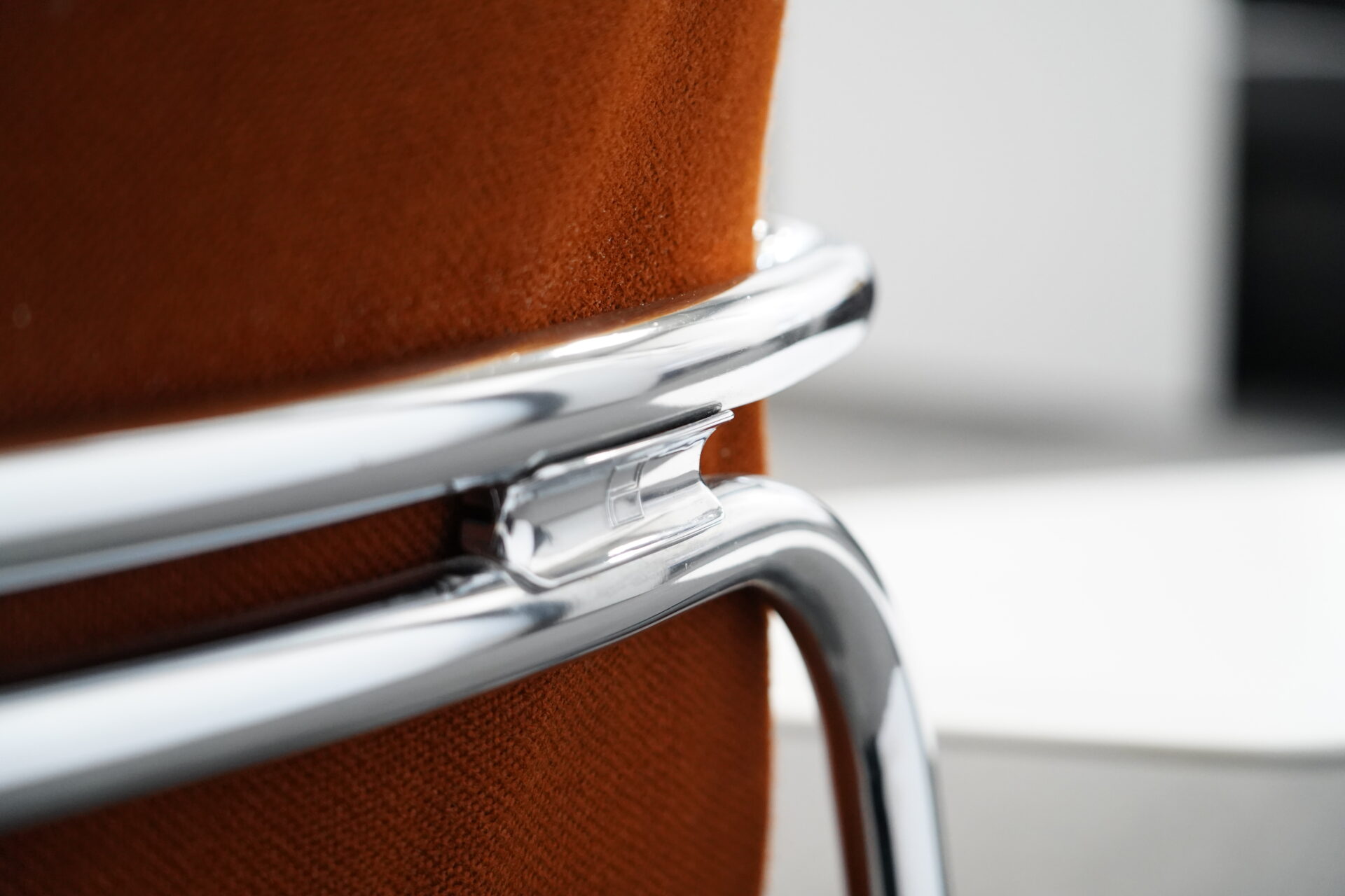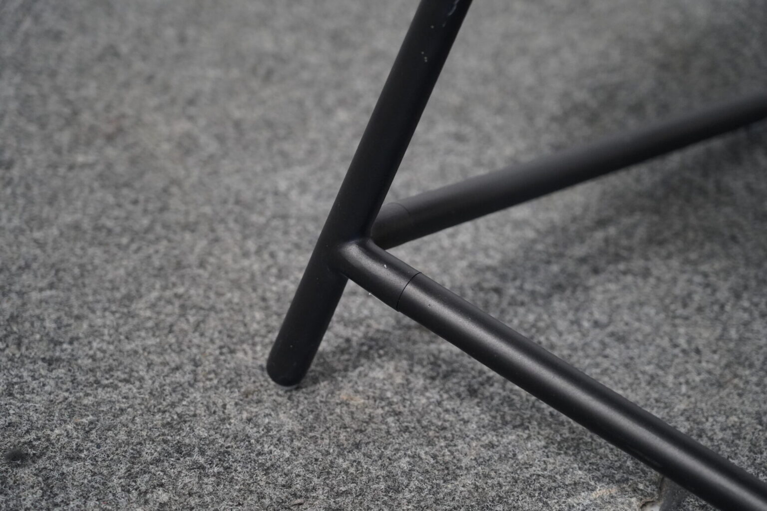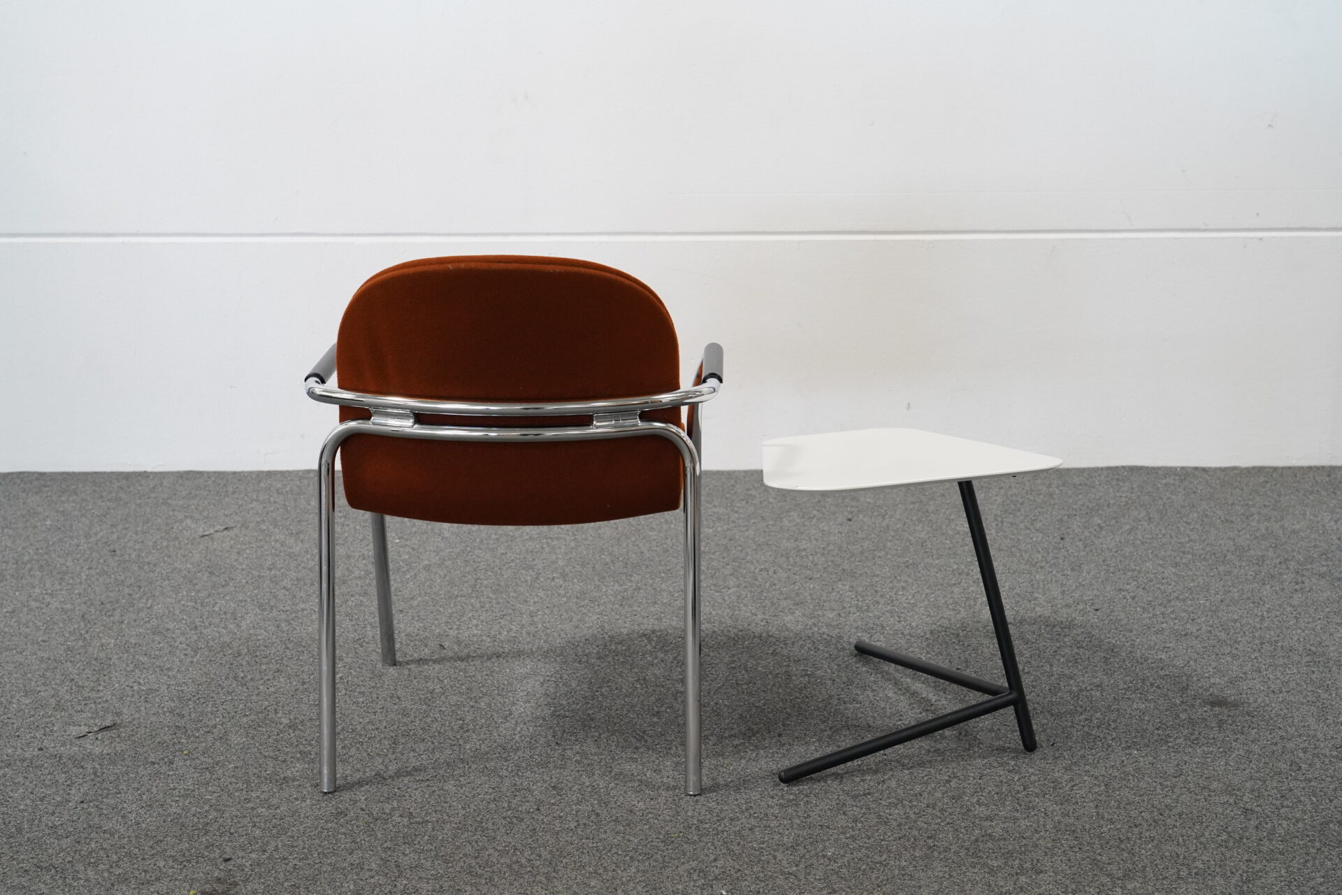 Stuhl Gestell verchromt | H: 81cm | SH: 45cm | B: 64cm | T: 50cm | Beistelltisch Gestell Metall schwarz | H: 40-49cm |B: 65cm | T: 46cm