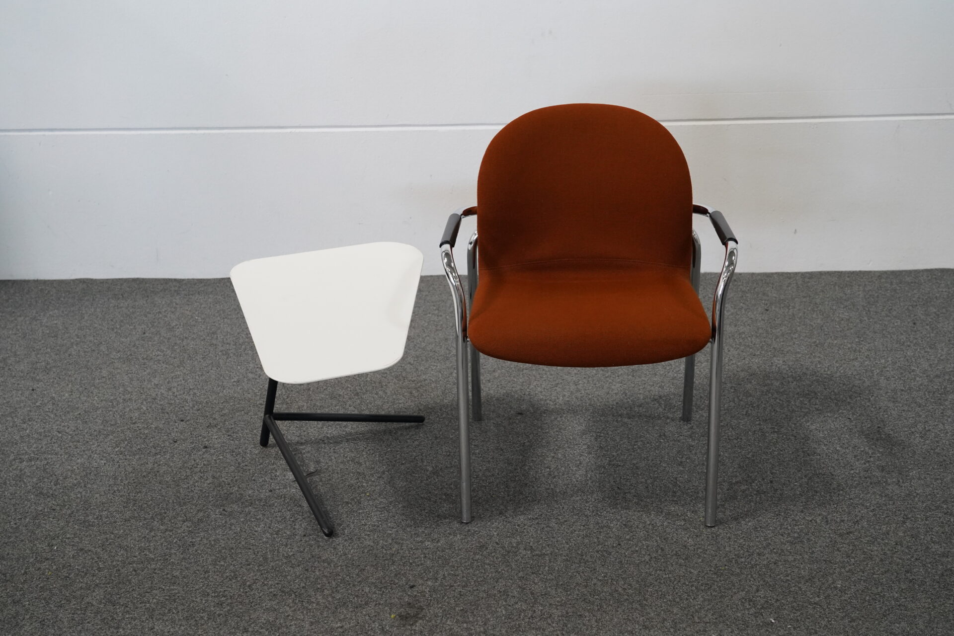 2er Set Stuhl Stoff Rot und Beistelltisch Kunststoff Weiß