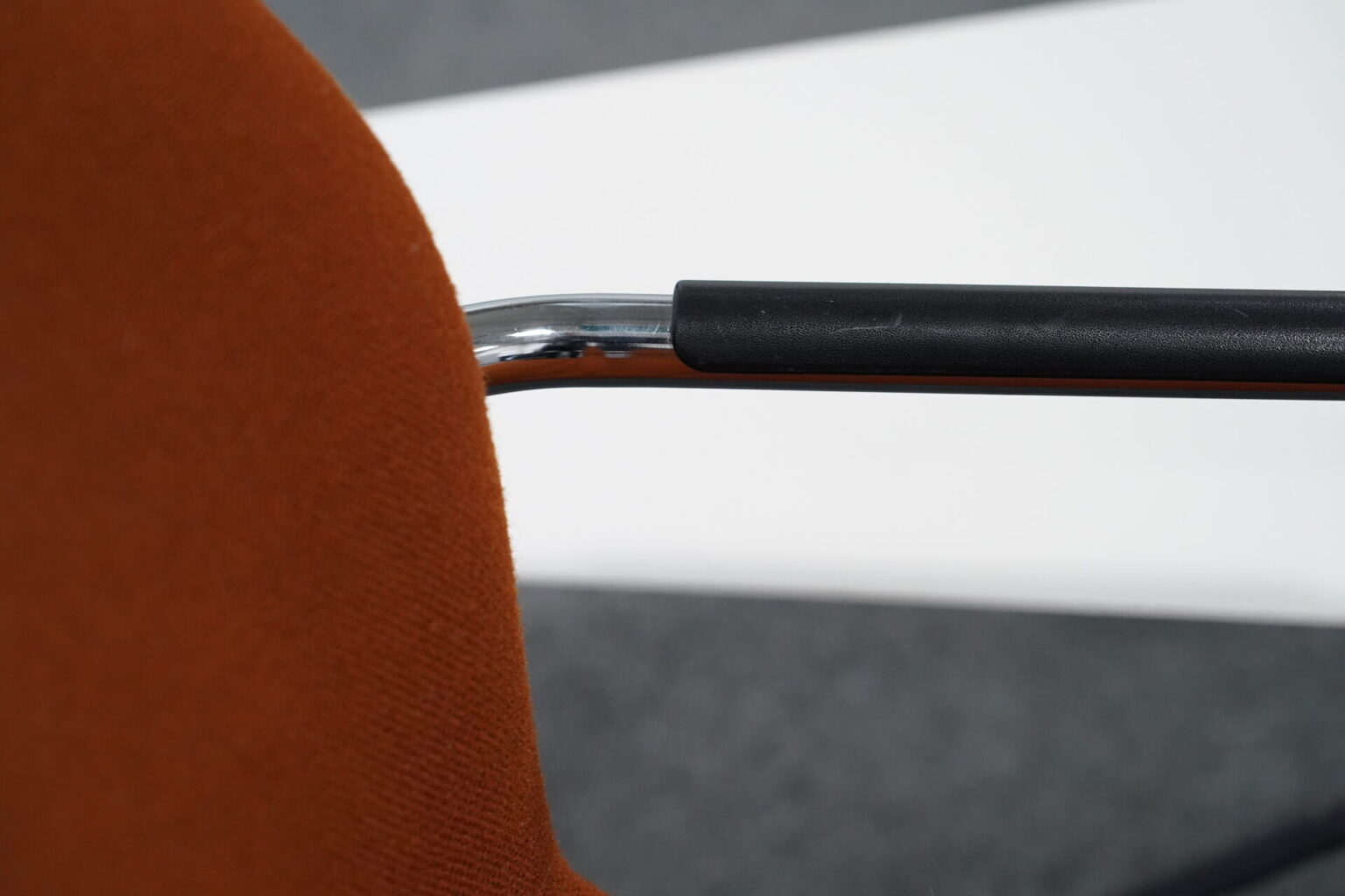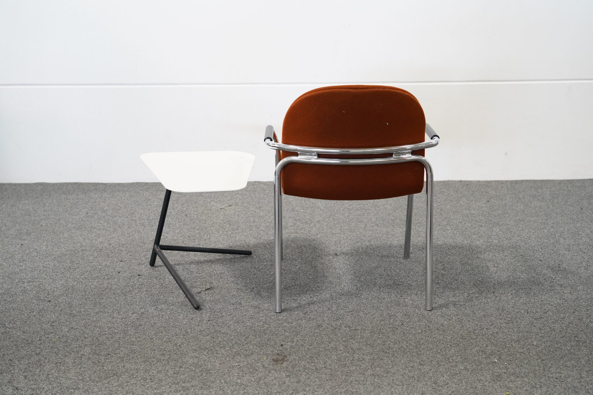 Stuhl Gestell verchromt | H: 81cm | SH: 45cm | B: 64cm | T: 50cm | Beistelltisch Gestell Metall schwarz | H: 40-49cm |B: 65cm | T: 46cm