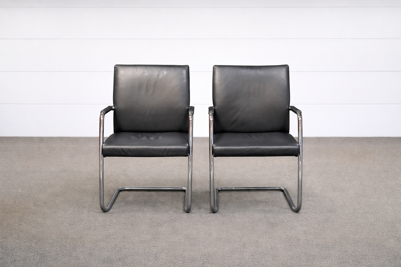 Spiegels 2er Set Besucherstühle Leder Schwarz
