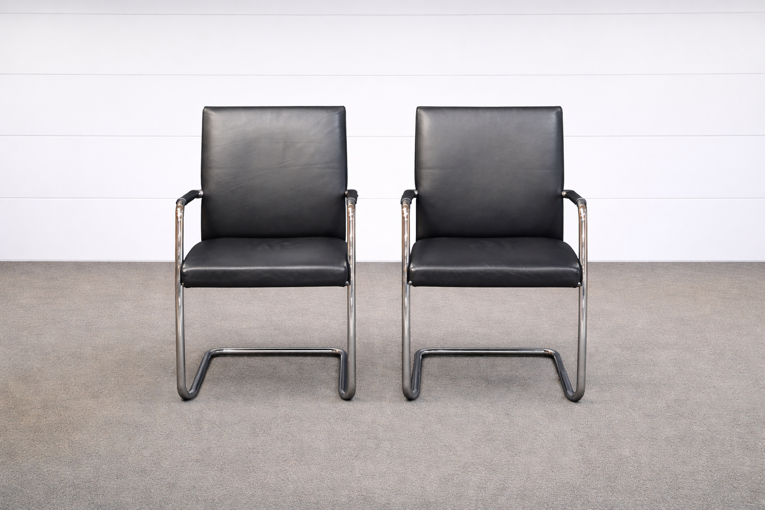 Spiegels 2er Set Besucherstühle Leder Schwarz