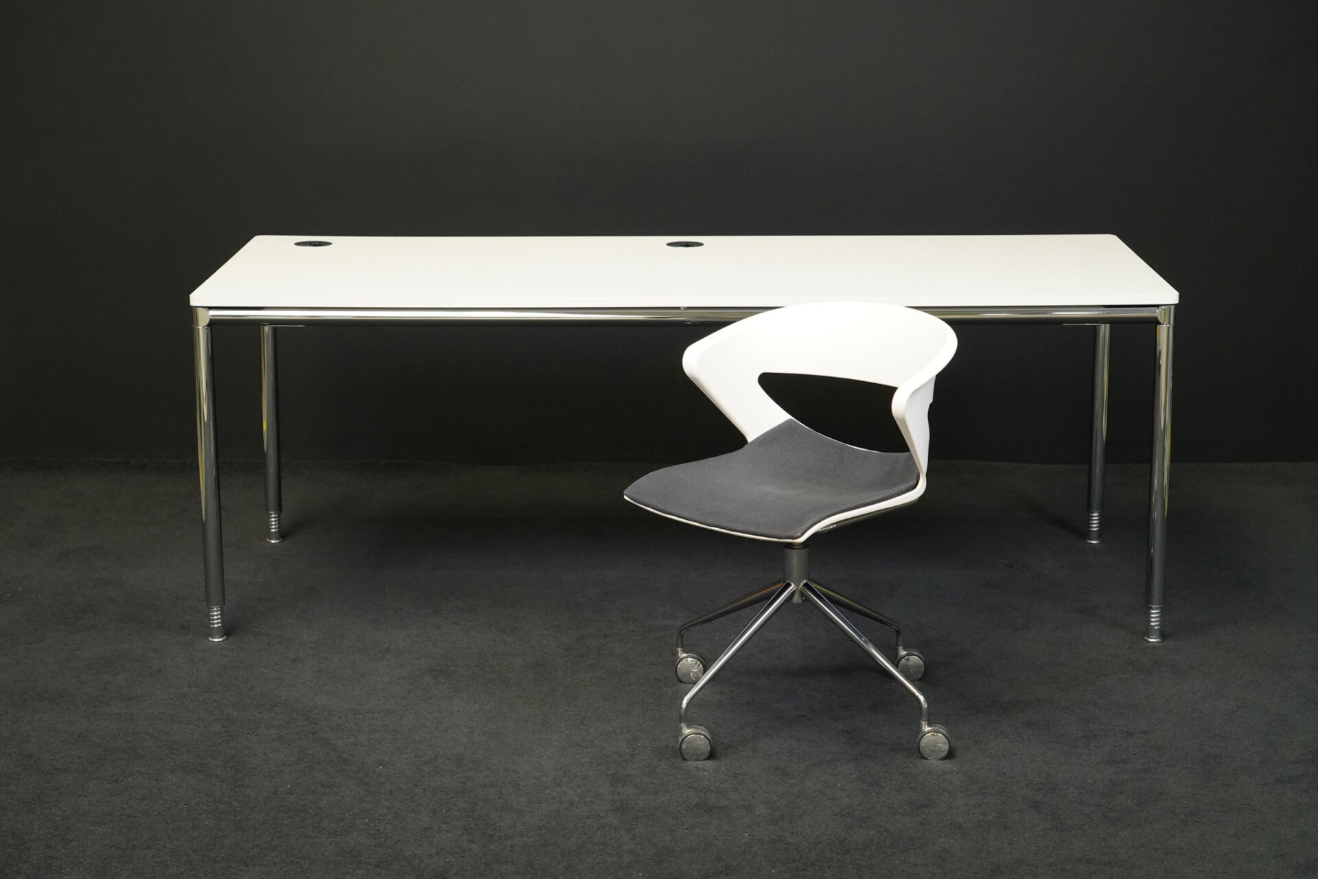 Bosse Schreibtisch 200x80cm + Kastel Bürodrehstuhl Kicca Kunststoff Weiß