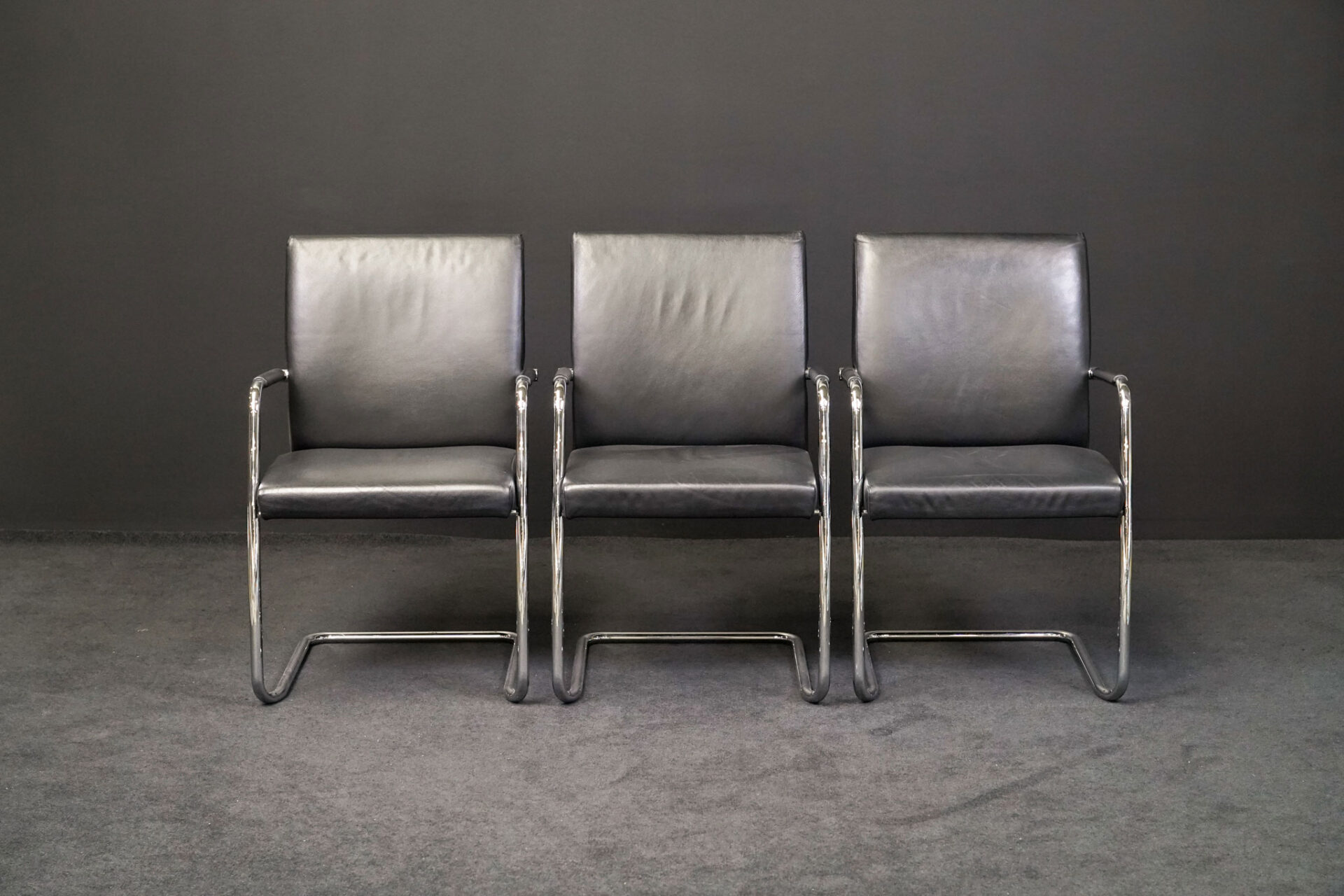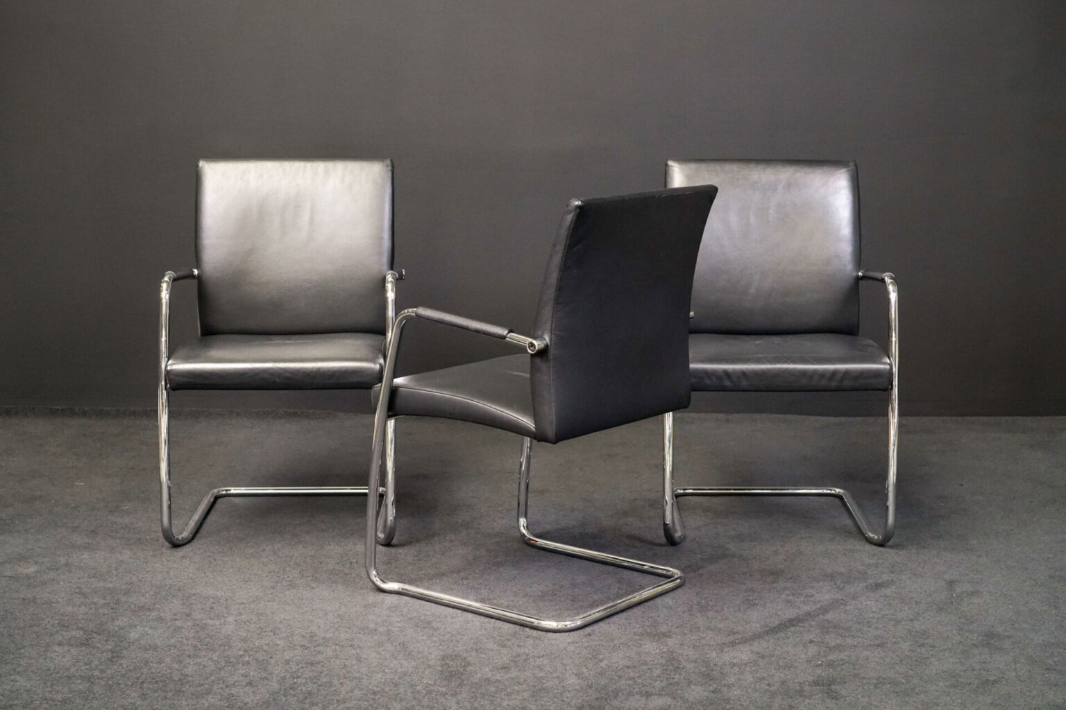 Spiegels 3er Set Besucherstühle Leder Schwarz