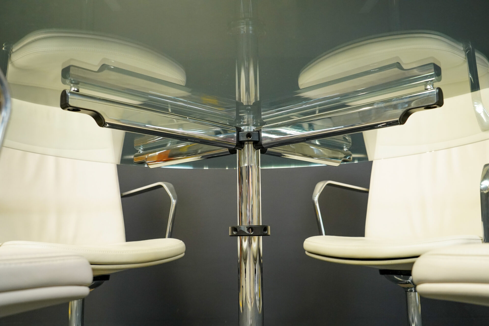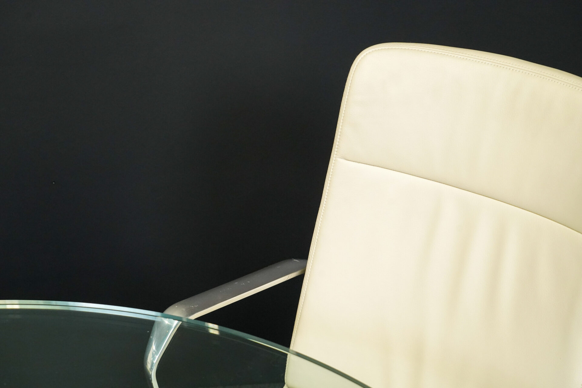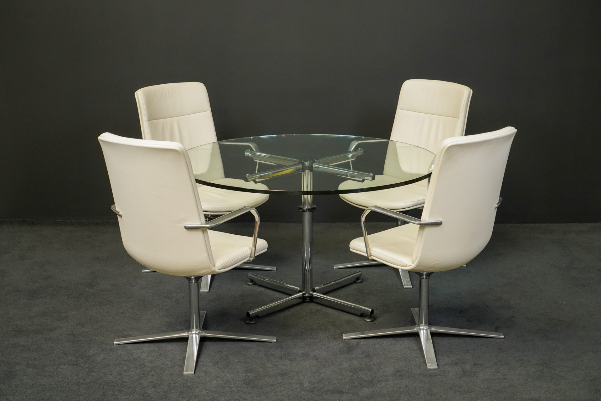 USM Kitos Konferenztisch + 4x Orangebox Besucherstuhl Calder-HBS4 Leder Beige