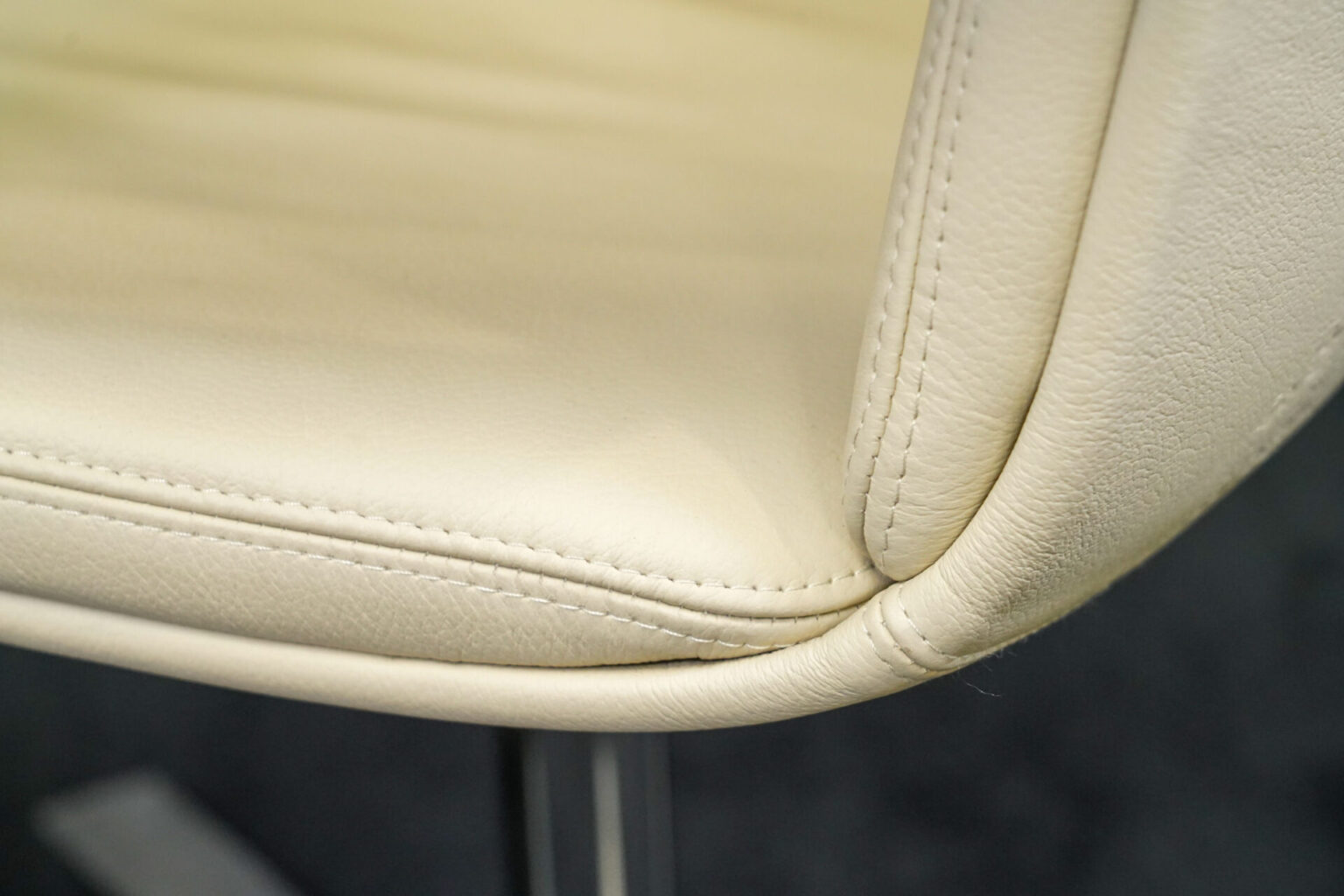Stühle: Leder | Beige | Gestell Alu poliert | drehbar | mit Wippfunktion | H: 100cm | SH: 47cm | B: 62cm | T: 65cm