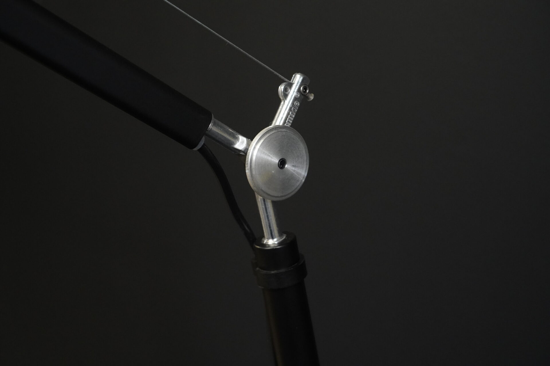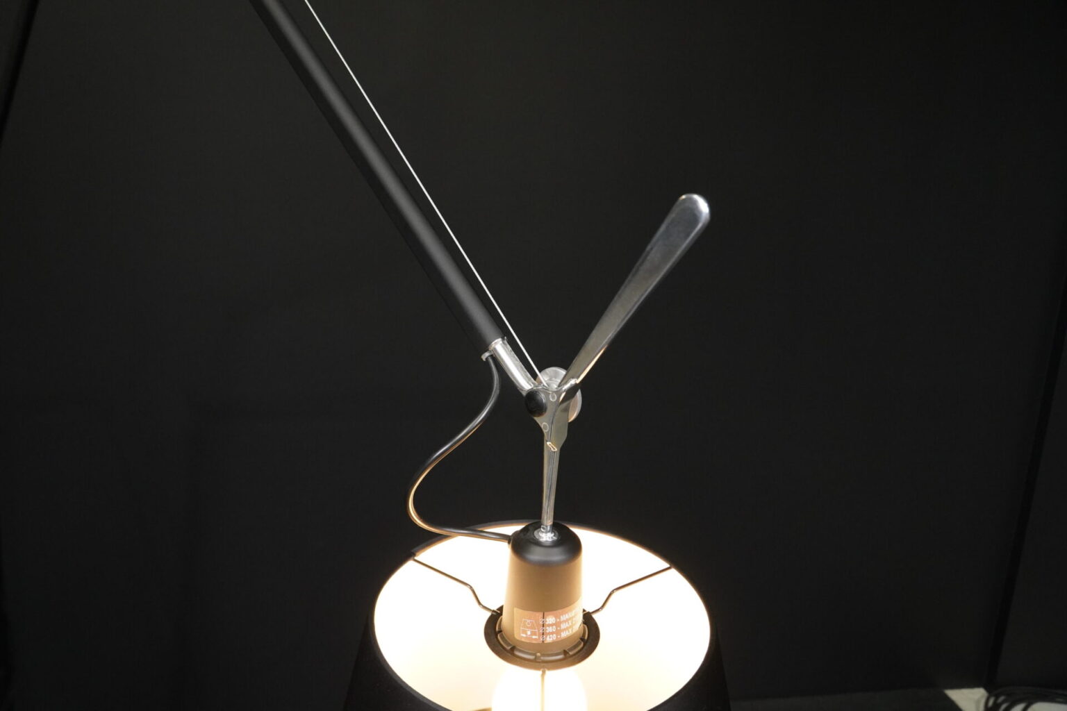 Gestell aus Aluminium mit zwei Gelenken | Lampenkopf justierbar|1 Leuchtmittel | Druckknopfschalter | dimmbar | EU-Stecker | mit Herstellerbezeichnung | H.148-327cm | Ø Fuß: 33cm | Ø Schirm: 32cm