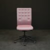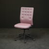 Sitz- und Rückenfläche mit violett-grau meliertem Hopsakstoff | Gestell aus schwarzem Metall und Kunststoff | 5-Sternfuß mit Fußring auf Rollen | höhenverstellbar | drehbar | mit arretierbarer Wippfunktion | mit Herstellerbezeichnung | H.113cm | Sitzhöhe: 40-56cm | B.59cm | T.55cm