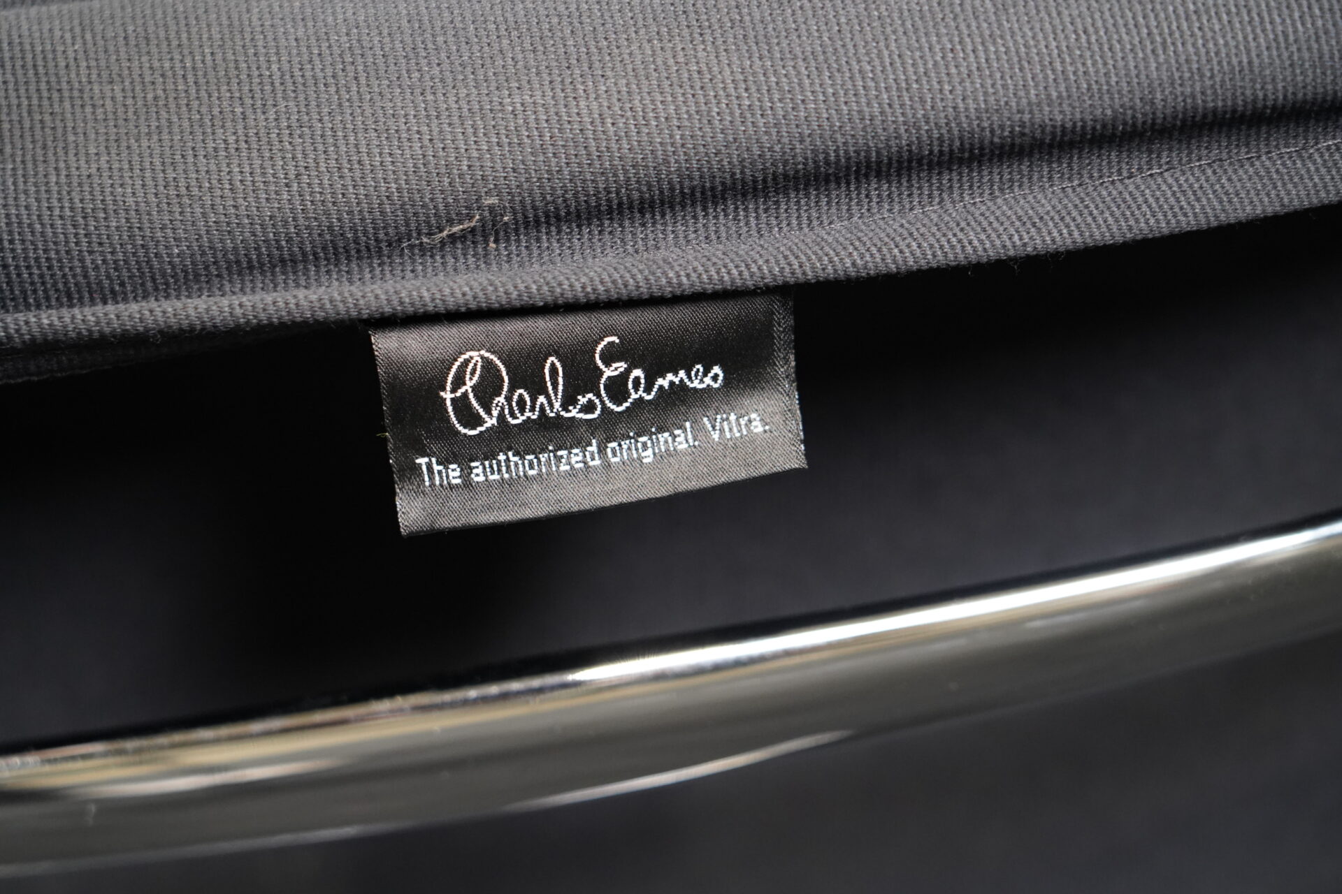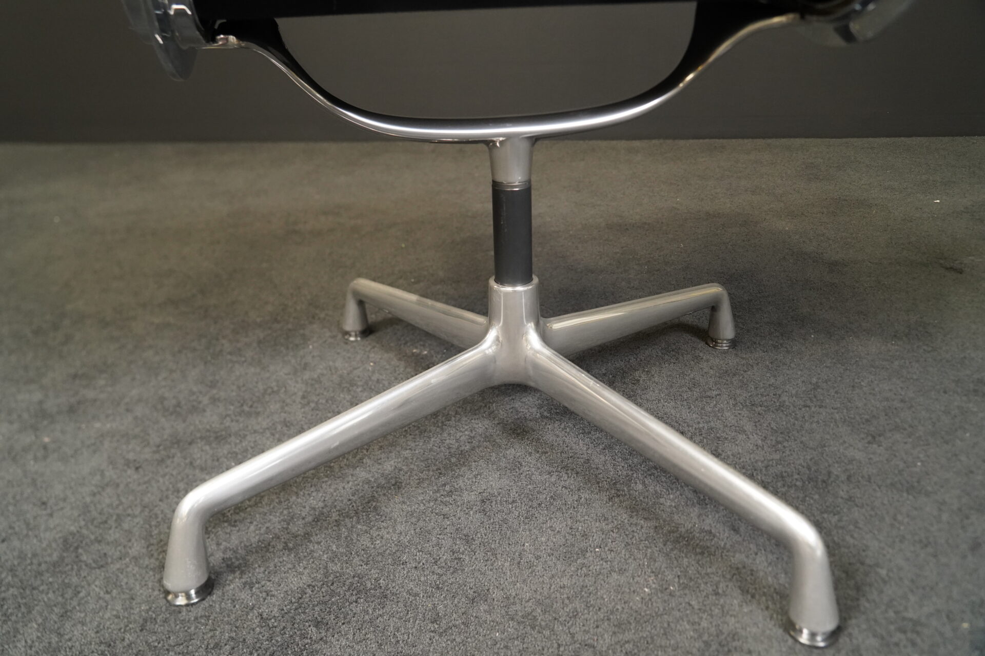 Gestell aus poliertem Aluminium | 4-Sternfuß | Sitz- und Rückenfläche aufgepolstert und aus schwarzem Stoff | mit Herstelleretikett | H.83cm | Sitzhöhe: 83cm | B.50cm | T.53cm