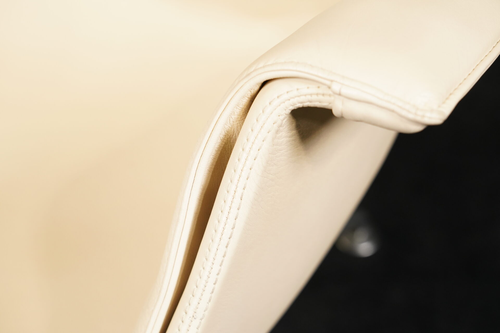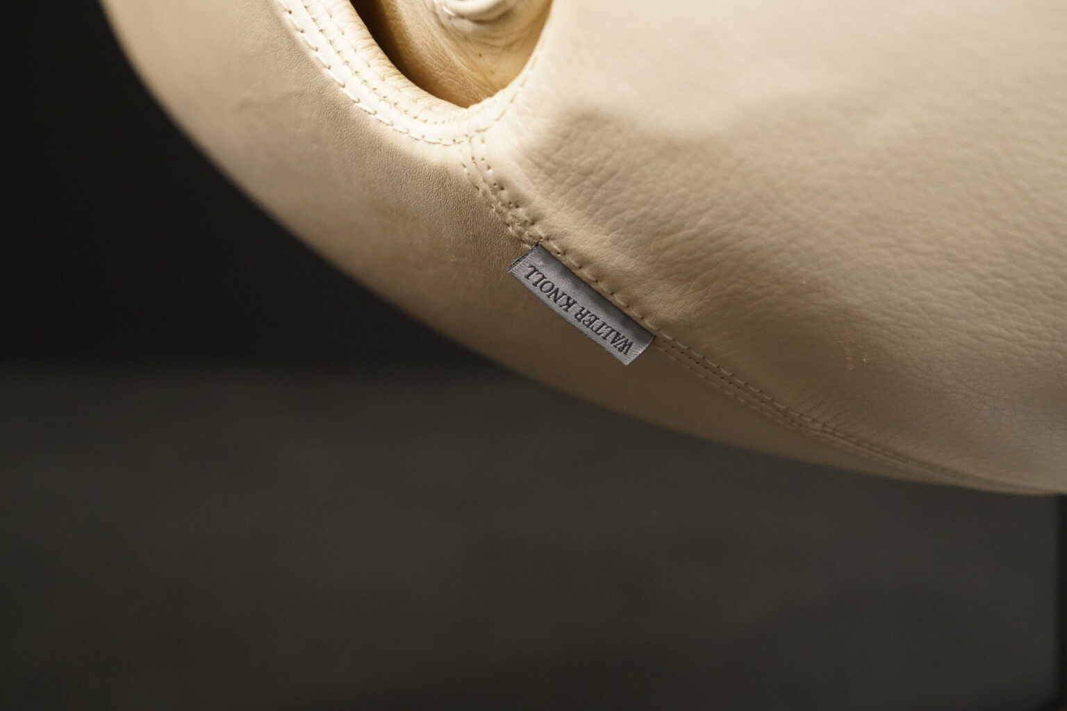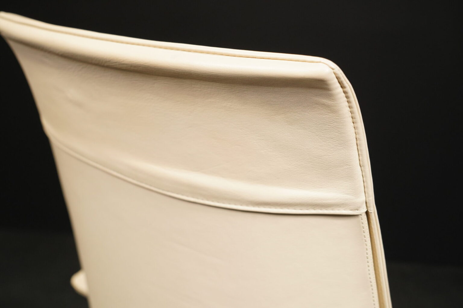 Aufgepolsterter Drehsessel aus Leder in Creme / Vanille | 3-Sternfuß aus poliertem Aluminium | mit Armlehnen | mit Herstellerbezeichnung | H.104cm | B.70cm | 72cm