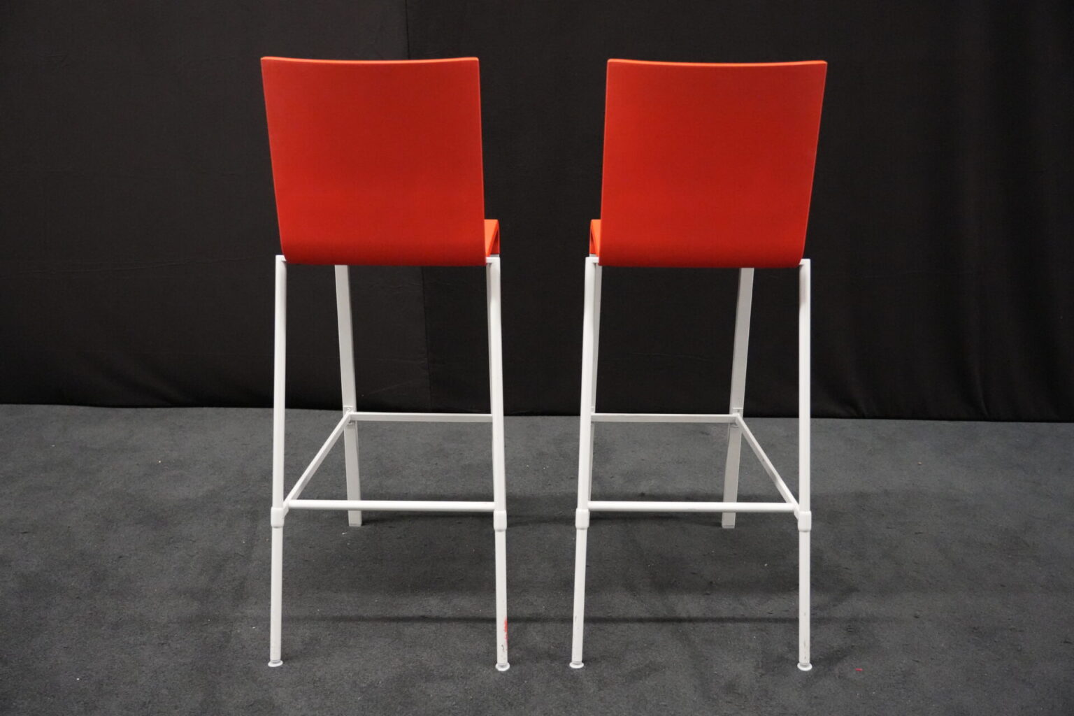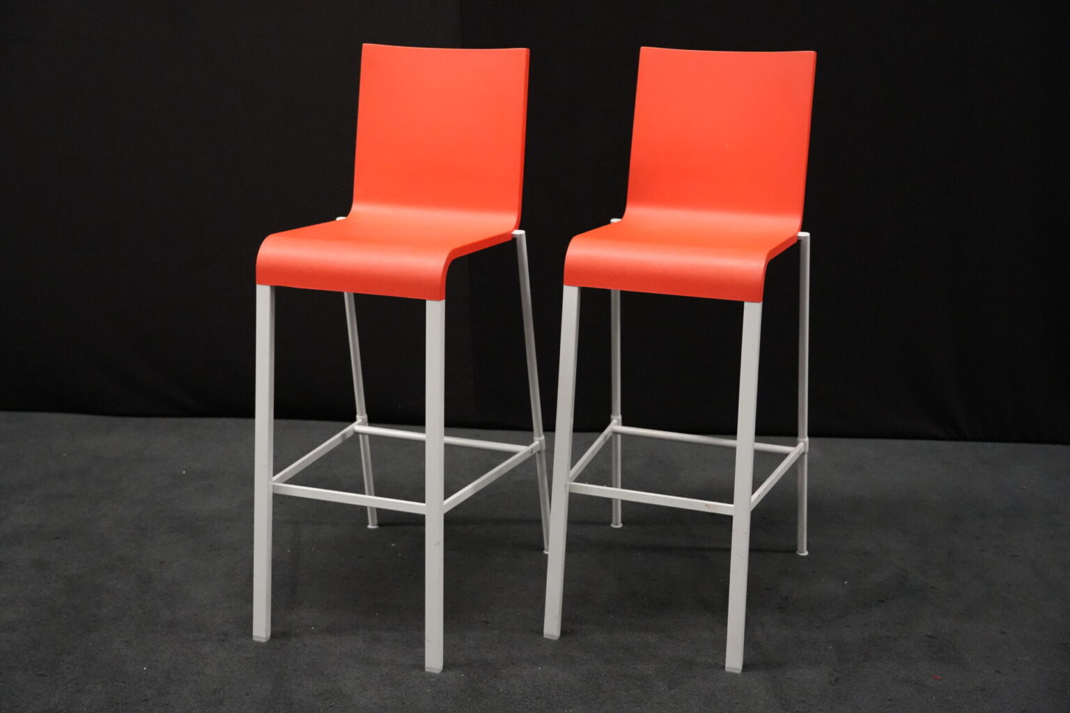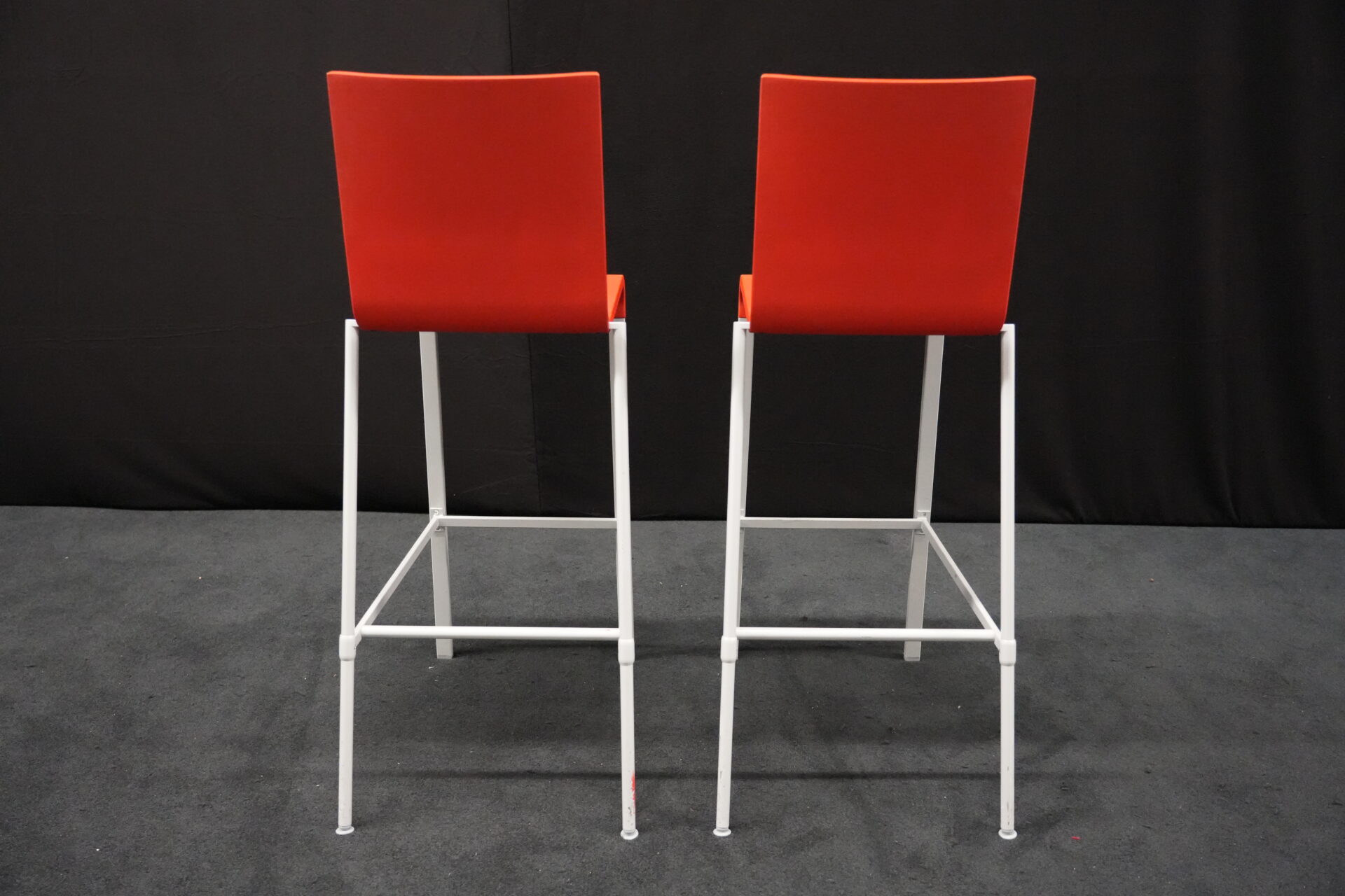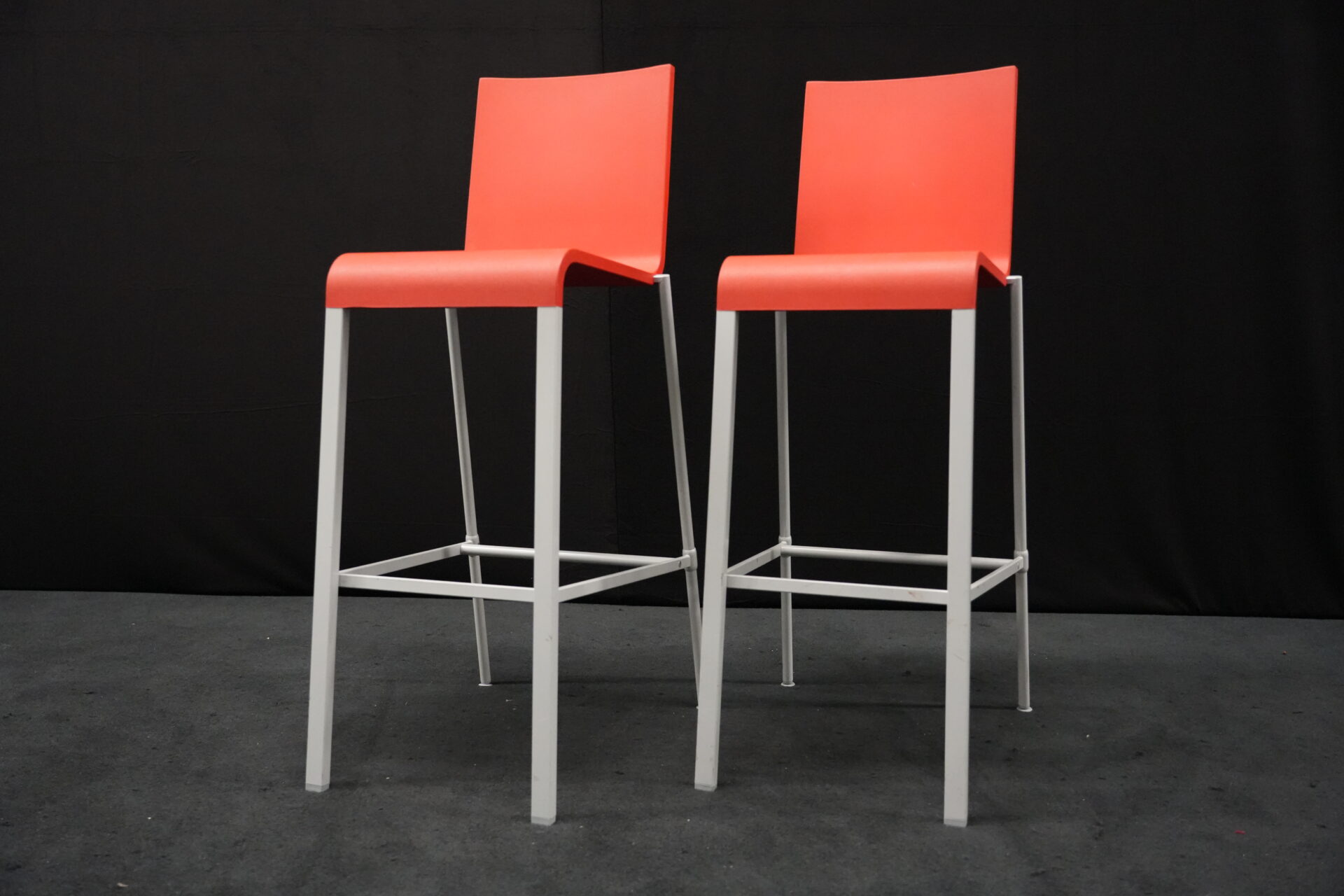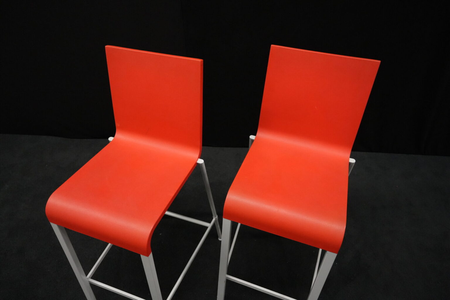 2x Vitra .03 Barhocker Rot | Marke: Vitra | Sitz: Kunststoff / rot | Gestell: Metall | Abmessungen: H: 114cm | SH: 80cm | B: 43cm | T: 62 cm