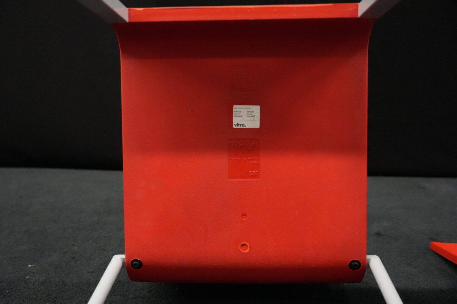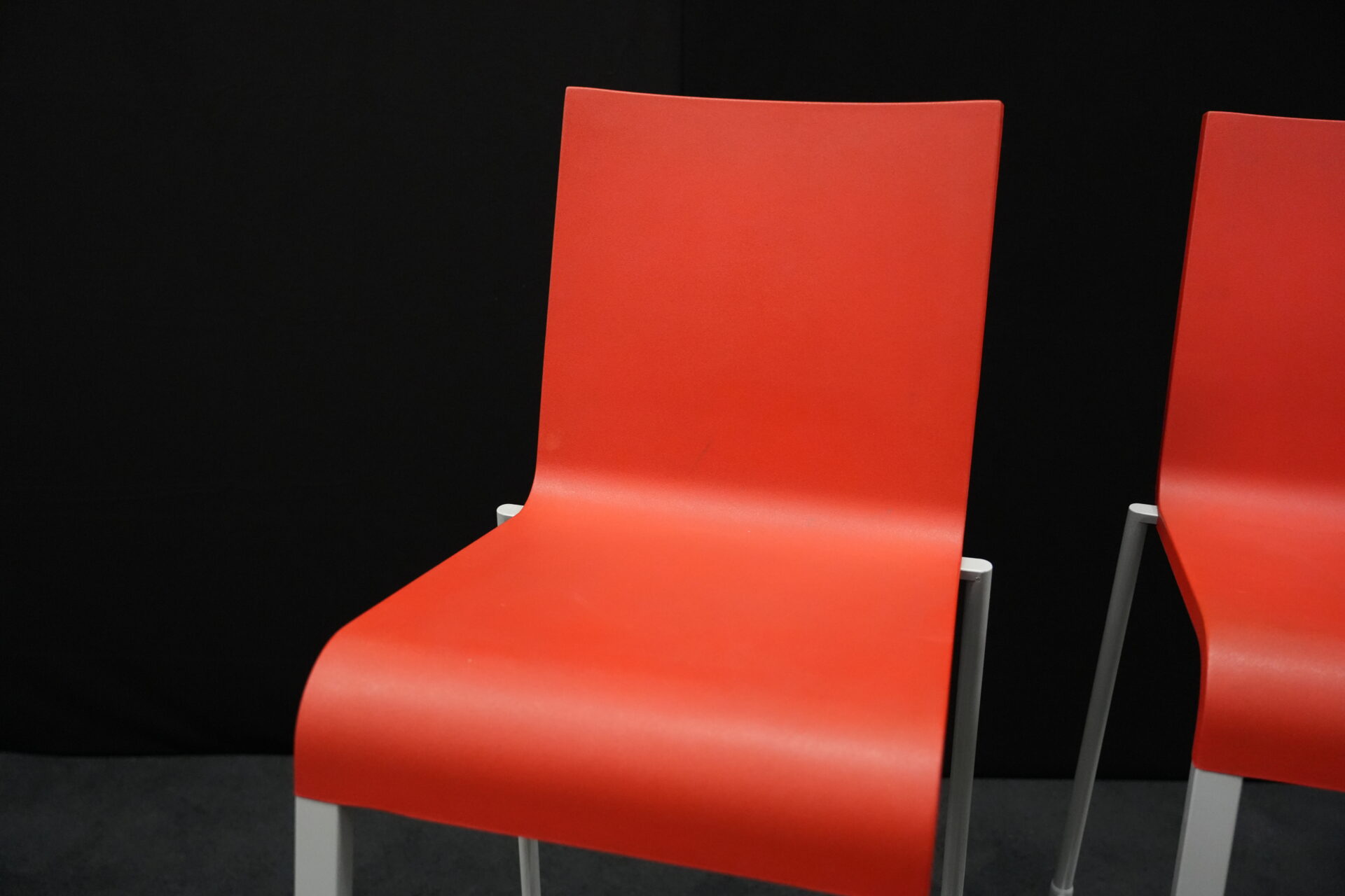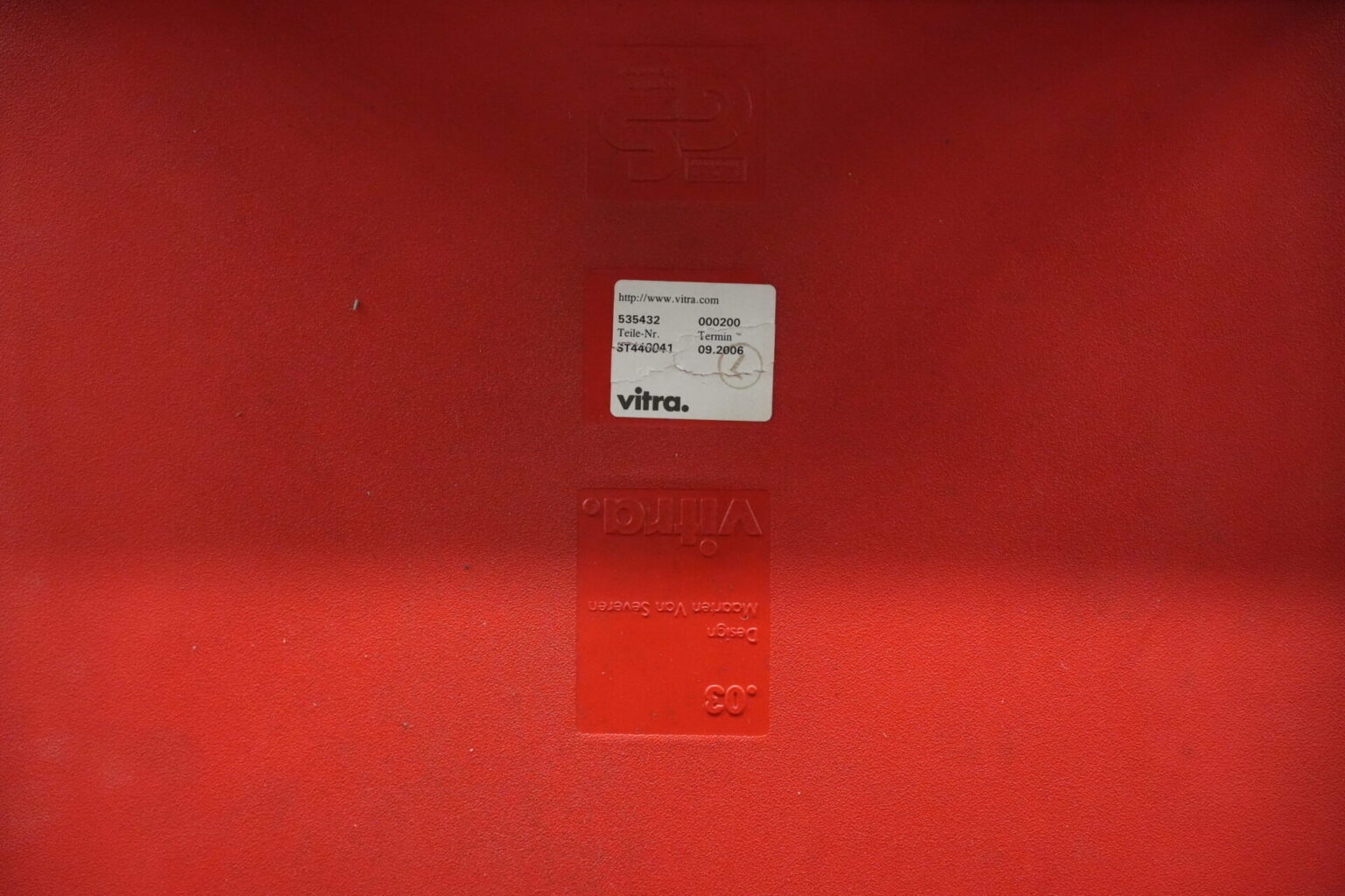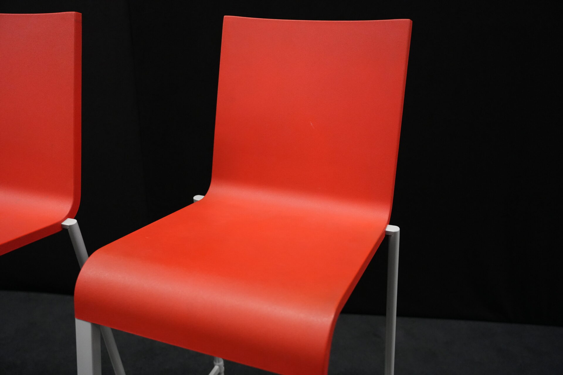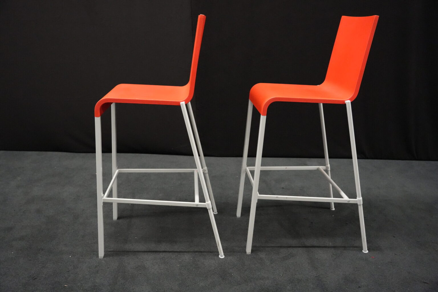 2x Vitra .03 Barhocker Rot | Marke: Vitra | Sitz: Kunststoff / rot | Gestell: Metall | Abmessungen: H: 114cm | SH: 80cm | B: 43cm | T: 62 cm