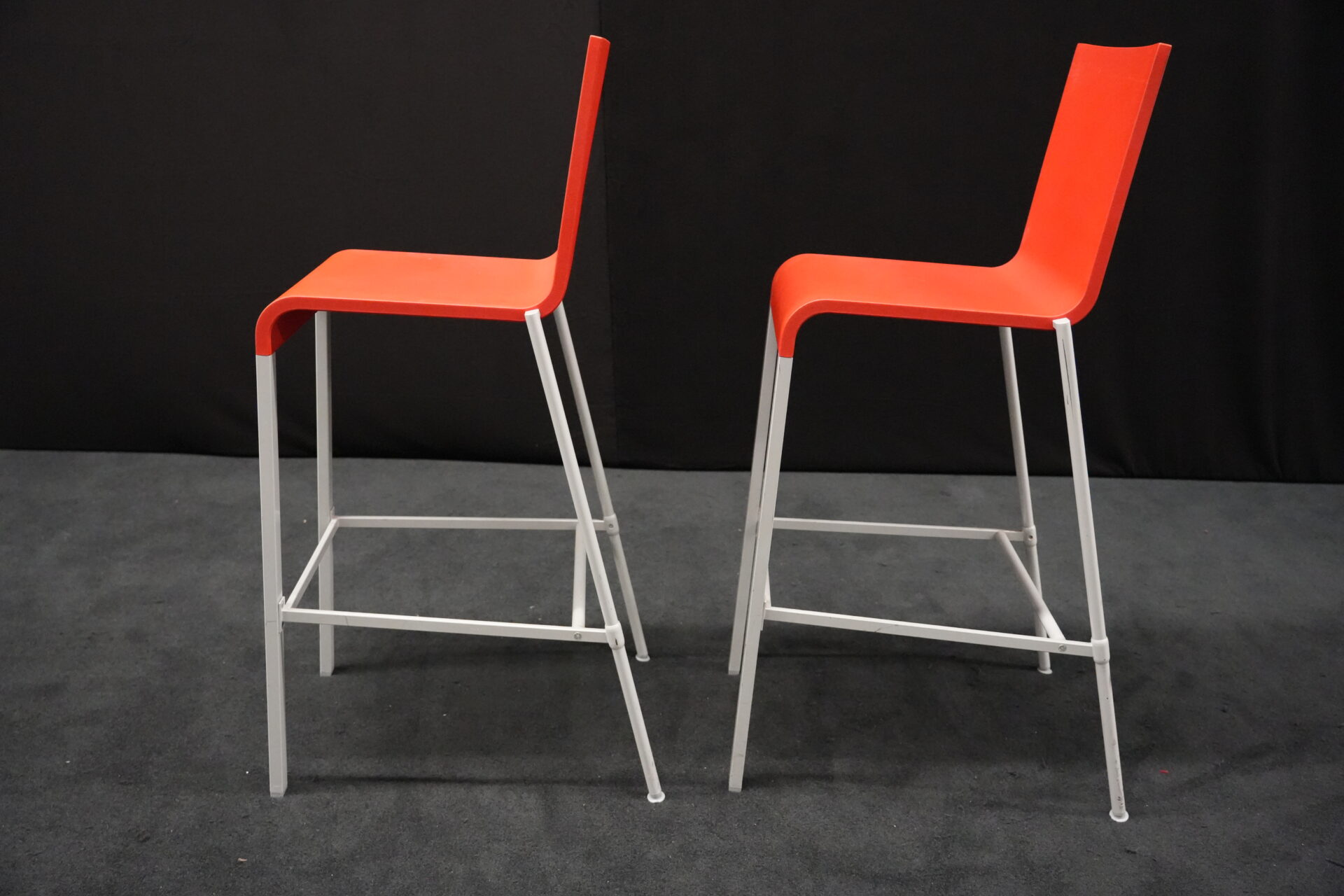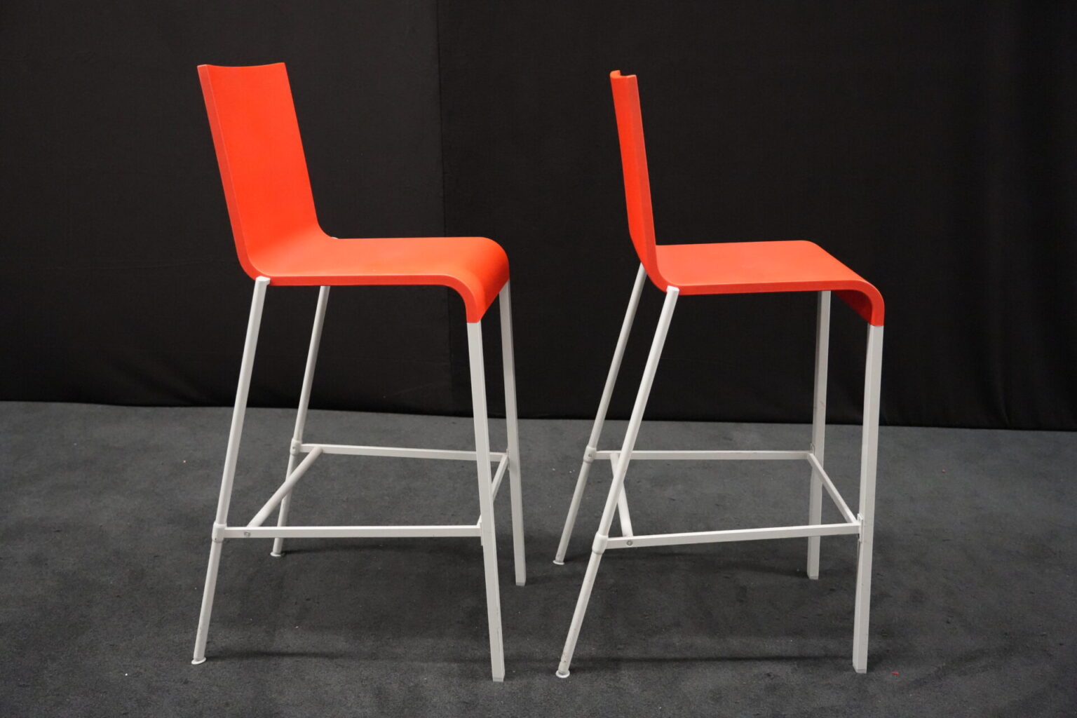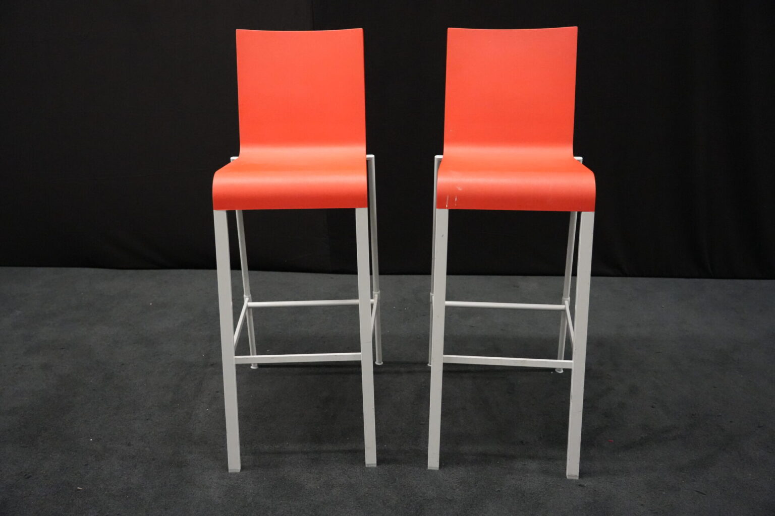 2x Vitra .03 Barhocker Rot | Marke: Vitra | Sitz: Kunststoff / rot | Gestell: Metall | Abmessungen: H: 114cm | SH: 80cm | B: 43cm | T: 62 cm