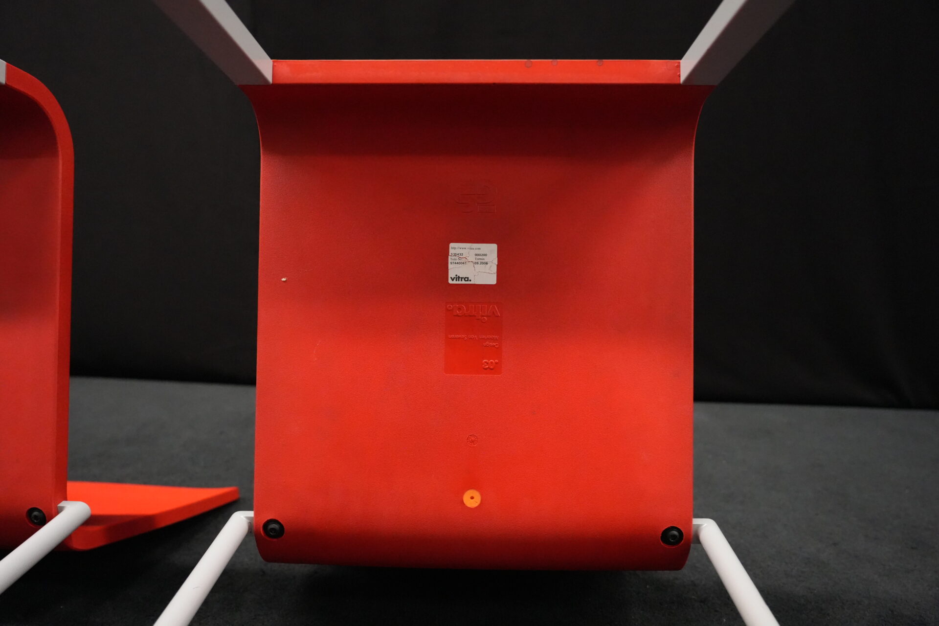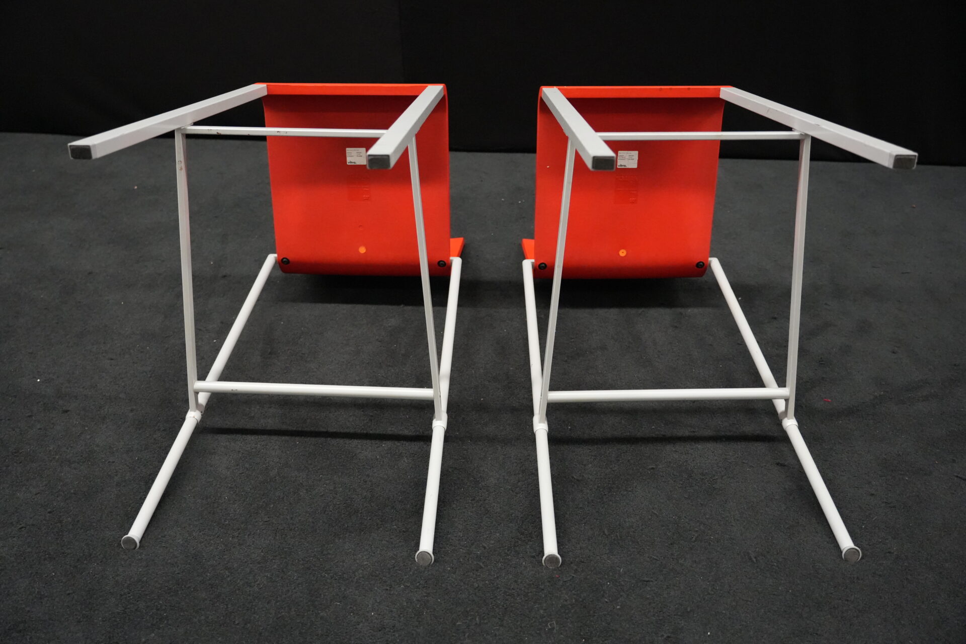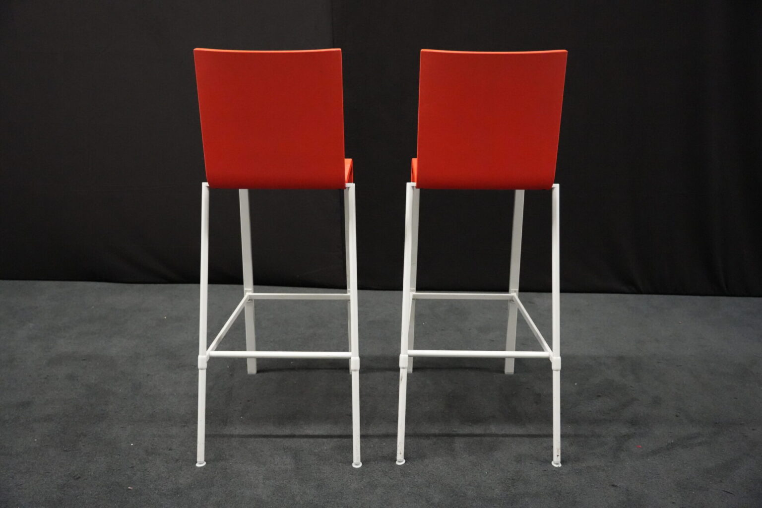 2x Vitra .03 Barhocker Rot | Marke: Vitra | Sitz: Kunststoff / rot | Gestell: Metall | Abmessungen: H: 114cm | SH: 80cm | B: 43cm | T: 62 cm