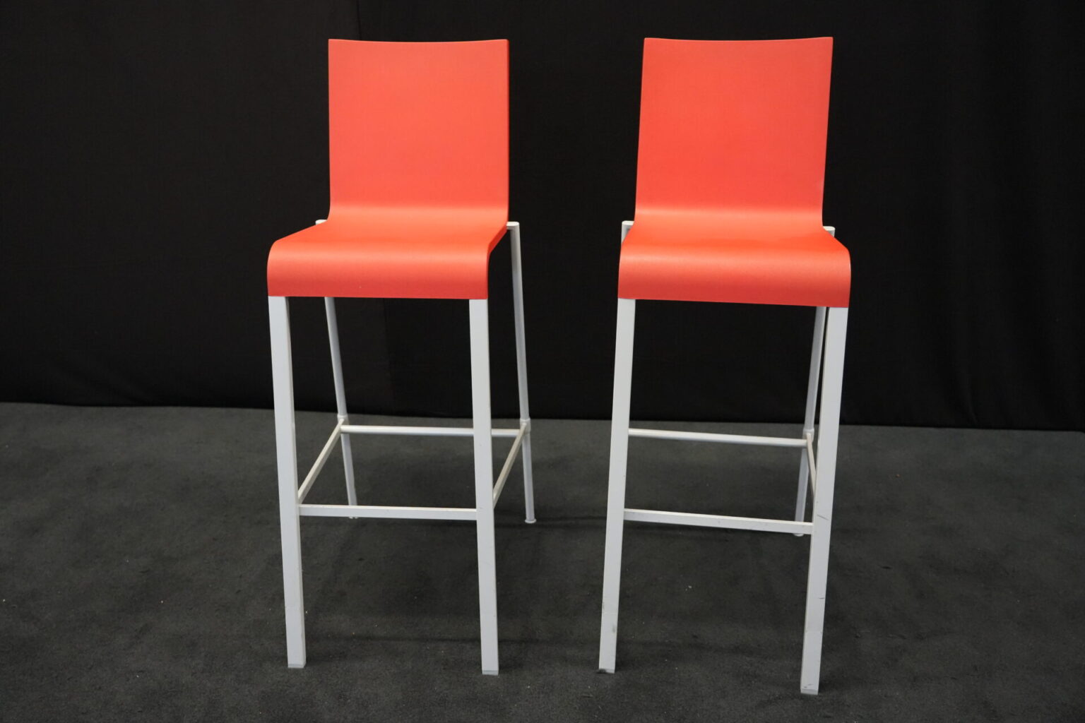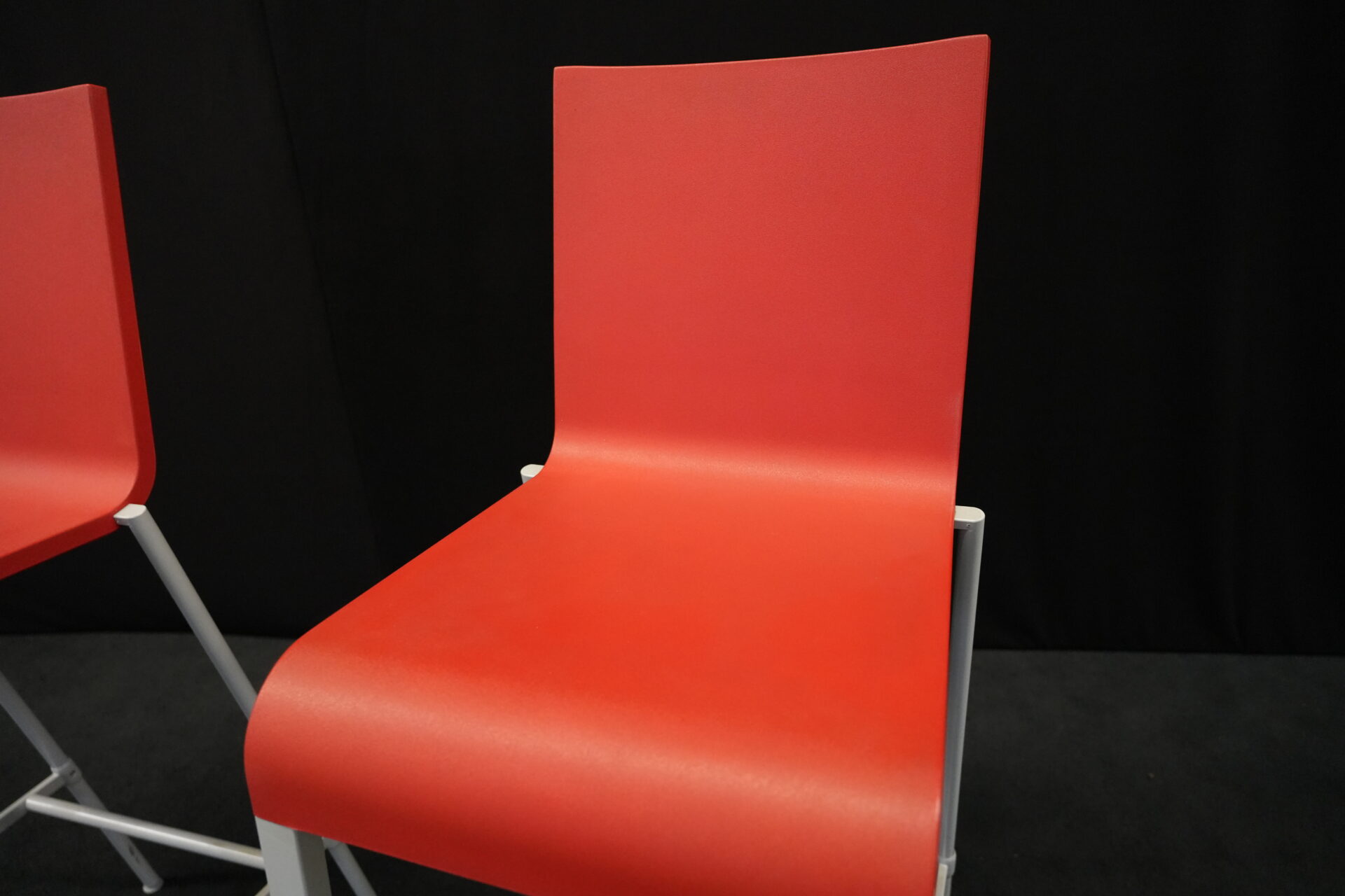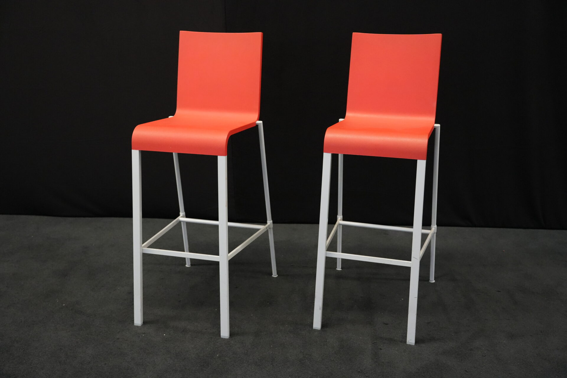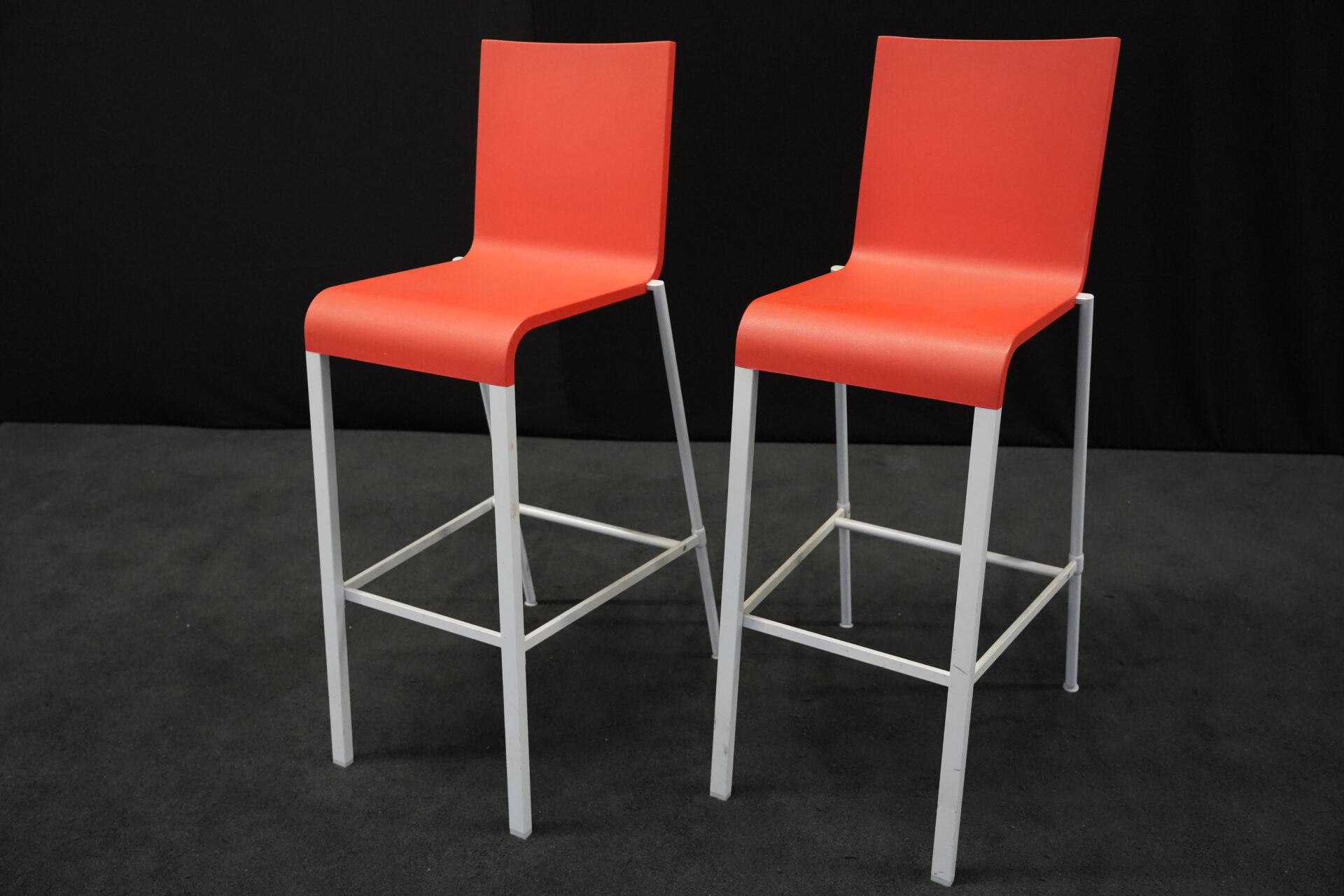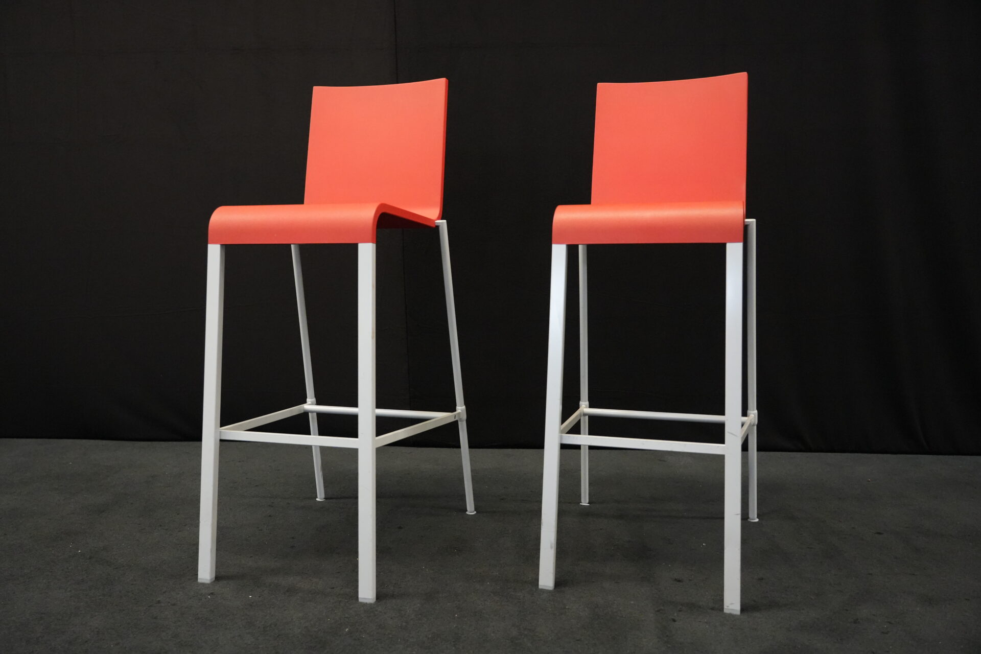2x Vitra .03 Barhocker Rot | Marke: Vitra | Sitz: Kunststoff / rot | Gestell: Metall | Abmessungen: H: 114cm | SH: 80cm | B: 43cm | T: 62 cm