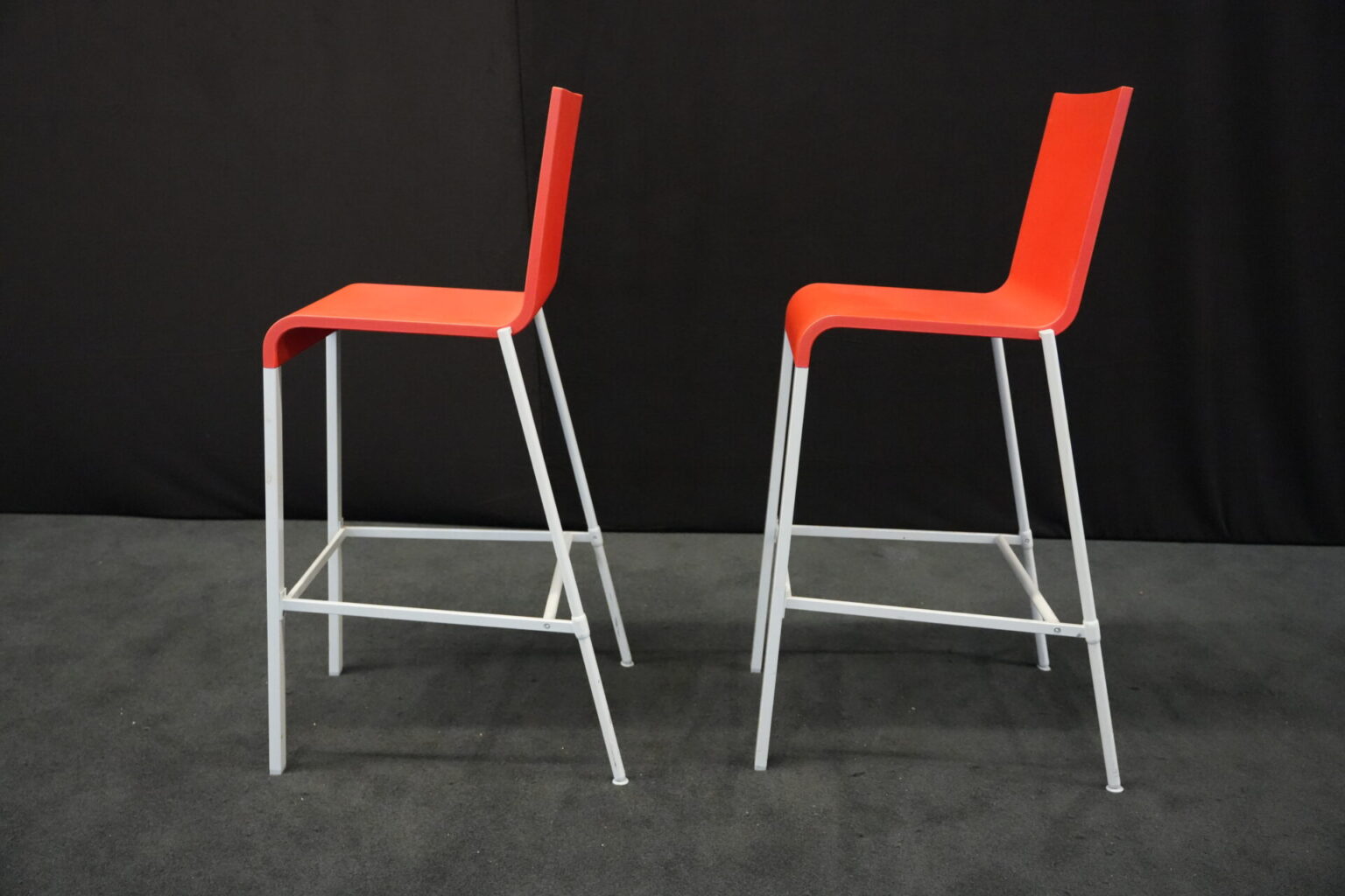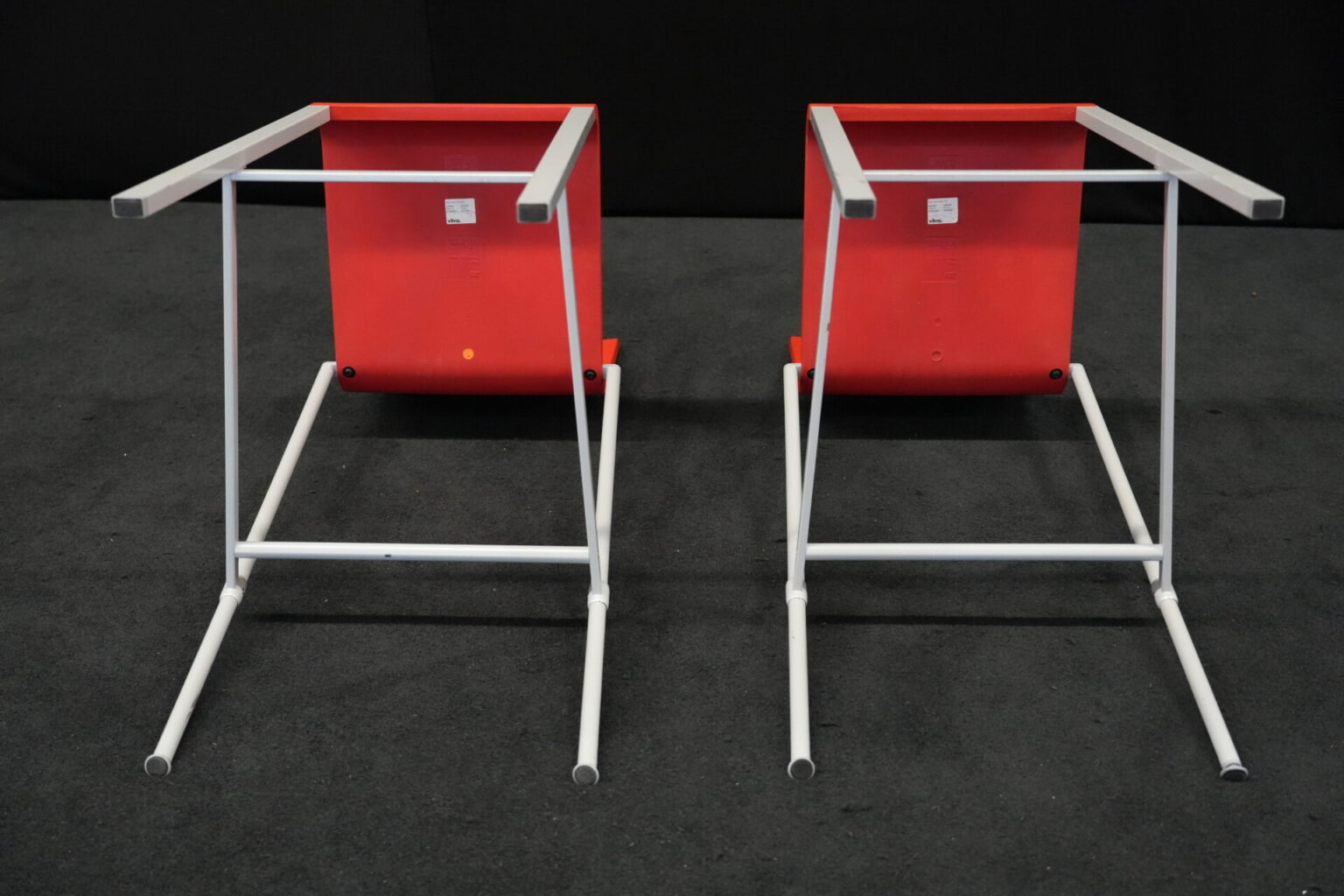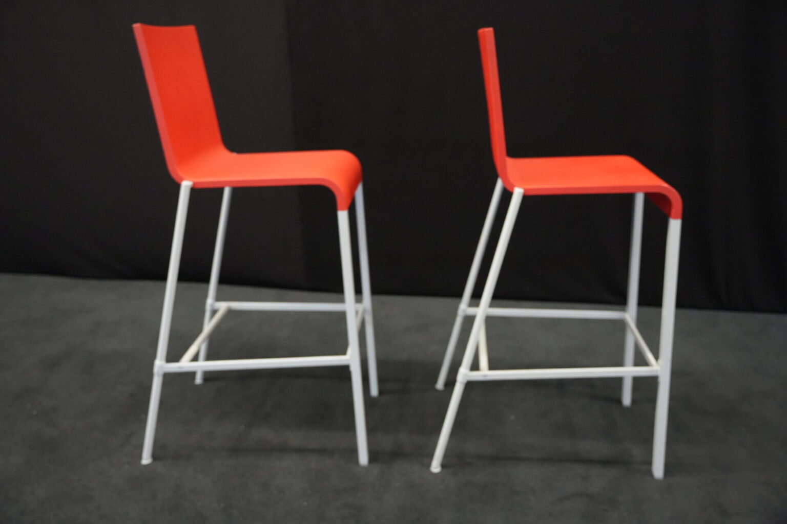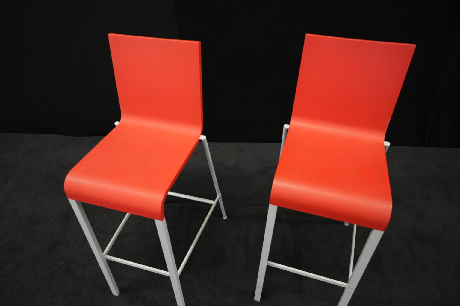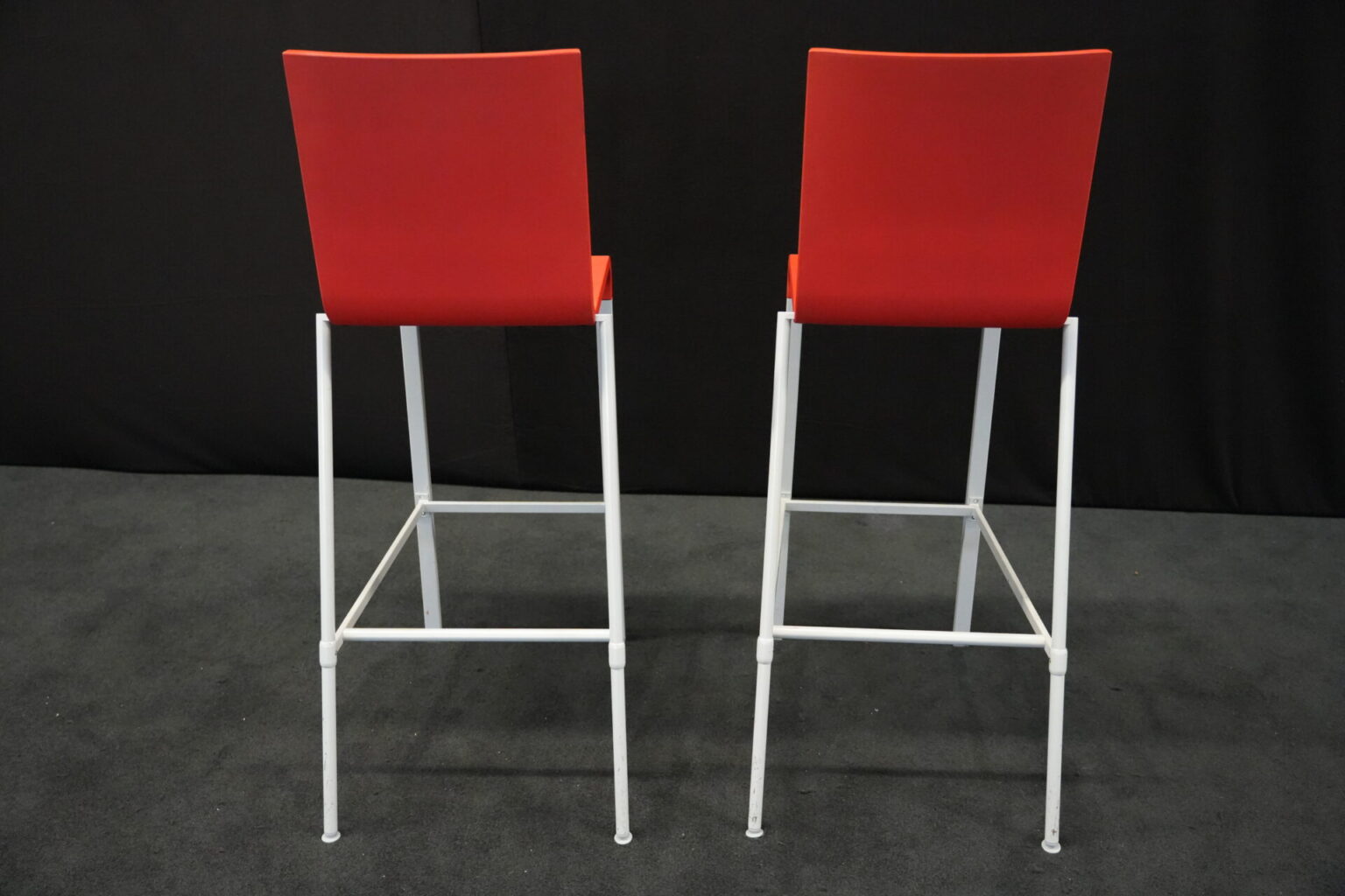 2x Vitra .03 Barhocker Rot | Marke: Vitra | Sitz: Kunststoff / rot | Gestell: Metall | Abmessungen: H: 114cm | SH: 80cm | B: 43cm | T: 62 cm